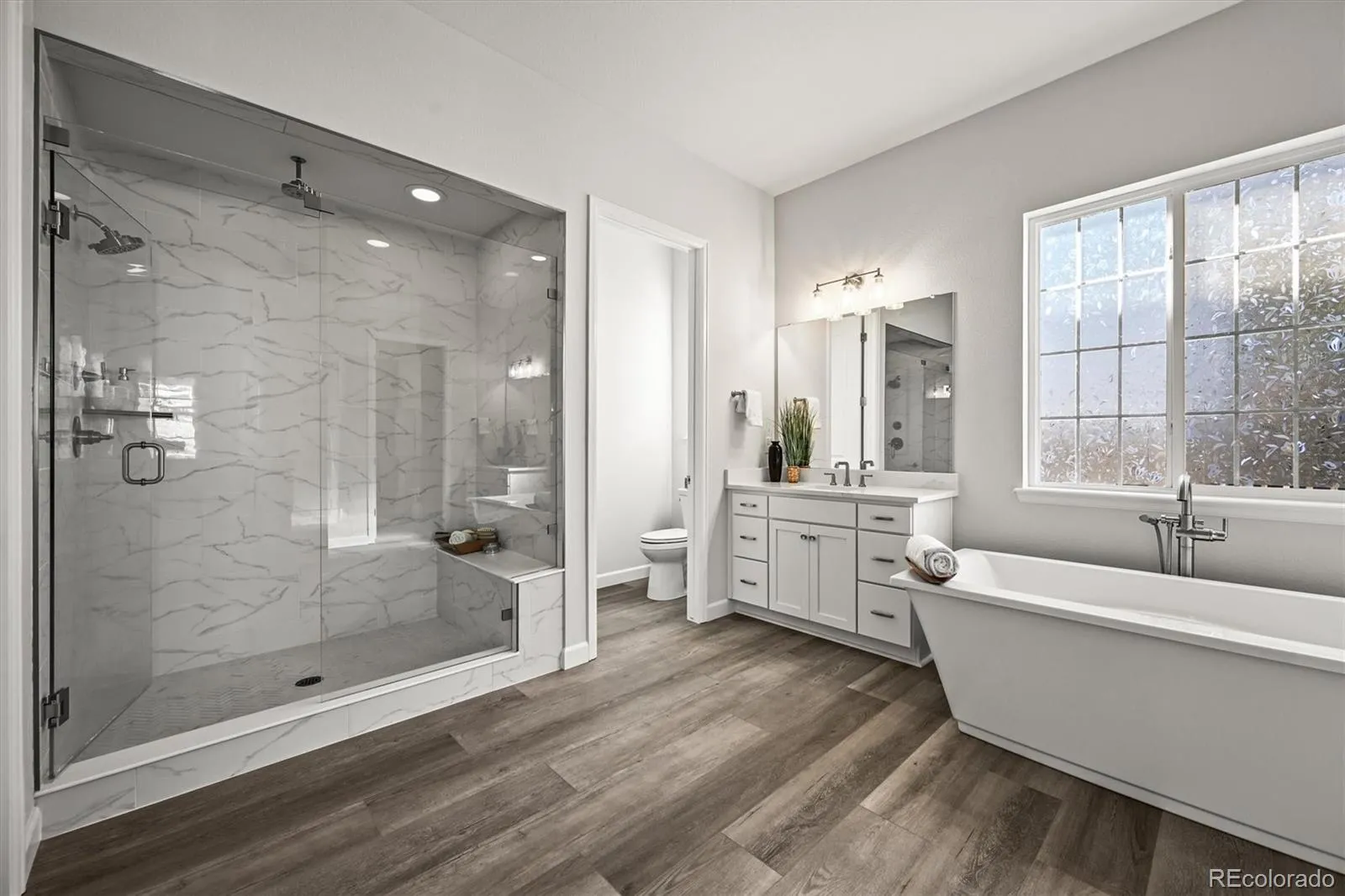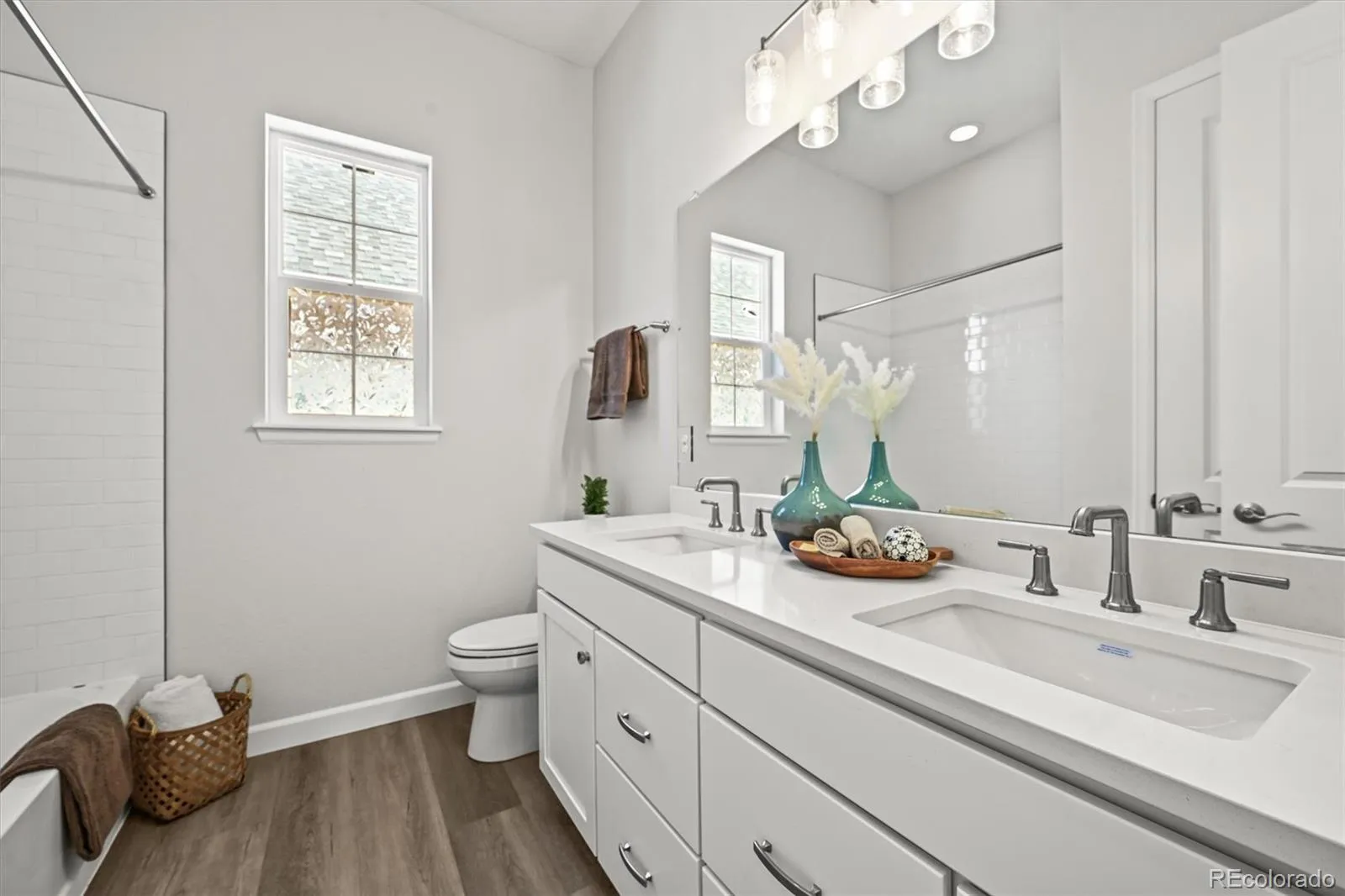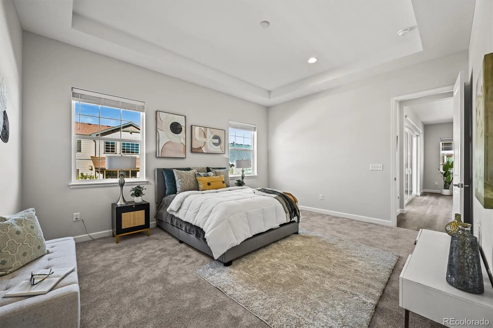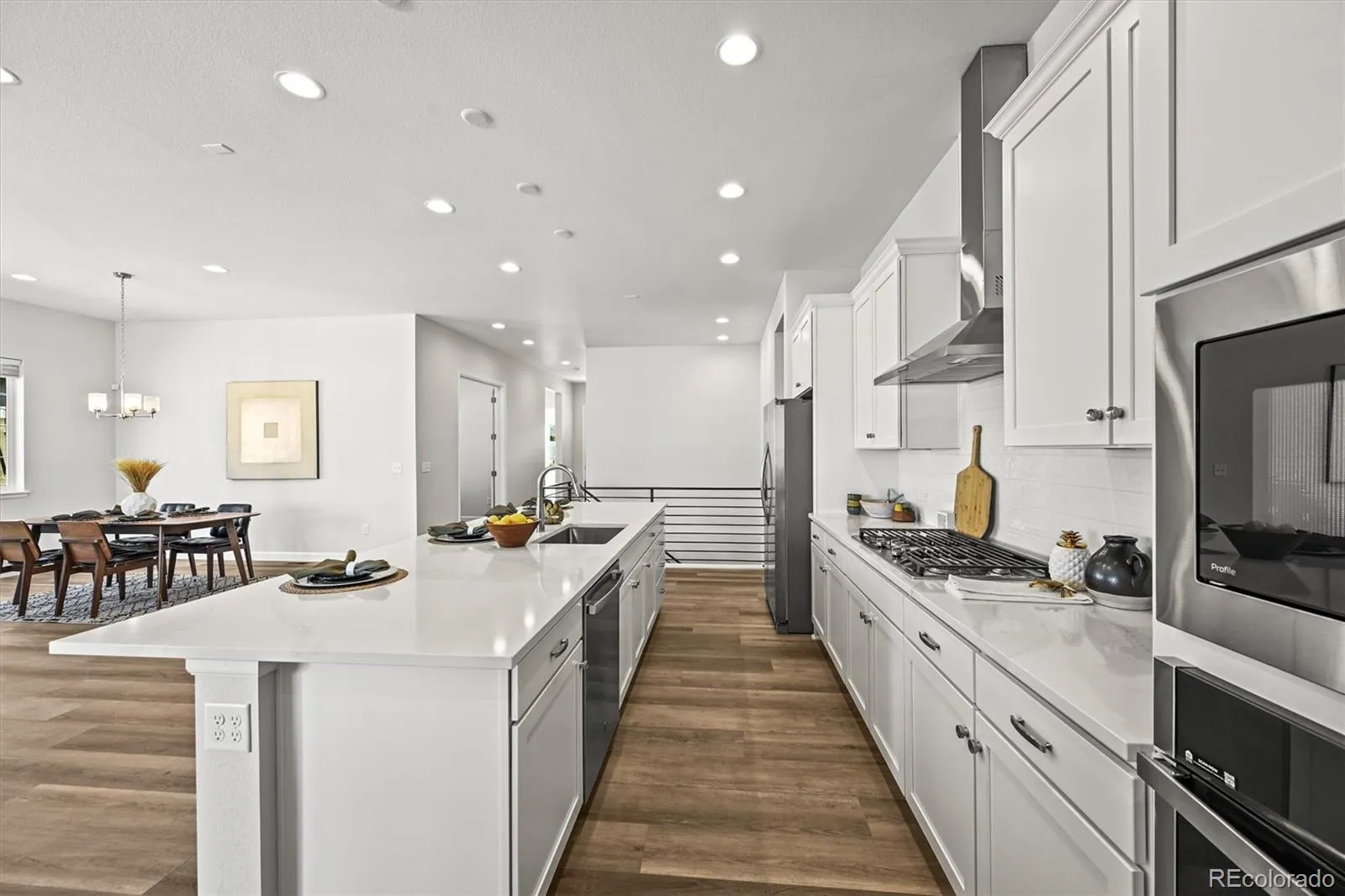 WHY WAIT FOR NEW!? Move Right Into This Like-New Ranch in Sought-After Southshore! Welcome to this meticulously maintained, move-in-ready ranch-style home! Barely lived in and thoughtfully upgraded, this stunning residence offers one-level living, high-end finishes, and exceptional attention to detail throughout. Step inside to soaring 10-foot ceilings, an abundance of natural light, and an open-concept layout designed for modern living. The heart of this home is the gourmet kitchen, featuring gorgeous white cabinetry, an expansive quartz center island, walk-in pantry, and stainless appliances including a 5-burner gas cooktop with sleek range hood. The spacious great room boasts a gas fireplace with custom tile surround and wood mantel, creating a warm and inviting space for relaxing or entertaining. Enjoy the convenience of a dedicated home office with elegant French doors, along with three bedrooms on the main level! The primary suite features a spa-like 5-piece bath, dual vanities, oversized shower, and walk-in closet, plus there is a secondary bedroom with a private bath—ideal for guests or teens, and a 3rd bedroom with nearby access to a full hall bath. The professionally finished basement offers flexible living space with its spacious family/rec room with wet bar, a 3/4 bath, and a bonus room with closet—perfect as a 5th bedroom, exercise area, or hobby room! Outdoor living is just as impressive with a large covered patio, fully fenced low-maintenance backyard, and new sprinkler system—perfect for entertaining or unwinding. Tucked away at the edge of the neighborhood for added privacy, yet just minutes to Aurora Reservoir for water sports and miles of scenic trails. Full access to Southshore’s award-winning clubhouse, pools, fitness center & more. This is luxury, location, and lifestyle—all in one exceptional home. Don’t let this one get away!