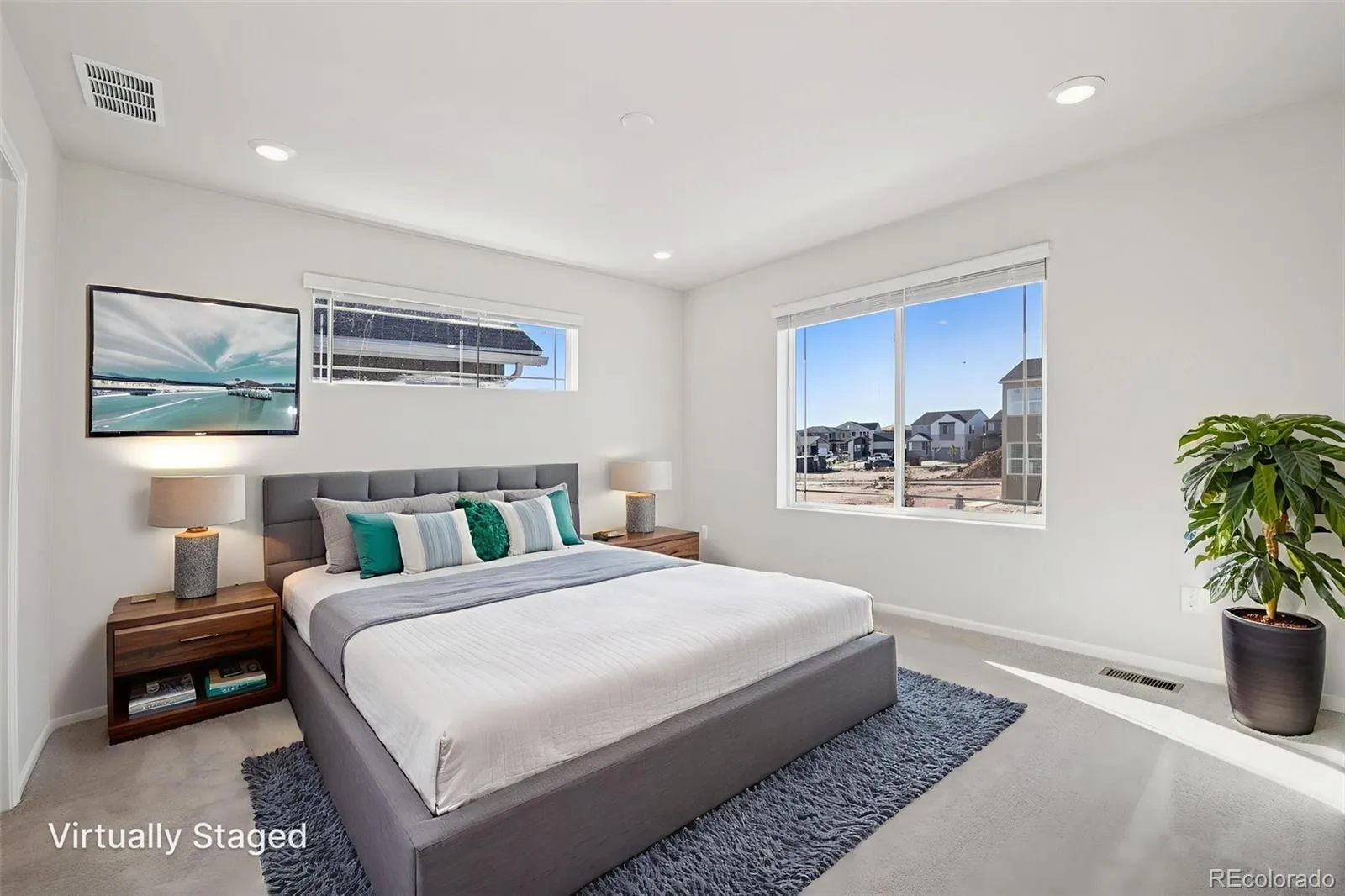 Brand new and ready to move in, this thoughtfully designed, Parade of Homes award-winning floorplan from New Home Co. features 4 bedrooms and a pocket office in the sought after Sterling Ranch community. This residence lives larger than you’d expect, offering a finished basement and functional spaces for everyone. Welcome inside to luxury vinyl plank flooring throughout the main level. The open concept kitchen boasts Quill cabinetry, quartz countertops and a spacious island. The seamless flow into the dining and great room is ideal for entertaining and everyday living. Ascend the stairs to find 3 bedrooms, including the primary suite with private bath and spacious walk-in closet. Secondary bedrooms utilize the full hall bath and the laundry is conveniently upstairs. The finished basement expands your living space with an additional bedroom, full bath, and versatile recreation room—perfect for a media area, fitness zone, or guest suite. Enjoy the low maintenance lifestyle with mountain views from the front porch and the greenbelt just steps away. Located in Sterling Ranch, you’ll enjoy access to neighborhood parks, trails, and community amenities, all while being just a short drive from shopping, dining, and major highways. Sterling Ranch offers a destination lifestyle with abundant community amenities! The Overlook Clubhouse boasts 4900 square feet of modern facilities, including a great hall with catering kitchen, fitness center with in-house classes, two outdoor pavilions and a beautiful deck area overlooking the spacious outdoor pool with family dressing rooms nearby. You’ll enjoy use of the new pickleball courts and playground at Prospect Park.