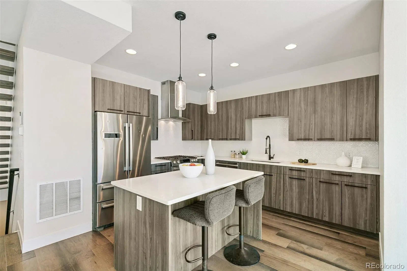 Modern elegance just minutes from Union Station, the ball park, downtown, plus LoHi’s and Denver’s best restaurants with NO HOA. Step inside to this light and bright home with neutral colors throughout which is perfect for setting off the contrasting gorgeous floors and modern cabinetry. Main floor is open and perfect as an entertainers floor plan with dining, family room, and kitchen opening to the back yard. Modern interior finishes including the cabinetry, flooring, lighting and fixtures with the open floor plan gives the home an elegant feel. Upstairs are two bedrooms that all have en-suite bathrooms and professionally installed closet organizers. On the upper level the loft opens up to the great city views from the rooftop deck. Private backyard with AstroTurf makes outdoor living easy to maintain and year round greenery. 2 car garage with alley access and new epoxy flooring. With the location, no HOA, and easy to maintain makes this property a good rental opportunity or 2nd home. Buyer is welcome to the TVs, mounts, and bedroom furniture upstairs or they can be removed before closing. Airdnd shows the average daily rate for short term rental of $481/night @ 72% occupancy = 128,600. Buyer to confirm Denver laws for short term rentals. Property is a duplex but shows more like a town home.