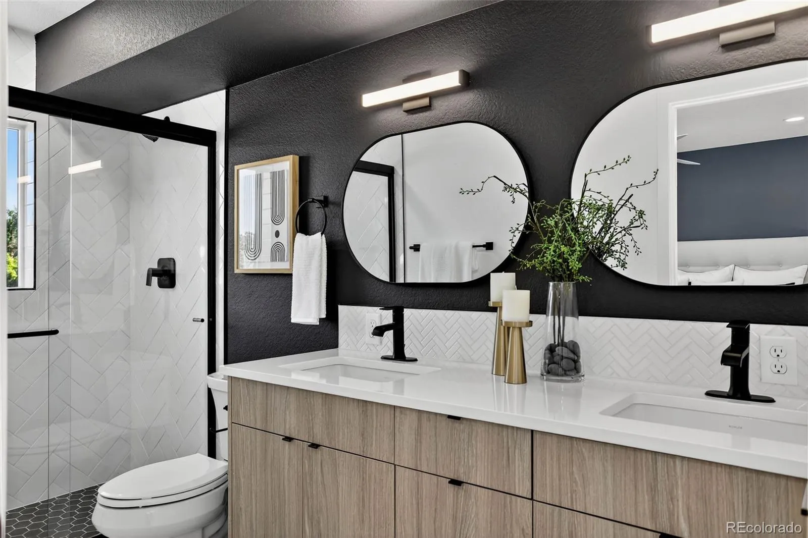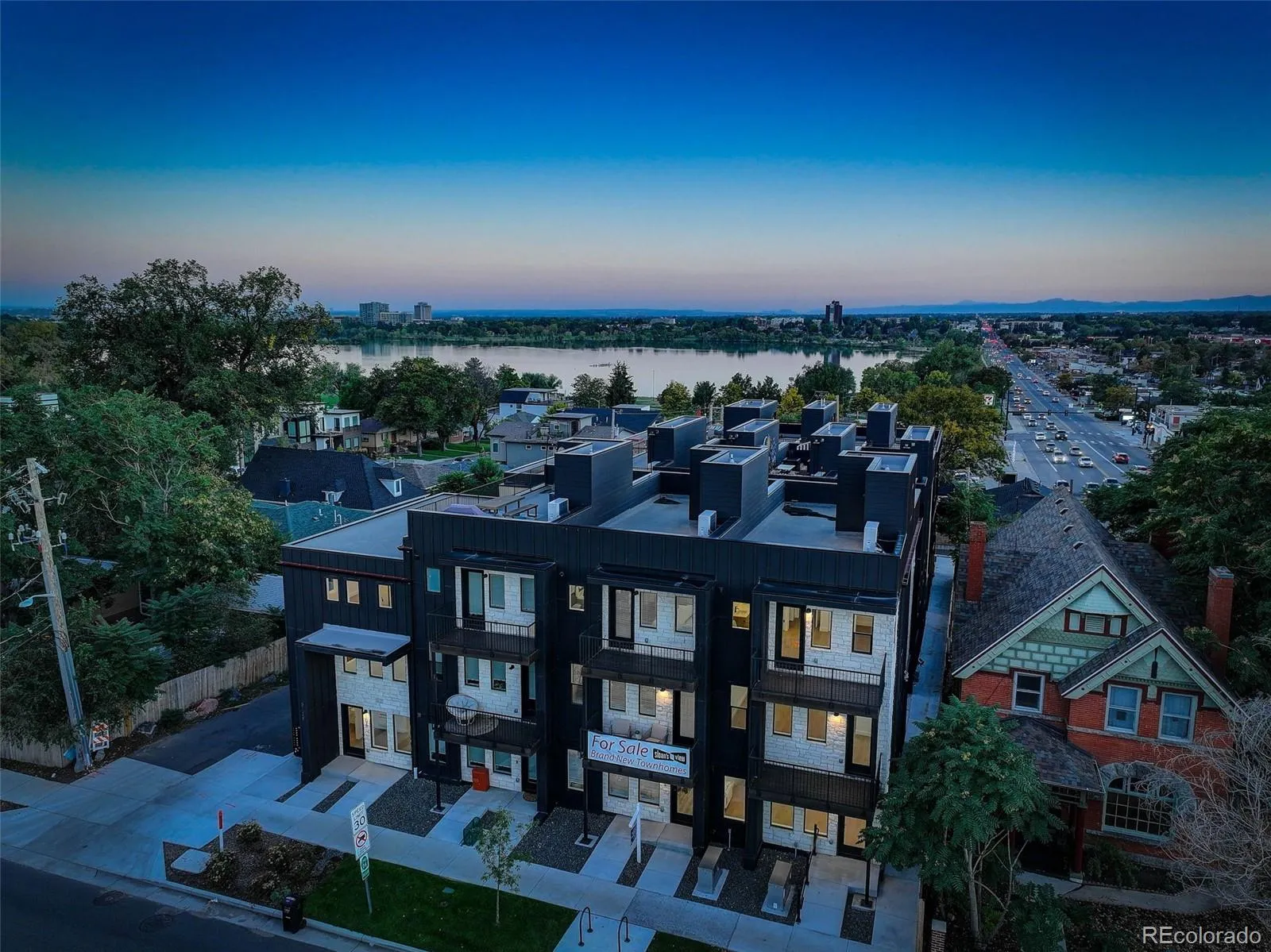 Welcome to this brand-new luxury townhome offering the best of Denver living with stunning views of Sloan’s Lake, the Rocky Mountains, and the vibrant downtown skyline. Thoughtfully designed across three levels with an expansive fourth-floor rooftop deck, this home combines sleek finishes with functional spaces ideal for both entertaining and everyday living. The main level features a versatile office perfect for working from home or as a creative flex space, along with a stylish powder bath for convenience. Upstairs, the open-concept living area invites gatherings with a spacious family room with cozy balcony that flows seamlessly into the dining area and kitchen. Enjoy the gourmet kitchen outfitted with quartz countertops, stainless steel Samsung appliances, soft-close cabinetry, and a striking tile backsplash that adds both texture and character. On the upper level, the primary suite provides a private retreat with a generous walk-in closet, dual additional closets, and a spa-inspired bathroom showcasing quartz countertops, dual sinks, sleek tile finishes, and a beautifully tiled walk-in shower. A second bedroom also features its own en suite bathroom with a tub and tile surround, creating the perfect guest suite or secondary living space. Conveniently located nearby is the laundry area, designed for function without sacrificing style. Topping off this remarkable home is the expansive rooftop deck, where panoramic views stretch from Sloan’s Lake to the Rocky Mountain Front Range and over the glittering lights of downtown Denver. Whether hosting rooftop gatherings, enjoying morning coffee with a sunrise, or watching the sun set behind the mountains, this deck defines Denver living at its finest. Just steps from Sloan’s Lake, trails, and green spaces, and minutes from Denver’s best dining, nightlife, and shopping, this residence blends modern luxury with a lifestyle that is truly unmatched. WELCOME HOME!