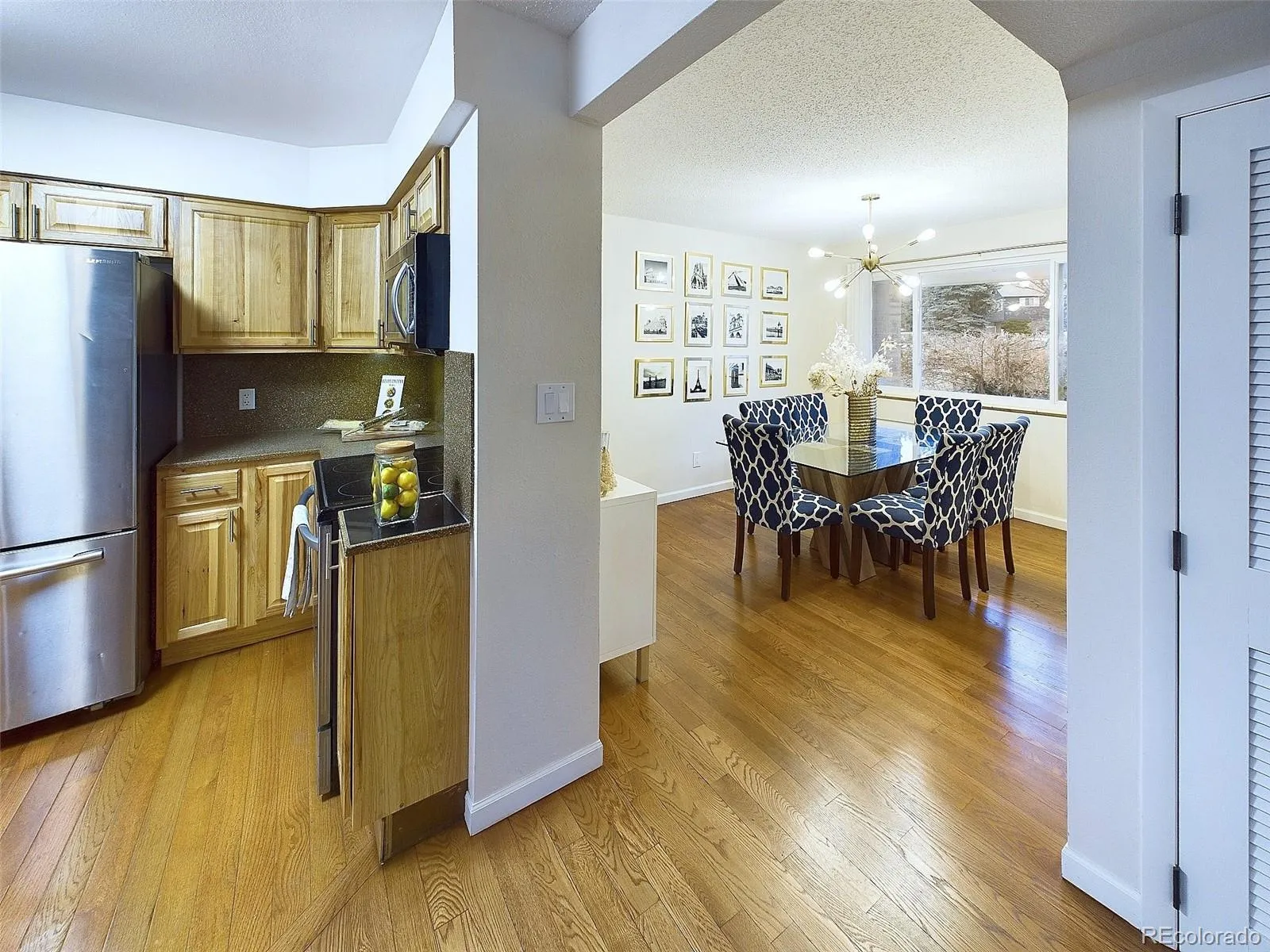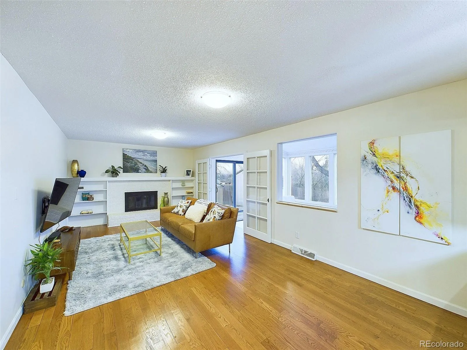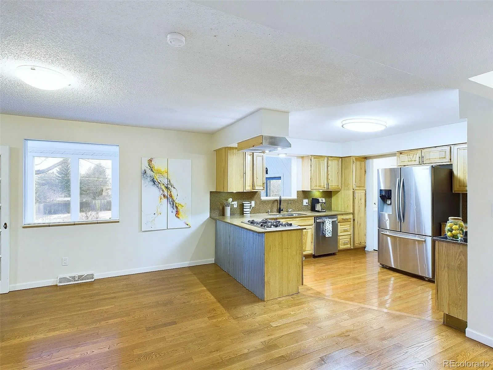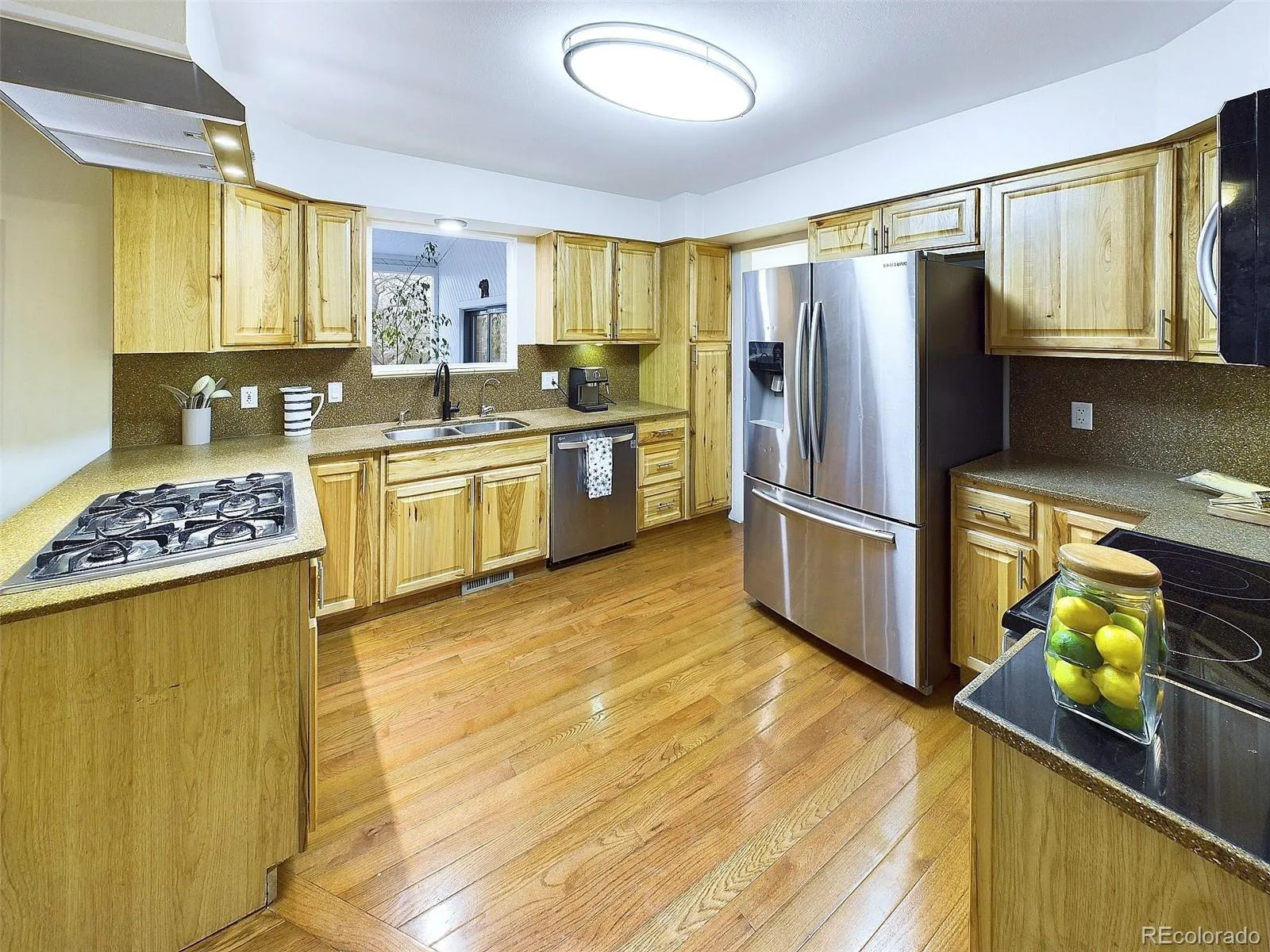 This expansive retreat features unobstructed mountain views, no rear neighbors, and direct access to open space trails—perfect for outdoor enthusiasts and those seeking privacy. Inside, enjoy a flexible layout ideal for remote work, multi-generational living, or creative pursuits. The main level boasts a spacious great room with refinished hardwood floors and a white brick fireplace, while the open kitchen includes knotty pine cabinetry, solid-surface counters, and dual cooking zones for effortless entertaining.