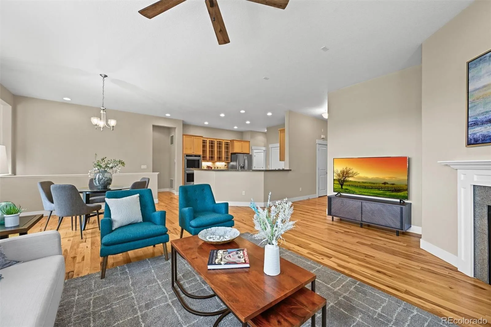 Single-level living meets golf course serenity in this rare West End ranch backing to the 7th tee of Indian Peaks. Enjoy morning coffee on the covered front porch overlooking the neighborhood park or unwind on the brand-new composite deck with views of the fairway and open farmland beyond. Soaring 10’ ceilings, hickory hardwoods, and walls of windows fill the open floorplan with natural light. The main level features three bedrooms, including a luxurious primary suite with a five-piece bath and walk-in closet. A daylight basement adds a spacious recreation area and an exceptional fourth bedroom. Thoughtfully maintained by original owners with new high-efficiency HVAC, double ovens, and exterior paint. Built Green by McStain with concrete composite siding and NO expensive metro tax district! Enjoy award-winning schools, six neighborhood parks with brand new playgrounds, and community favorites like food trucks, parades, and holiday events. Just blocks from the YMCA and dining. Thunder Lake Circle is one of Boulder County’s best-kept secrets