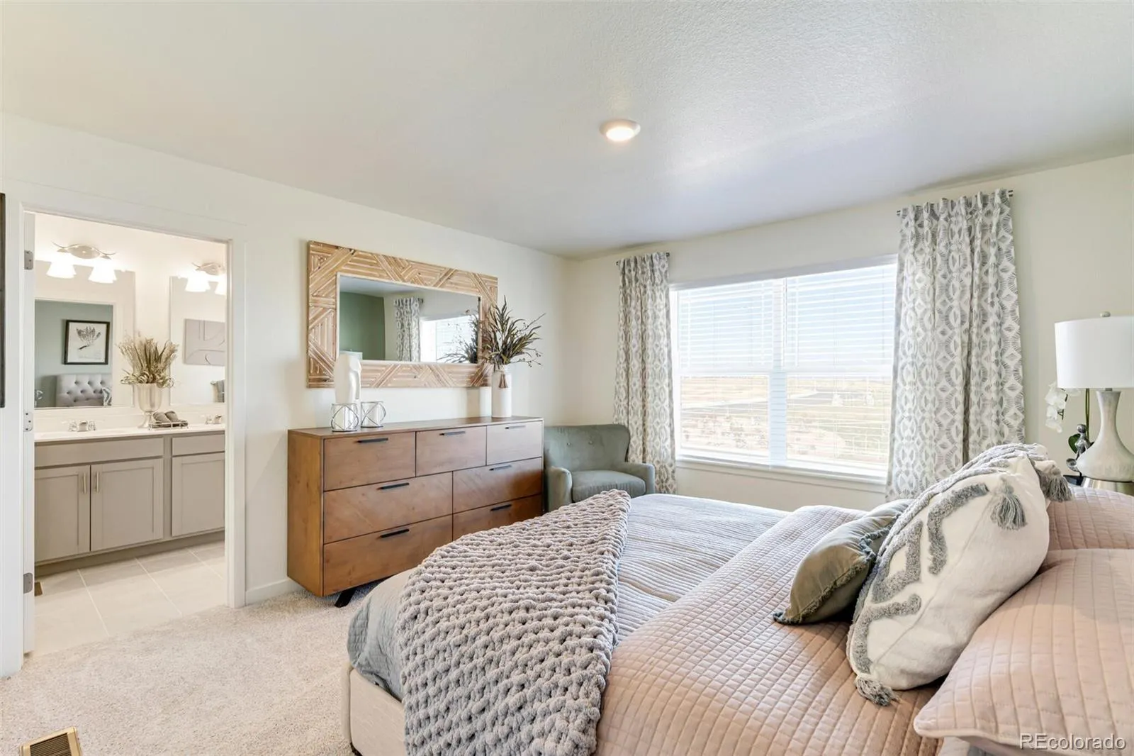 This stunning Muirfield home is a 3 bed 2.5 bath paired home with a loft upstairs and an attached 2-car garage. Step inside and be greeted by the open-concept main floor, featuring a modern kitchen, dining area, and living room. The kitchen is equipped with a quartz and a gas range. A convenient half bath for guests adds to the functionality to the main floor. Upstairs, you’ll find the generously sized bedrooms with ample closet space. The primary suite is a peaceful retreat, complete with an en suite bathroom featuring double sinks and an impressive walk-in closet. Laundry chores are made easy with the conveniently located laundry room upstairs. Enjoy the outdoors with an oversized front porch. Additional features of this home include A/C, a tankless water heater, and a smart home package. Nestled in the Front Range of the Rocky Mountains, Revere at Johnstown Paired offers a desirable location with easy access to I-25, shopping, dining, and abundant outdoor recreation at nearby parks, golf courses, and reservoirs. Don’t miss out on this opportunity to own a beautiful home in a noteworthy neighborhood. Contact us today to schedule a showing and make this your new home! ***Estimated Delivery Date: November. Photos are representative and not of actual property***
