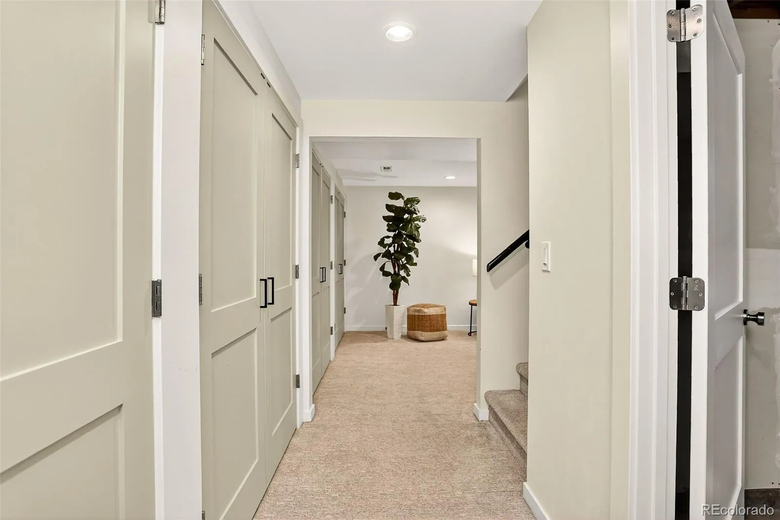 Beautifully remodeled with the finest attention to detail, this mid-century brick ranch combines timeless character with exceptional quality rarely seen in this price range. The renovation was done with care, not as a flip, and features newer solid wood doors inside and out, newer windows, and thoughtful finishes throughout. Oak hardwood floors flow across the main level, connecting a bright living area to the custom kitchen with handcrafted cabinetry, quartz countertops, and GE Cafe/Bosch stainless steel appliances. Two bedrooms and a fully remodeled bath complete the main floor. The finished basement adds a spacious family room, a third bedroom, a flex room ideal for an office or gym, a remodeled ¾ bath with heated floors, laundry room and generous storage. Outside, enjoy a private backyard retreat with a brick paver patio accented by flagstone, low-maintenance turf, and a storage shed behind the two-car garage.