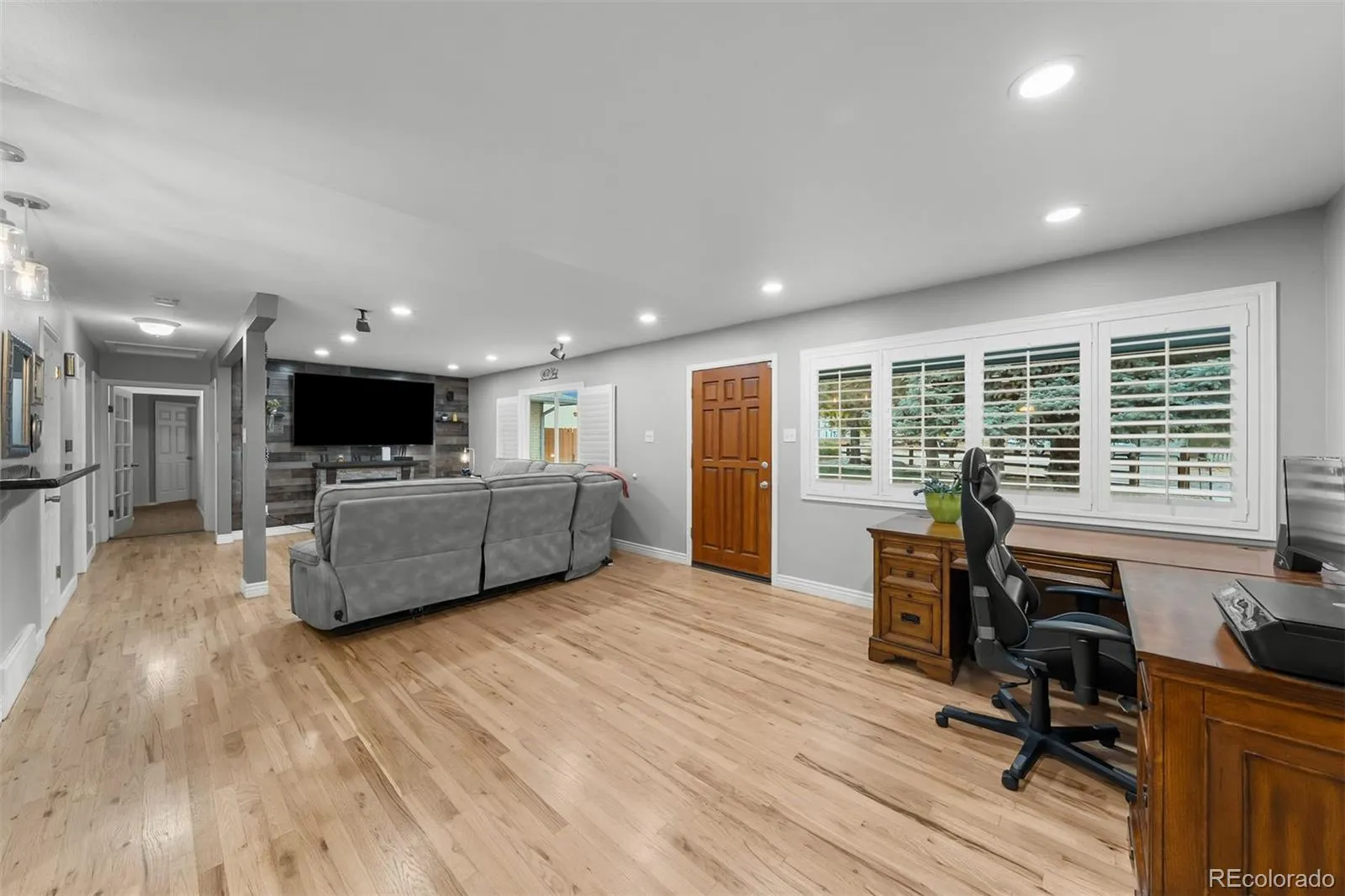 Inside, main-floor living feels warm and welcoming with refinished wood floors, an open layout, and shiplap accents that bring a touch of Colorado charm. The kitchen and baths have been thoughtfully updated, blending comfort with classic style, and the spacious primary suite includes a walk-in closet, private bath, and direct access to a patio ready for a hot tub. An oversized two-car attached garage and a large driveway provide plenty of parking and storage options.