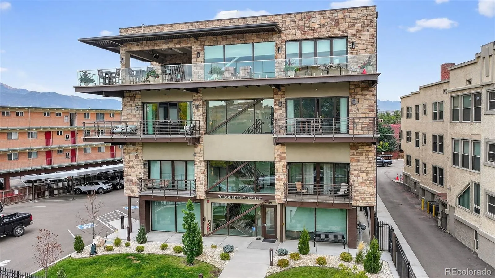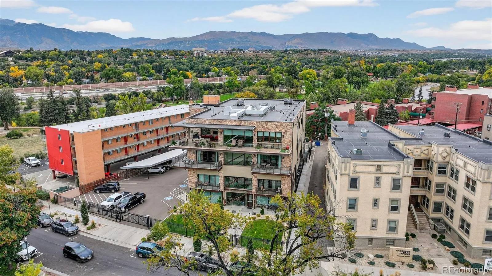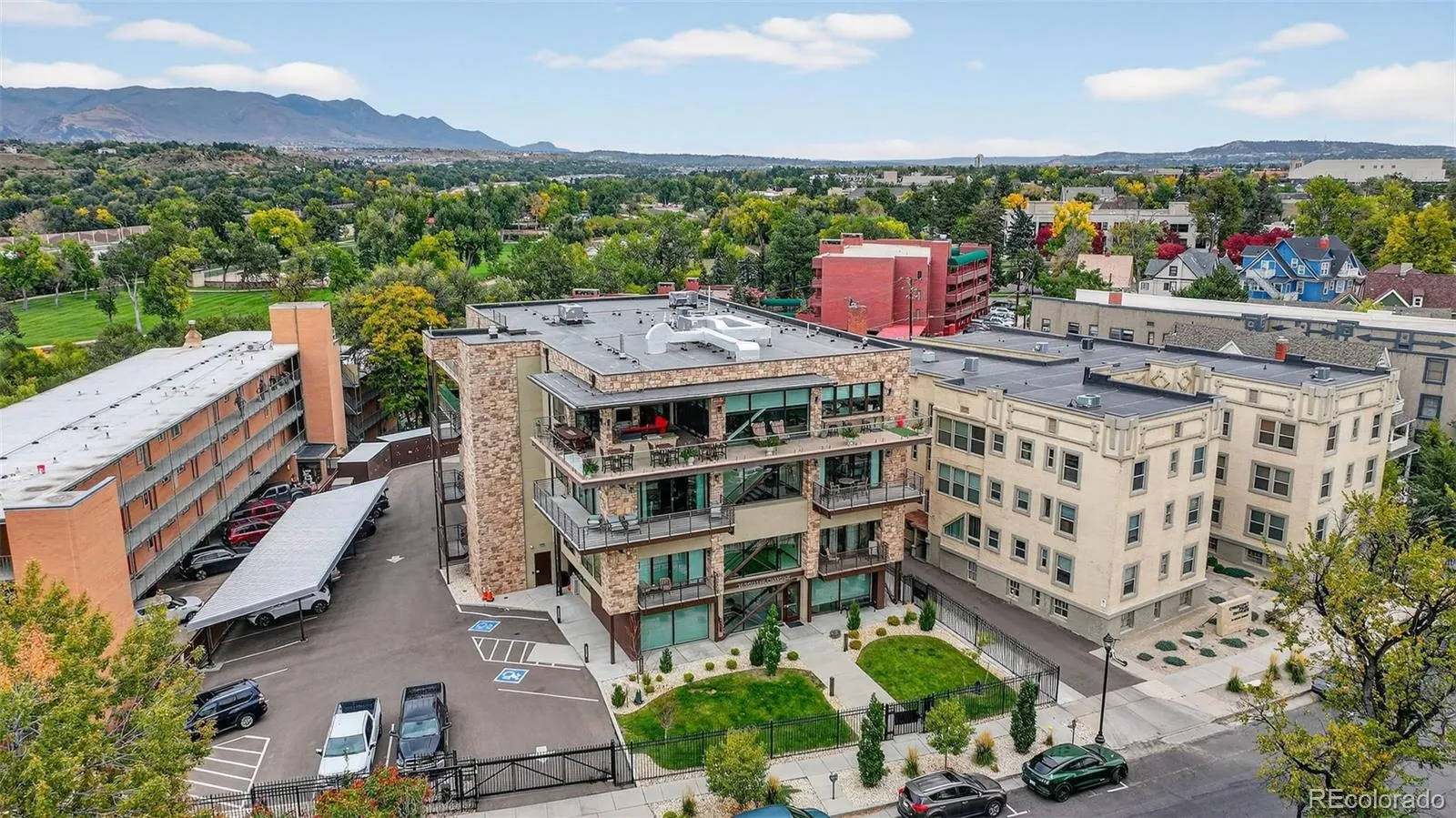 Discover urban living at its finest in this stunning studio loft/condo located in the heart of downtown Colorado Springs. Situated on the second floor within a gated community, this thoughtfully designed residence offers stylish comfort with rich hardwood floors throughout and an efficient layout ideal for modern living. The high-ceilinged living room is filled with natural light and offers direct walk-out access to an expansive covered deck, ideal space for entertaining guests or enjoying a fine summer evening. The kitchen is equipped with a center island breakfast bar, a gas range, and a pantry for additional storage, making meal prep and hosting both easy and enjoyable. The spacious private bedroom area includes an 8.8 x 4.10 walk-in closet and a well-appointed 3/4 en-suite bathroom featuring a luxurious spa shower for ultimate relaxation. Other features include a laundry room and dedicated covered parking. This vibrant community places you just steps away from Monument Valley Park, which offers a swimming pool, playground, pickleball courts, and the scenic Pikes Peak Greenway Trail. Enjoy the unbeatable walkability to downtown’s best dining, shopping, and entertainment options, all right outside your door. With quick access to I-25, commuting and travel are a breeze, making this an ideal home for professionals, students, or anyone seeking a low-maintenance lifestyle in a prime location. Whether you’re looking for your first home, a low-maintenance downtown retreat, or an investment property, this move-in-ready studio offers the perfect blend of location, function, and style. Don’t miss this rare opportunity to live in the heart of it all!