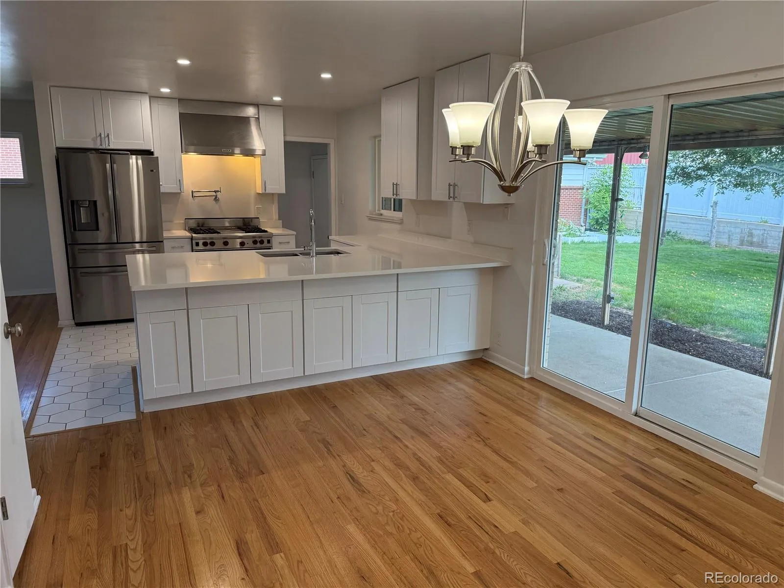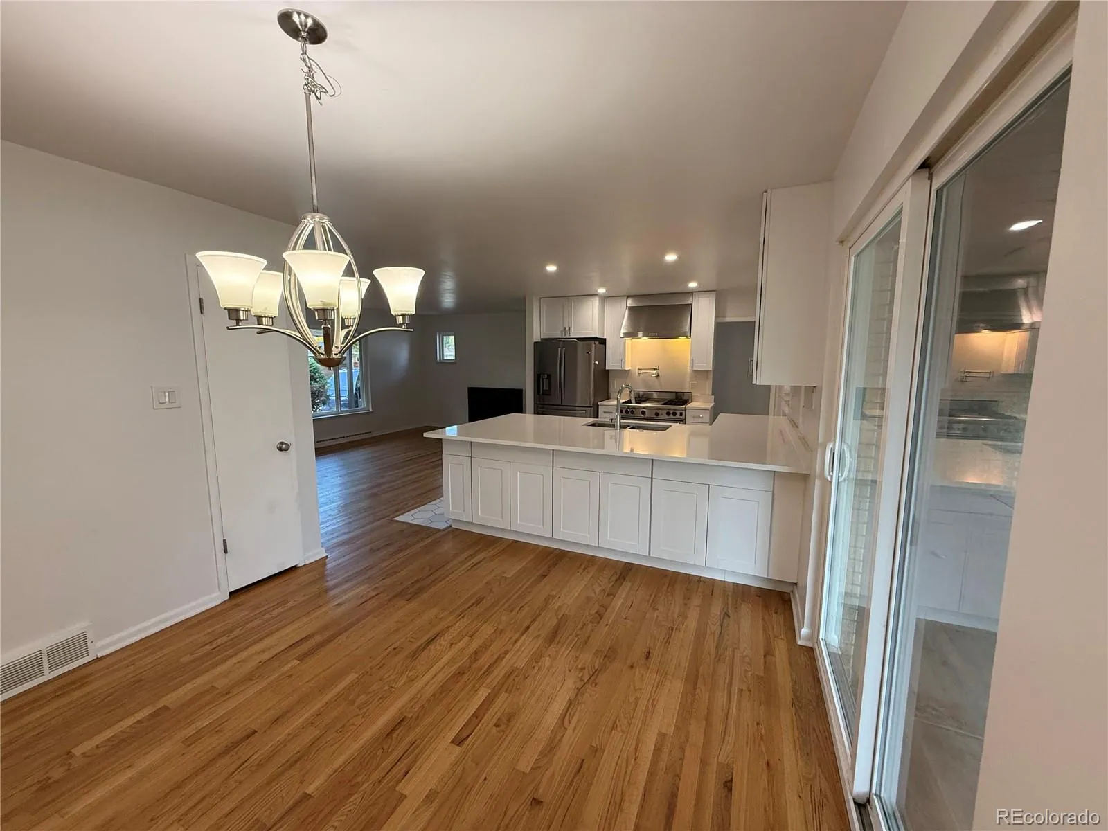 Remodeled brick ranch in University Hills. Main level has an open floor plan with a wood-burning fireplace, refinished hardwood floors and a modern, beautiful open-concept kitchen! The kitchen offers white shaker style cabinetry, white quartz counters, undermount sink and a large island with bar seating. High-end appliances, including Wolf gas range and range hood, Kitchen Aid dishwasher, and a pot filler. The main level also offers a dining room, three nicely sized bedrooms and a full, modern, remodeled bathroom.