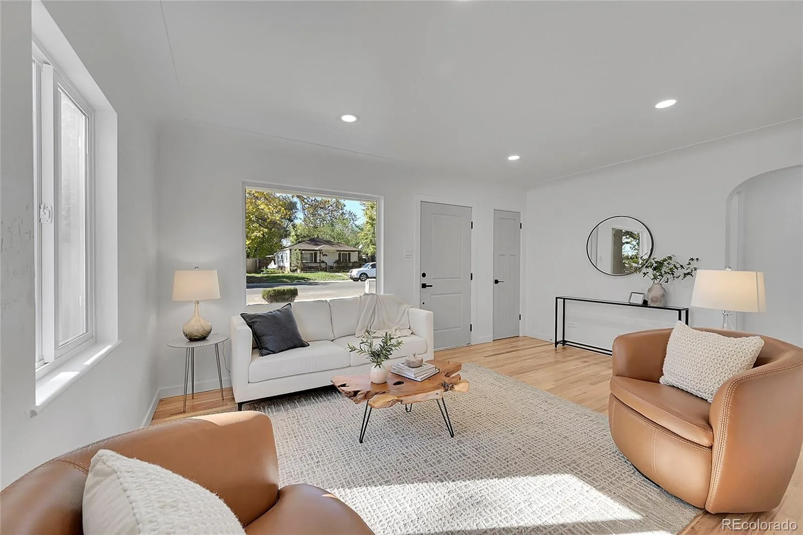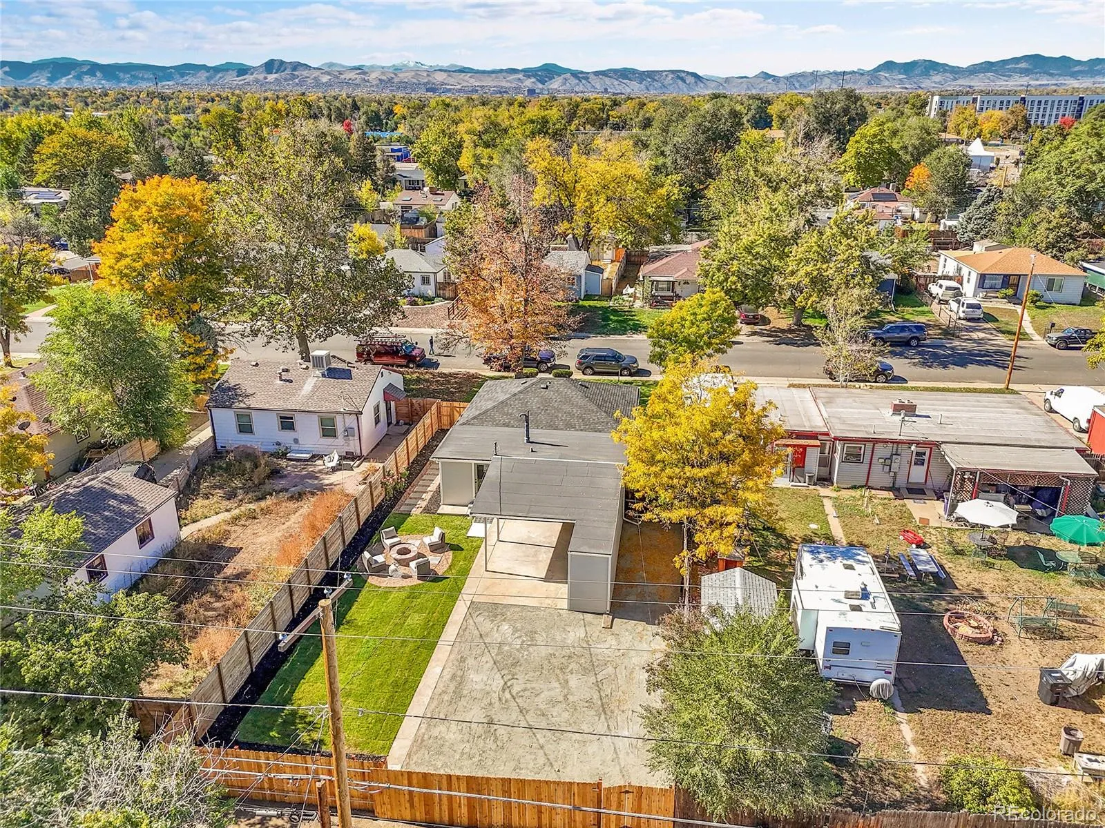 Professionally designed, fully renovated and centrally located less than 10 mins from downtown Denver! With excellent curb appeal, new exterior paint, windows, front door, concrete walkway and landscaping, you’ll be instantly impressed. Beautiful refinished hardwood flooring leads you into a brand new, open-concept kitchen featuring white shaker cabinetry, slab quartz countertops, designer tiled backsplash, high-end white Bespoke appliances, new hardware and faucet. Primary suite offers plush new carpet and a fully remodeled 3/4 bathroom with penny tiled floor, luxurious shower, new vanity, mirror and lighting. Two additional bedrooms with hardwood flooring, and a fully renovated full bathroom with new tile, bathtub, vanity, shower valve, vanity and mirror. Darling and functional laundry/mud room adds pantry and storage space with built-in white shaker cabinetry. The gorgeous backyard offers plenty of parking options including space for an RV, covered carport and large gravel lot with sliding gate. New fence, sod and fire pit, perfect for chilly winter nights and entertaining. Additional storage space on the side of the carport. This home has all new paint, doors, lighting, windows, furnace, water heater and central AC! Schedule your showing before it’s too late.