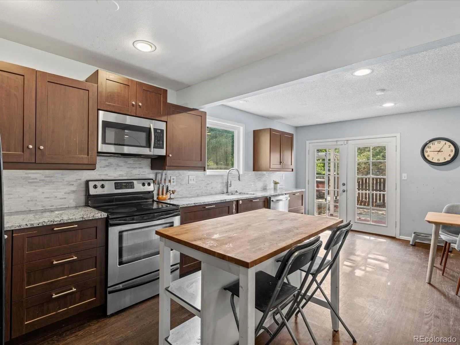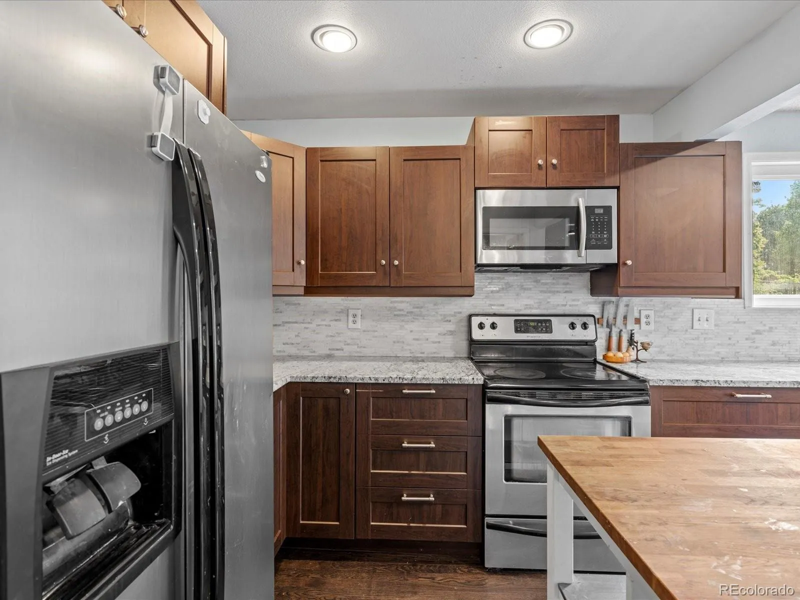 Step outside to a private backyard oasis surrounded by mature trees and a 550 sq. ft. stamped concrete patio—ideal for outdoor dining, entertaining, or relaxing.