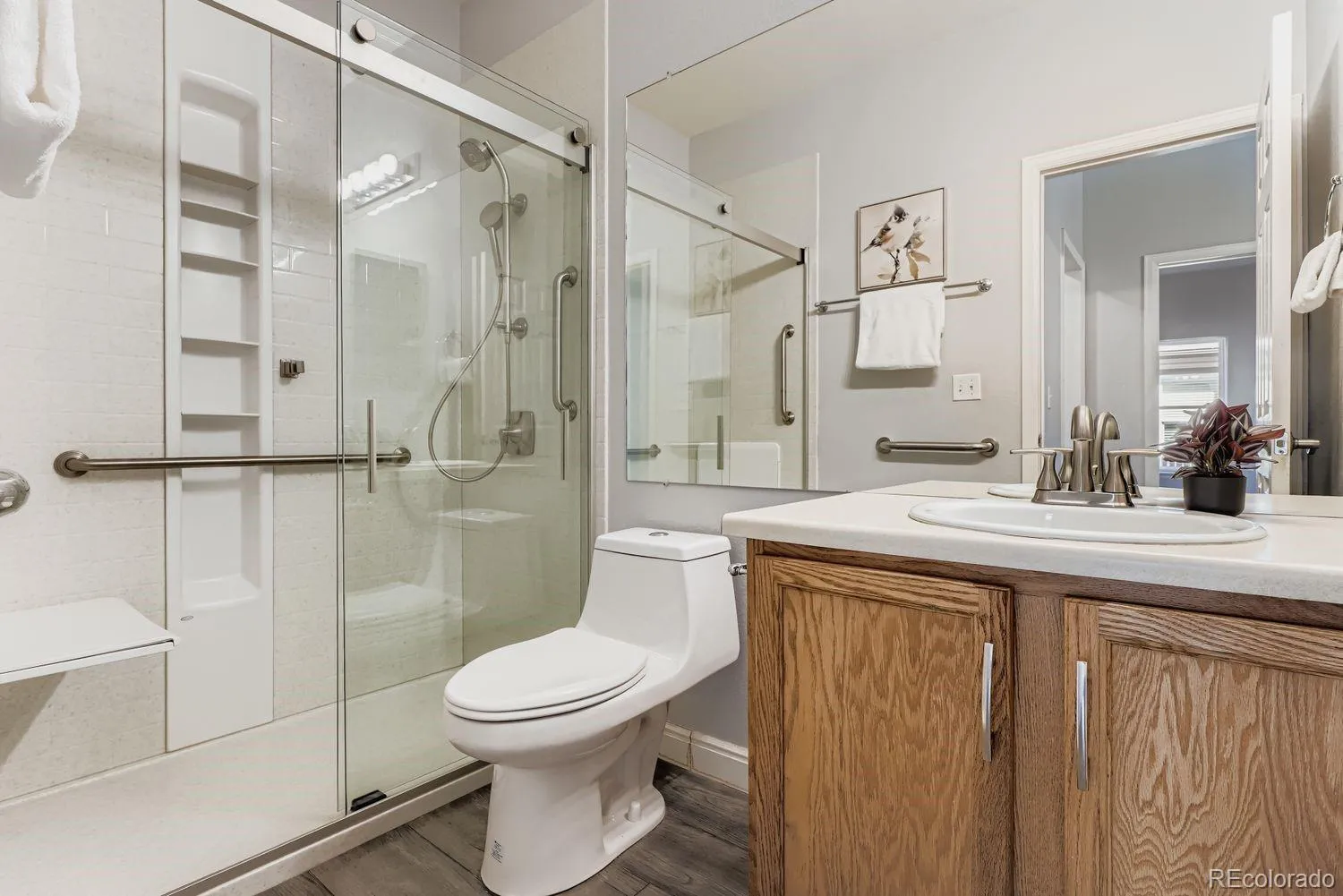 OPEN, SPACIOUS FLOOR PLAN WITH LOTS OF LIGHT*GREAT OFFICE SPACE WITH FRENCH DOORS RIGHT OFF OF THE ENTRY FOR PRIVACY*LUXURY VINYL PLANK IS IN ALL OF THE LIVING SPACES AND CARPET IN THE BEDROOMS* DOOR WAYS HAVE BEEN PROFESSIONALLY AND BEAUTIFULLY MODIFIED FOR WHEELCHAIR ACCESS*LARGE OPEN KITCHEN FEATURES STAINLESS APPLIANCES AND EATING SPACE* THE ADJACENT FAMILY ROOM HAS BACKYARD ACCESS THAT FEATURES A LARGE TREX DECK, 3 RAISED GARDEN BEDS, XERISCAPING AND A WATERING SYSTEM FOR EASY MAINTANENCE* THE PRIVATE BACKYARD IS FULLY FENCED AND BACKS TO OPEN SPACE* THE PLANK FLOORING, CARPET AND PAINT ARE ALL IN GREAT CONDITION* FULL UNFINISHED BASEMENT IS WAITING YOUR CREATIVE DESIGN*BAM FIBER OPTICS IS INSTALLED IN HOME! ALSO SIMPLY SAFE ALARMS ARE IN THE HOME AND JUST NEED TO BE ACTIVATED IF YOU WOULD LIKE*
