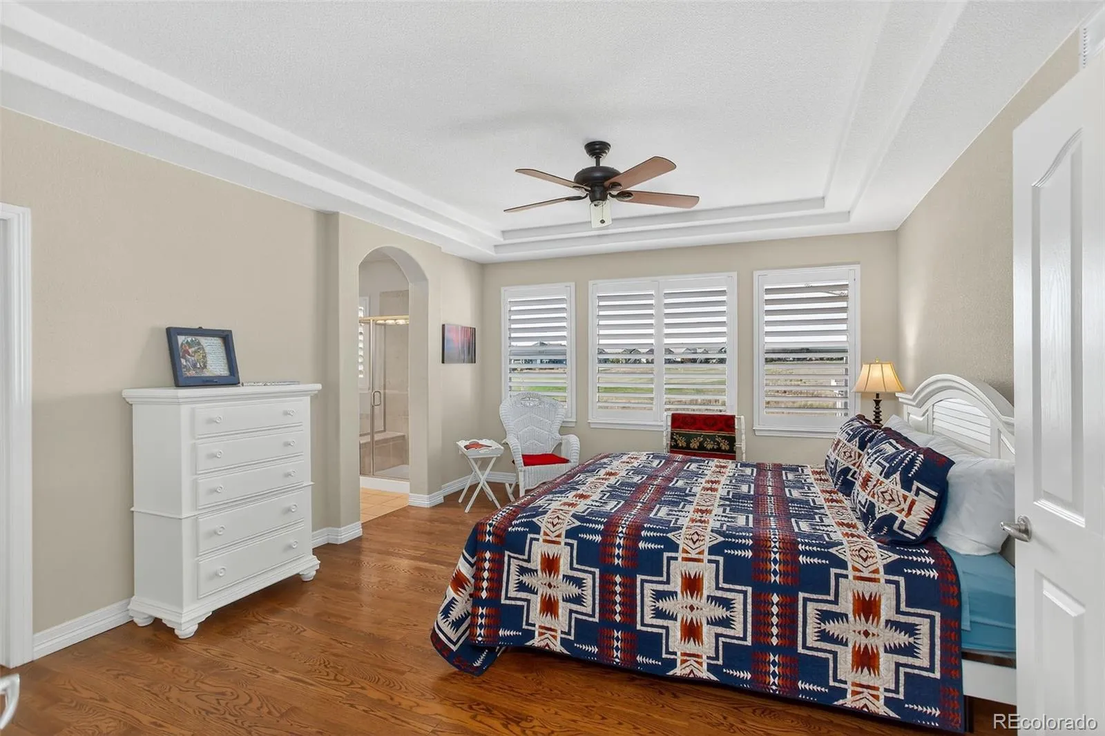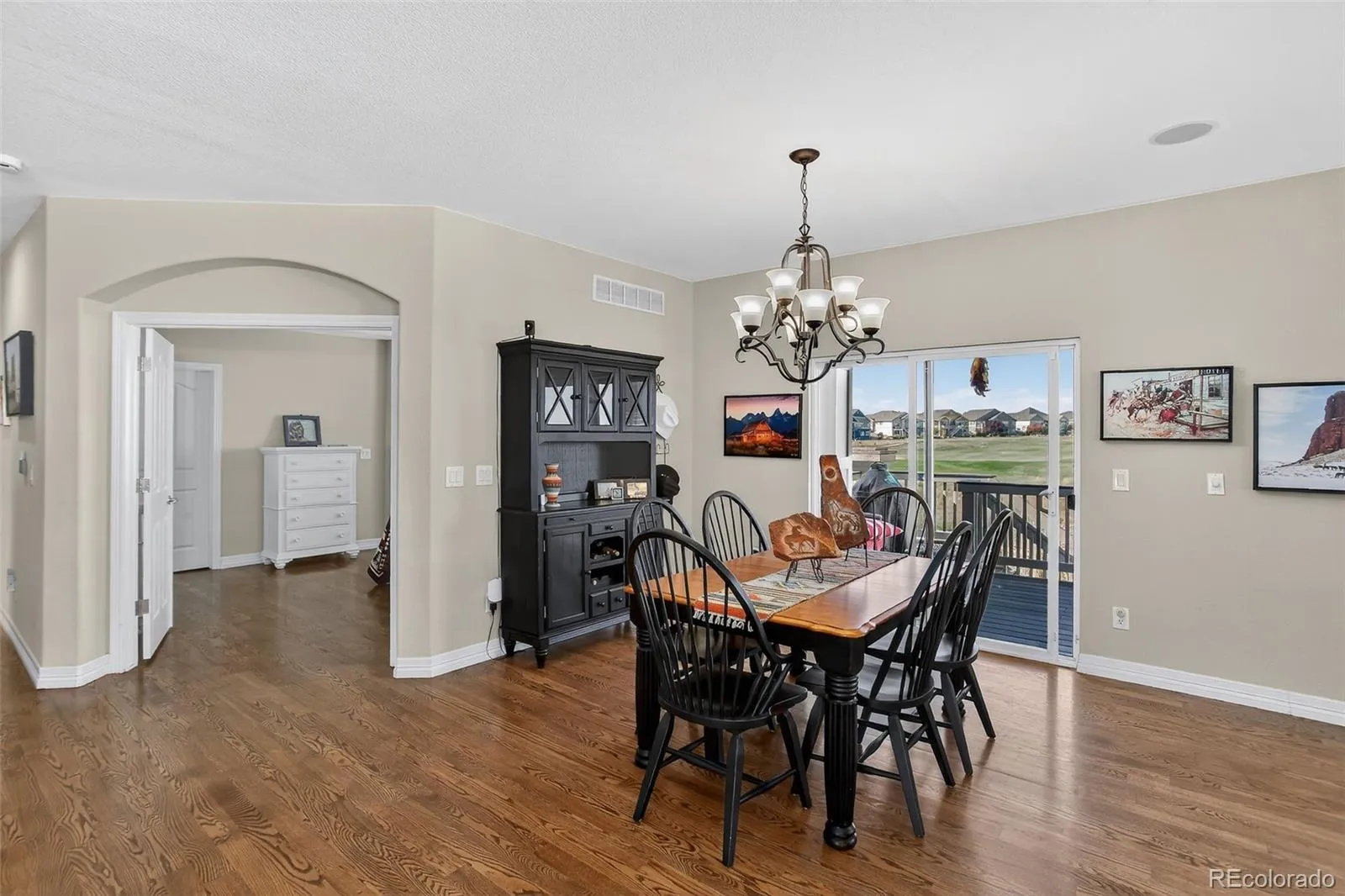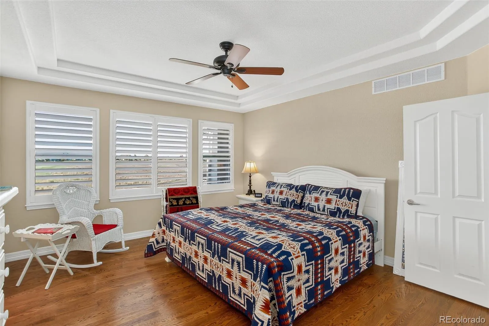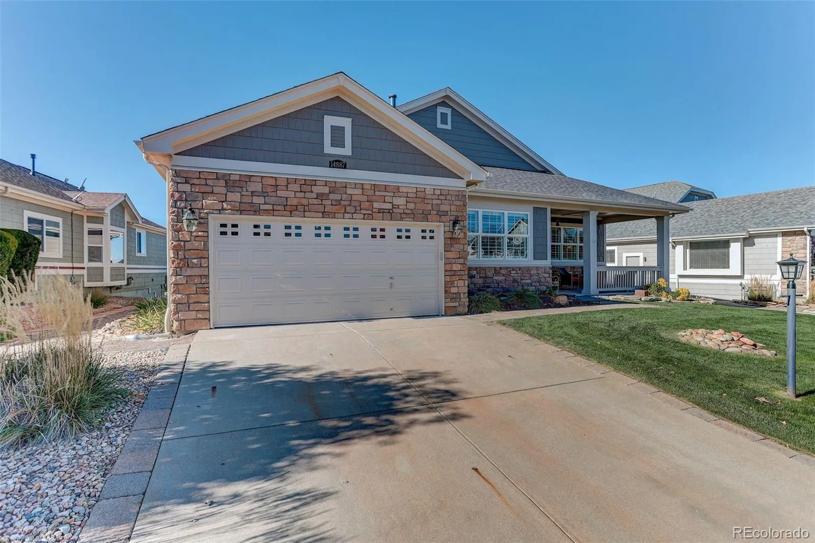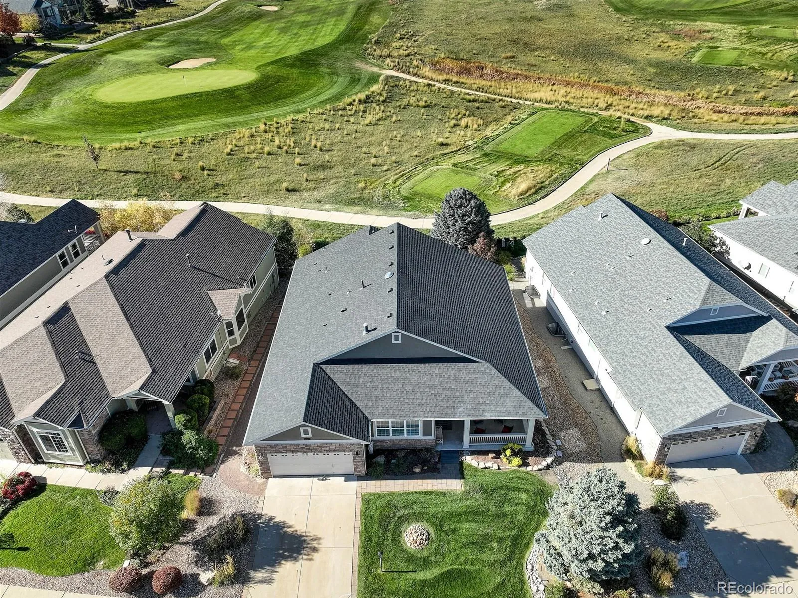 Absolutely Amazing Golf Course Location and Stunning Multiple Fairway Views! The beautiful 2 bedroom home with an office in the 55+ Heritage Todd Creek neighborhood sits behind the 2nd Hole Tee with views of both entire 1st and 2nd holes. Enter the home to beautiful hardwood floors throughout the entire main level. The floor plan is magnificently open with the kitchen, dining, and family rooms all adjoining and open to one another. All rooms have golf course views and the large family room features a warm and inviting fireplace and mantel. There is a wonderful bonus “Hearth” room off the kitchen that is perfect for reading, gaming, TV, or even a formal dining area. It even features it’s own fireplace! The front of the home off the entry delivers a large french door entry office. The Primary Bedroom has a tray ceiling and beautiful golf course views and attaches to a 5 piece primary bath. There is a large 2nd bedroom with a walk in closet and full 2nd bath in the hallway. All windows throughout the main level are beautifully finished with White Plantation Shutters. Love the outdoors? The nicely landscaped back yard flows out to the golf course with amazing views delivered from the yard and oversized covered back deck. Just Stunning Views! Finally the basement is unfinished and ready for your design and imagination to create whatever additional living space your may desire. Come see this beautiful home in this really wonderful 55+ community offering a great Golf Course, a Clubhouse with fantastic restaurant and bar, and 2 pools (indoor and outside). There are clubs galore to explore, a billiards room, yoga and dance classes, library, and ballroom all for your use and enjoyment.