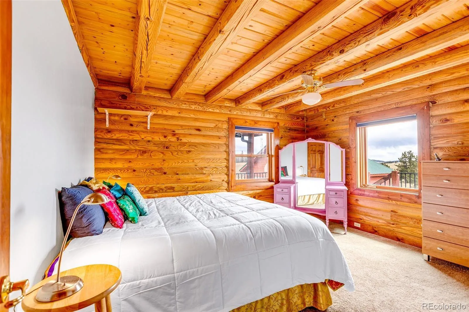 Escape to Silverheels Ranch and step inside the dream of authentic mountain living! This spectacular 3-bedroom, 3-bathroom log home is perfectly situated on 5 fully usable acres, bordering a vast 1,200-acre ranch, offering a rare combination of privacy & preparedness for the outdoor enthusiast, the equestrian, or the remote professional. Inside, natural light floods every corner, highlighting the impressive log structure and creating a warm, inviting atmosphere. With multiple dedicated living zones, there is room for everyone and everything: host movie nights in the cozy family room, entertain guests in the downstairs game room, or utilize the upstairs loft as a bright play area or reading nook! A dedicated main-floor laundry and a massive basement workshop/exercise room/flex space ensure chores and projects are handled with ease. This property is a haven for hobbyists and horse lovers: The grounds feature a functional barn and horse corral, ready for your animals on day one. An oversized, detached 2-car garage provides exceptional storage for all your mountain gear, or keeps your vehicles warm and snow-free! Beyond your property line, the adventure continues. Not only do you have nearby access to National Forest land for hiking, riding, and exploration, but the property is also situated directly across the street from dedicated neighborhood Open Space! Enjoy stunning, unobstructed mountain views, and residents benefit from private access to private, stocked fishing ponds. Located just a short drive from the charm of Fairplay and the world-class slopes of Breckenridge, yet still offering easy connectivity to Buena Vista and the Denver Metro Area, this home delivers the best of both worlds. This isn`t just a house; it`s your new basecamp for the Colorado lifestyle!