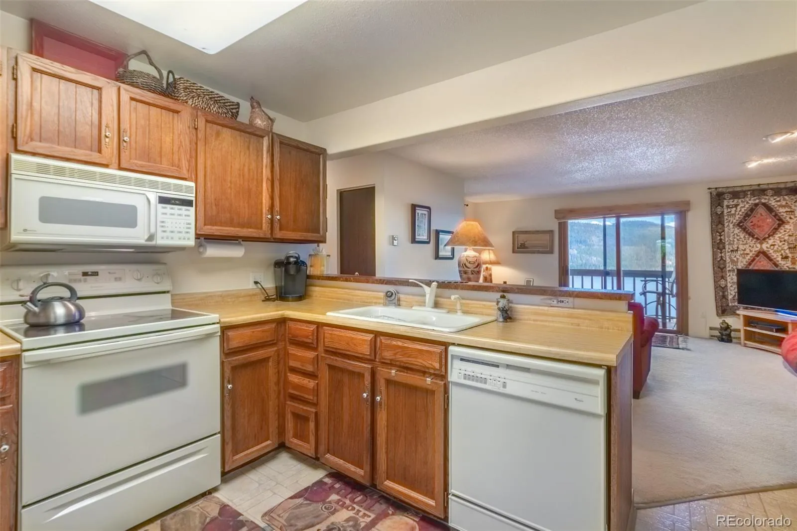 Moss rock Fireplace in a wall of multi-colored pine! Open living/ kitchen/ dining opens to a covered porch. Magnificent lake and mountain views from inside, too! Two bedroom, 1 1/2 bath condominium on a wooded hillside above the Lakes is close enough for you to walk into town or into the National Park if you are feeling energetic. Large storage building provides a place for you to keep your boat or snowmobiles on a trailer during the off season.