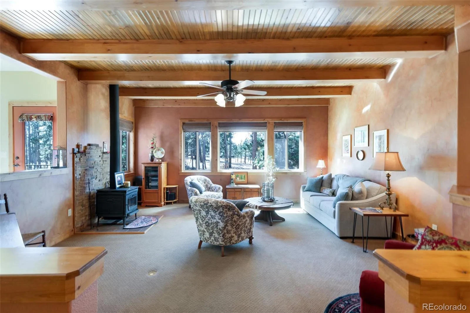 You will feel the difference between a house and a home when you see this Black Forest custom home-the warm atmosphere welcomes you! Set on five treed acres of Ponderosa pines, you’ll feel the peace of being away from the hustle of city living, yet minutes from the necessities of Colorado Springs or Monument. This stucco home is flooded with natural light and every window offers a view of nature. You’ll find custom finishes from solid hickory and oak flooring, custom wood trim finishes, solid wood doors, custom stair risers, beechwood kitchen cabinets and a touch of vintage. The three bedrooms are spacious and oversized giving room for a growing family. Four bathrooms include a master ensuite with a large custom soaking tub to watch the moon rise into the night sky. A cozy den with a vintage oak mantel surrounds a small gas-flame stove keeping you comfortable with the change of seasons. The main living room is perfect for gatherings as the wood-burning stove will ease Colorado’s winter chill and help with heating costs. A beautiful blue-stain pine high ceiling adds warmth as well. A small office or crafter’s room is apart from the main living areas. A second story family room can offer more office space. A lower-level walkout is a great rec room with another full bath and closet. A large unfinished area is ideal for storage or hobby projects, or can be finished to the owner’s needs. There’s a large fenced area for family pets to explore. Under the second story deck, is a completely enclosed area for security and shelter. A fenced garden grows Fall Gold raspberries and a currant bush. A storage shed for tools or projects is always handy. A pergola from milled ponderosas on the property is placed with a stunning view of magnificent Colorado sunsets while sipping a favorite beverage and seated around a firepit. Include this home in your search for a picturesque area of forest living! Located close to elementary school & Black Forest Regional Park trails & recreation.