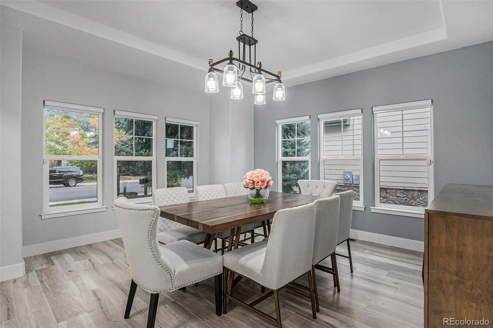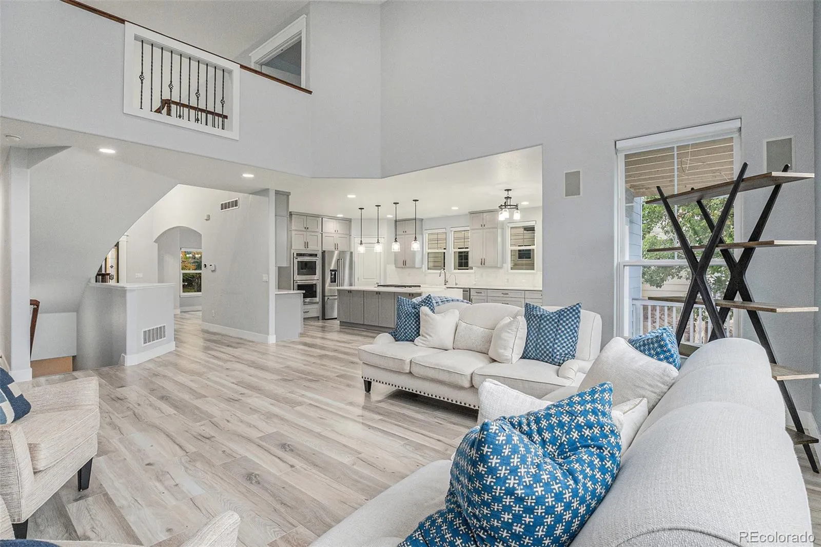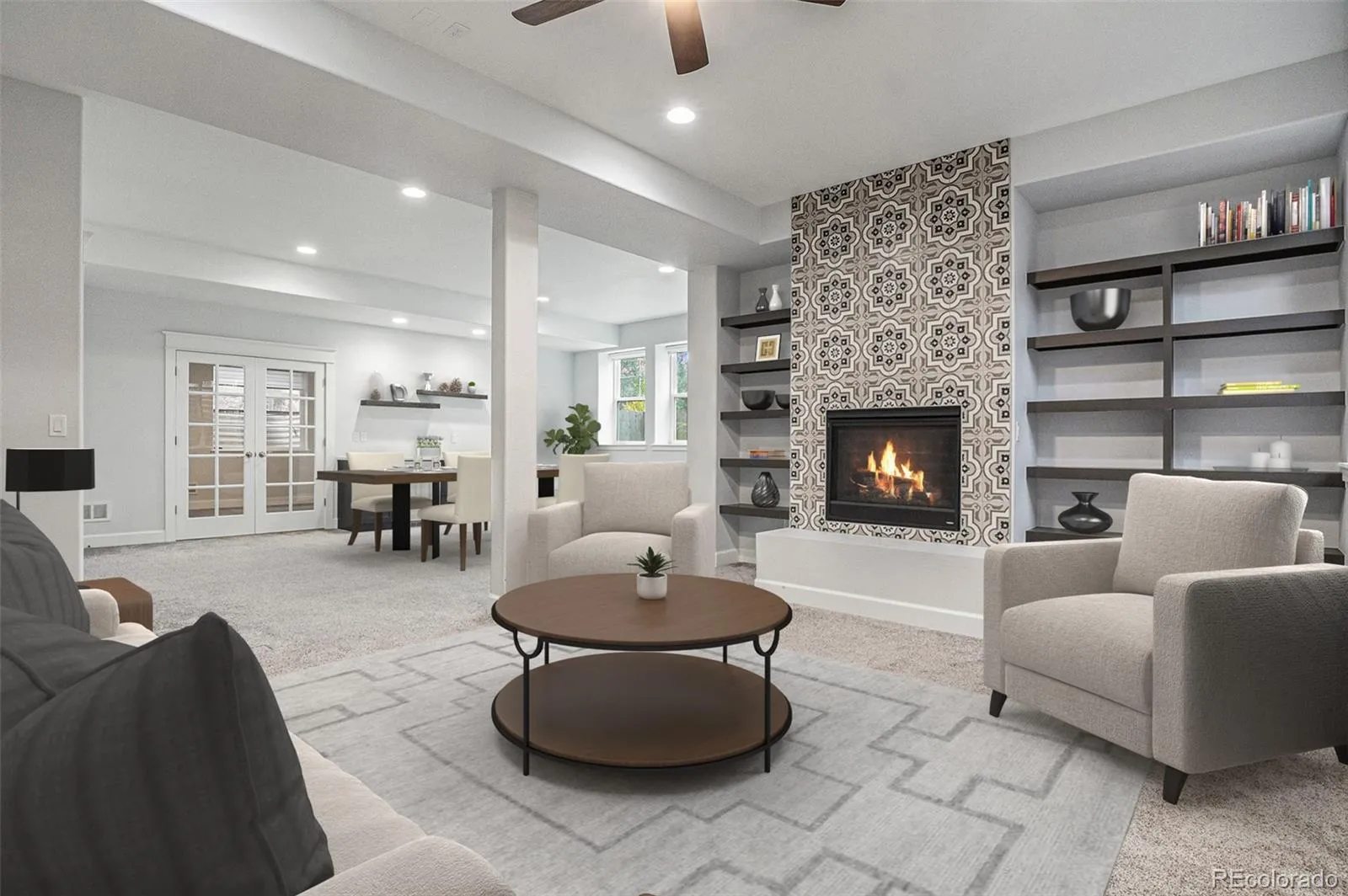 The daylight basement boasts high ceilings, a large recreation room with a fireplace, an additional bedroom and bathroom with a shower, and plenty of storage space, The well-maintained front and back yards feature mature trees and plenty of space for outdoor activities. The home is conveniently located near Central Park at The Farm, close to local schools, anchored shopping centers, and offers easy access to I-25 and E-470 via E. Arapahoe Road.