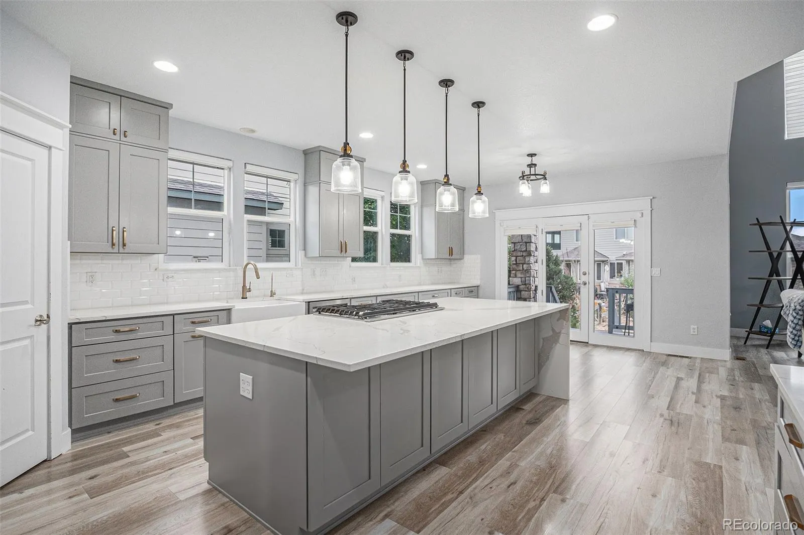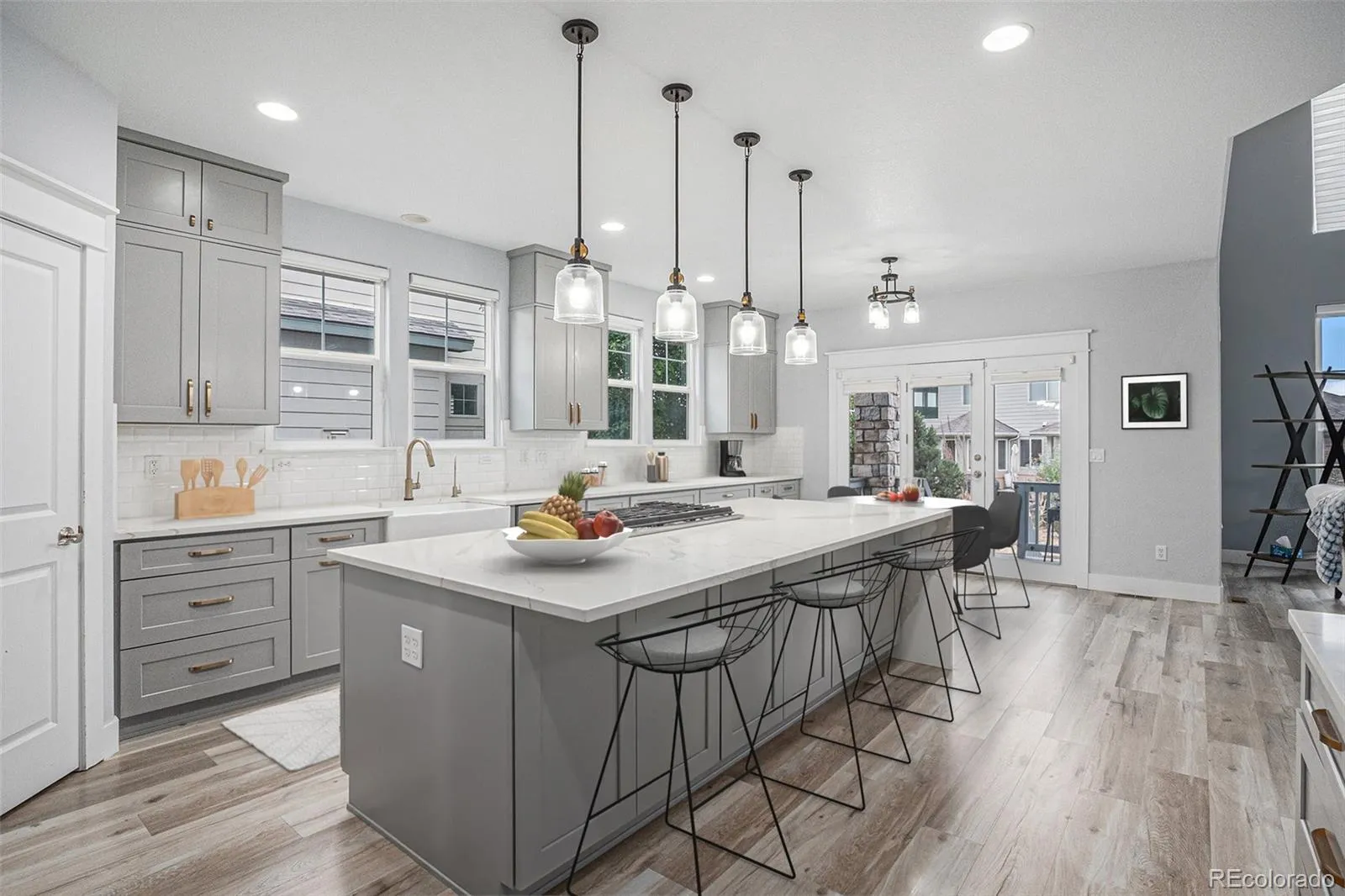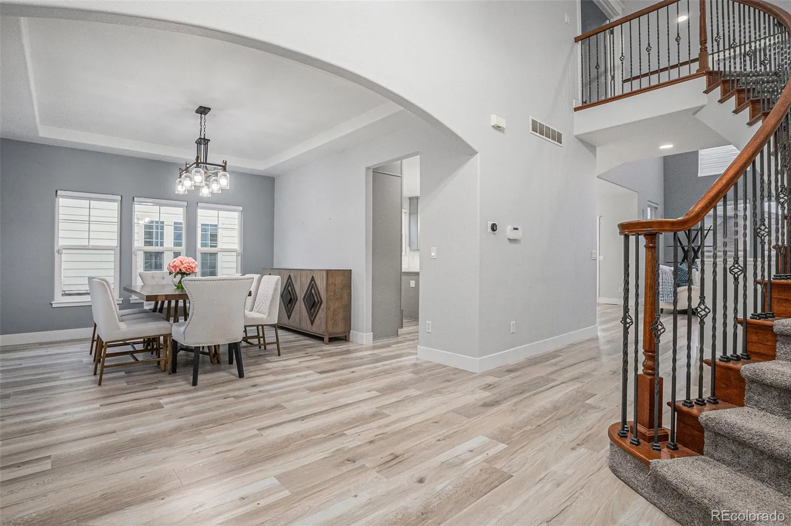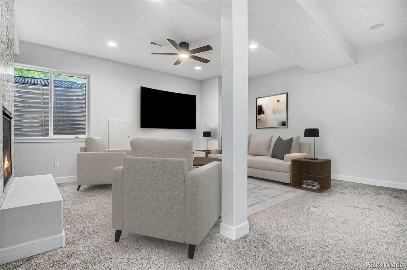 The daylight basement boasts high ceilings, a large recreation room with a fireplace, an additional bedroom and bathroom with a shower, and plenty of storage space, The well-maintained front and back yards feature mature trees and plenty of space for outdoor activities. The home is conveniently located near Central Park at The Farm, close to local schools, anchored shopping centers, and offers easy access to I-25 and E-470 via E. Arapahoe Road.