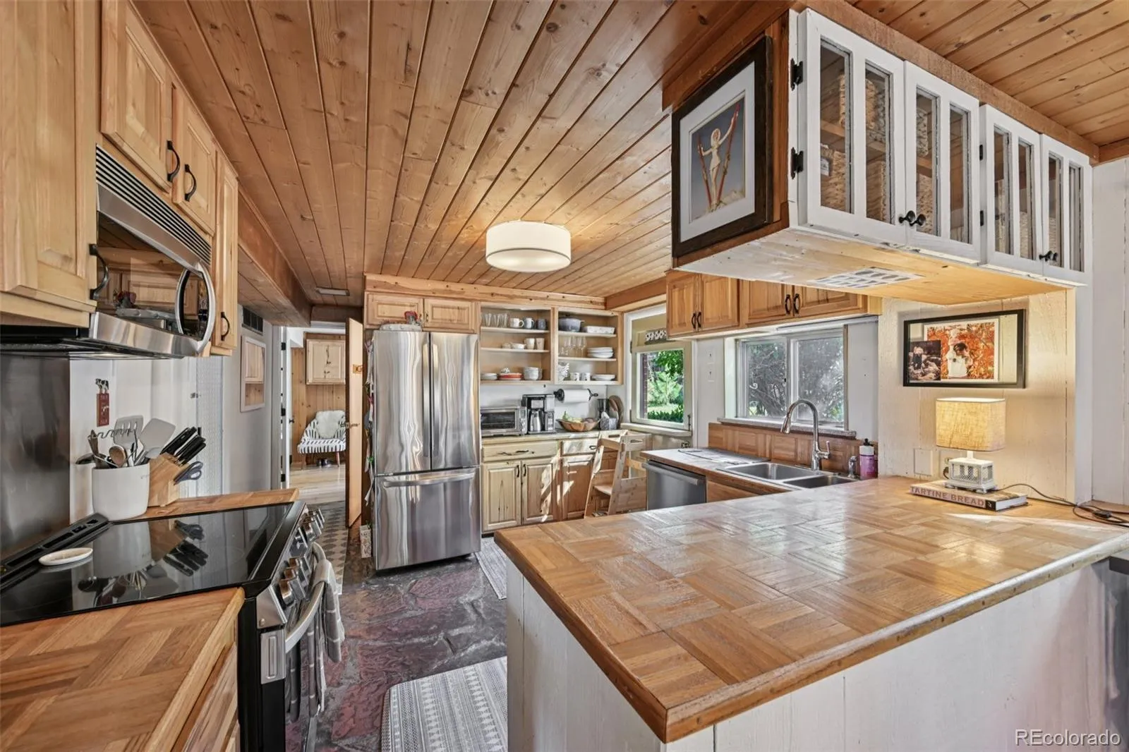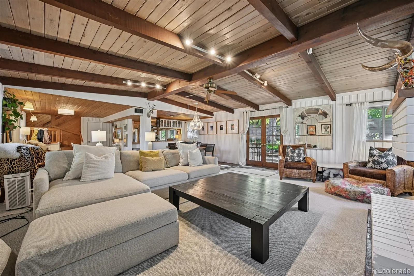 **GORGEOUS MID-CENTURY GEM IN EAST BOULDER** Don’t miss this rare opportunity to own nearly an acre in one of Boulder County’s most sought-after communities. This 4-bedroom, 3-bath showpiece blends mid-century design with thoughtful modern updates — a true retreat with stunning views and endless possibilities. Inside, you’ll find vaulted ceilings with exposed wood beams, stone flooring in the main living areas, and original MCM tile and fixtures that bring warmth and character. The kitchen features stainless appliances, butcherblock counters, and an efficient flow perfect for cooking and entertaining. Multiple flex spaces and an additional office area make this home as functional as it is beautiful. Set well off the main road and backing to open space, the property offers privacy, tranquility, and sweeping views. The breezeway entry and attached carport can serve multiple uses or be converted to a more modern garage for cars and recreational toys. Outside, the large yard and private outdoor pool set the stage for unforgettable gatherings. A separate pool house currently serves as an office and storage area, offering even more flexibility. This property also falls within the boundary for exclusive lake rights through the membership HOA — a rare privilege with limited membership by waitlist. This is a truly special home with soul, space, and style — book your showing today and experience it for yourself.