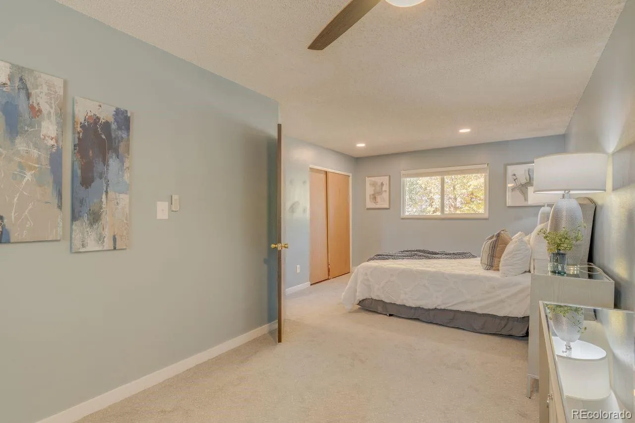 Spacious Layout, Upstairs, you’ll find a full bathroom and two bedrooms, including an oversized primary suite with carpeting and enough space for a cozy seating area.