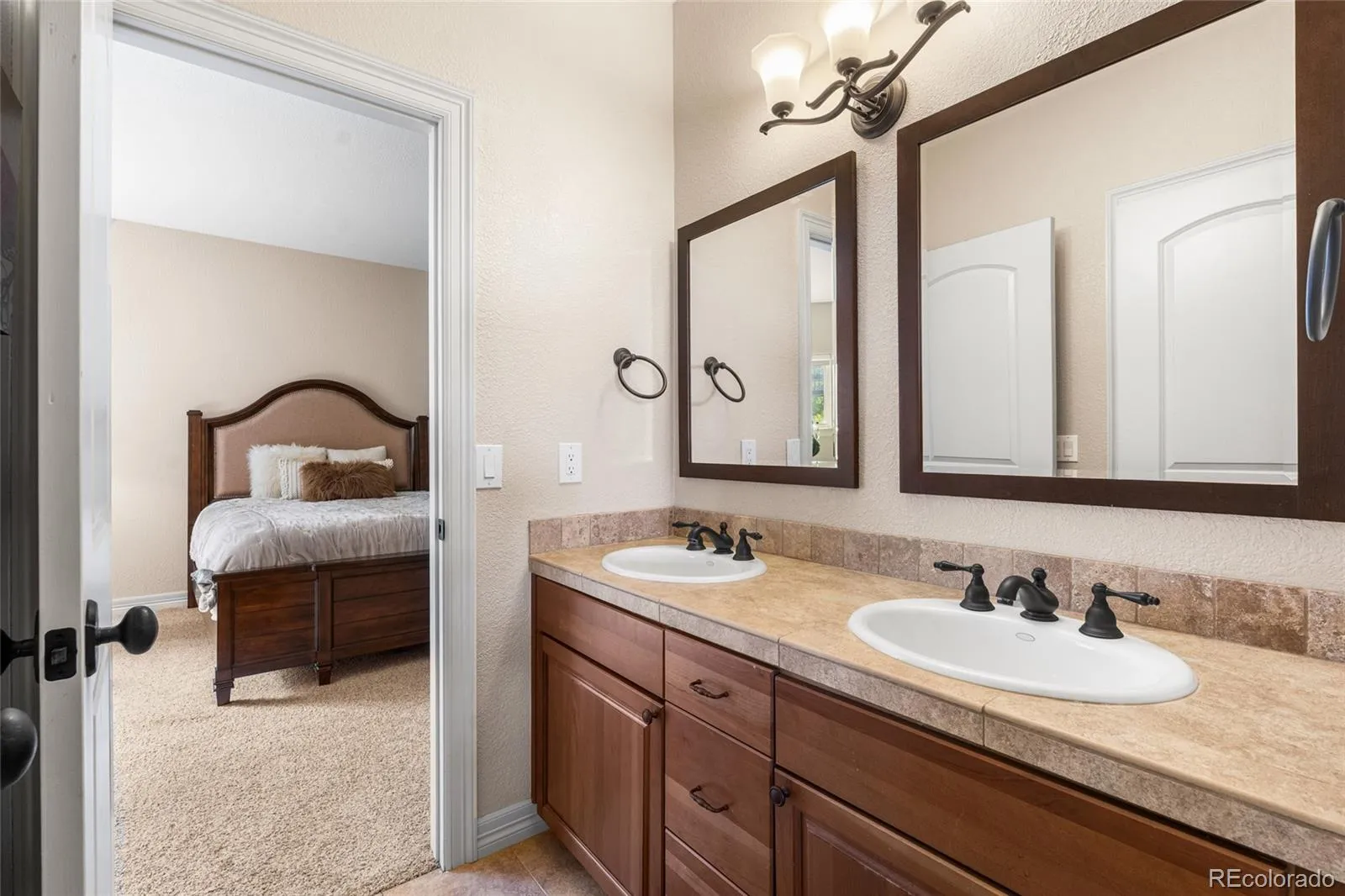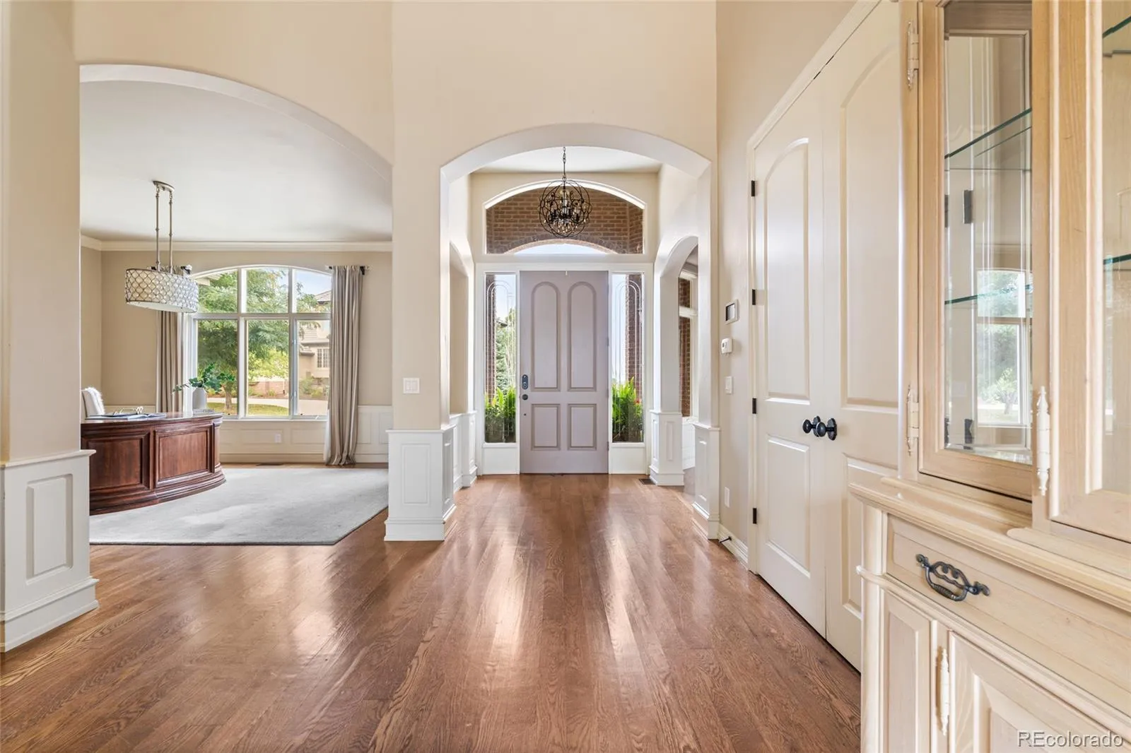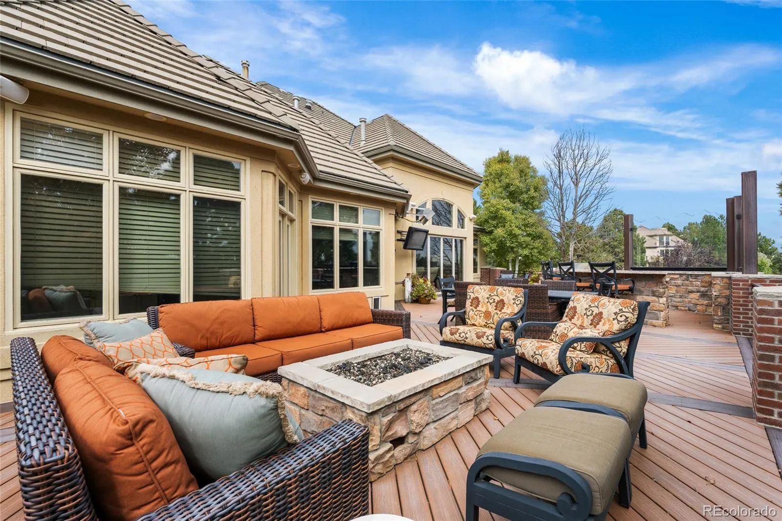 Experience unparalleled luxury in this exquisite two-story home in the prestigious Heritage Estates subdivision of Lone Tree, Colorado, perfectly positioned on the renowned Lone Tree Golf Course. This expansive five-bedroom, six-bathroom residence features a main-floor primary suite with a luxurious five-piece en suite bath, paired with a gourmet eat-in kitchen showcasing granite countertops, a walk-in pantry, and a custom wine fridge with a recently replaced cooler. Designed for seamless entertaining, the home offers stunning outdoor living spaces with custom fencing featuring 8-foot columns ($40,000), commercial heaters for year-round comfort, and breathtaking mountain and city views. Additional highlights include two gas fireplaces, electronic shades on the main floor, a Jack-and-Jill bath, and all patio furniture, TVs with mounting hardware, a pool table, and washer and dryer included in the sale. Set within a secure, gated community, this residence combines elegance, functionality, and golfer’s paradise charm, offering unmatched space for relaxation and entertainment for the discerning buyer.
