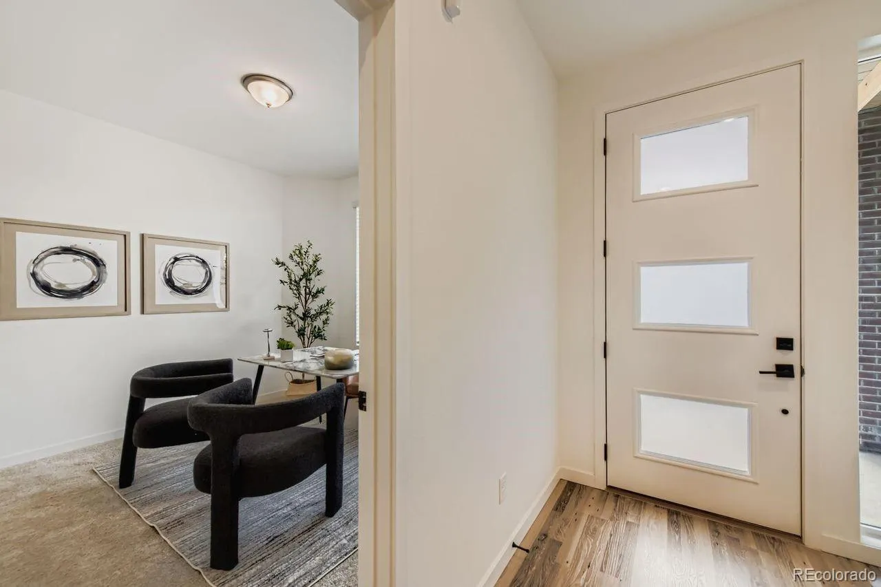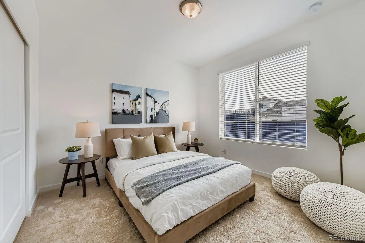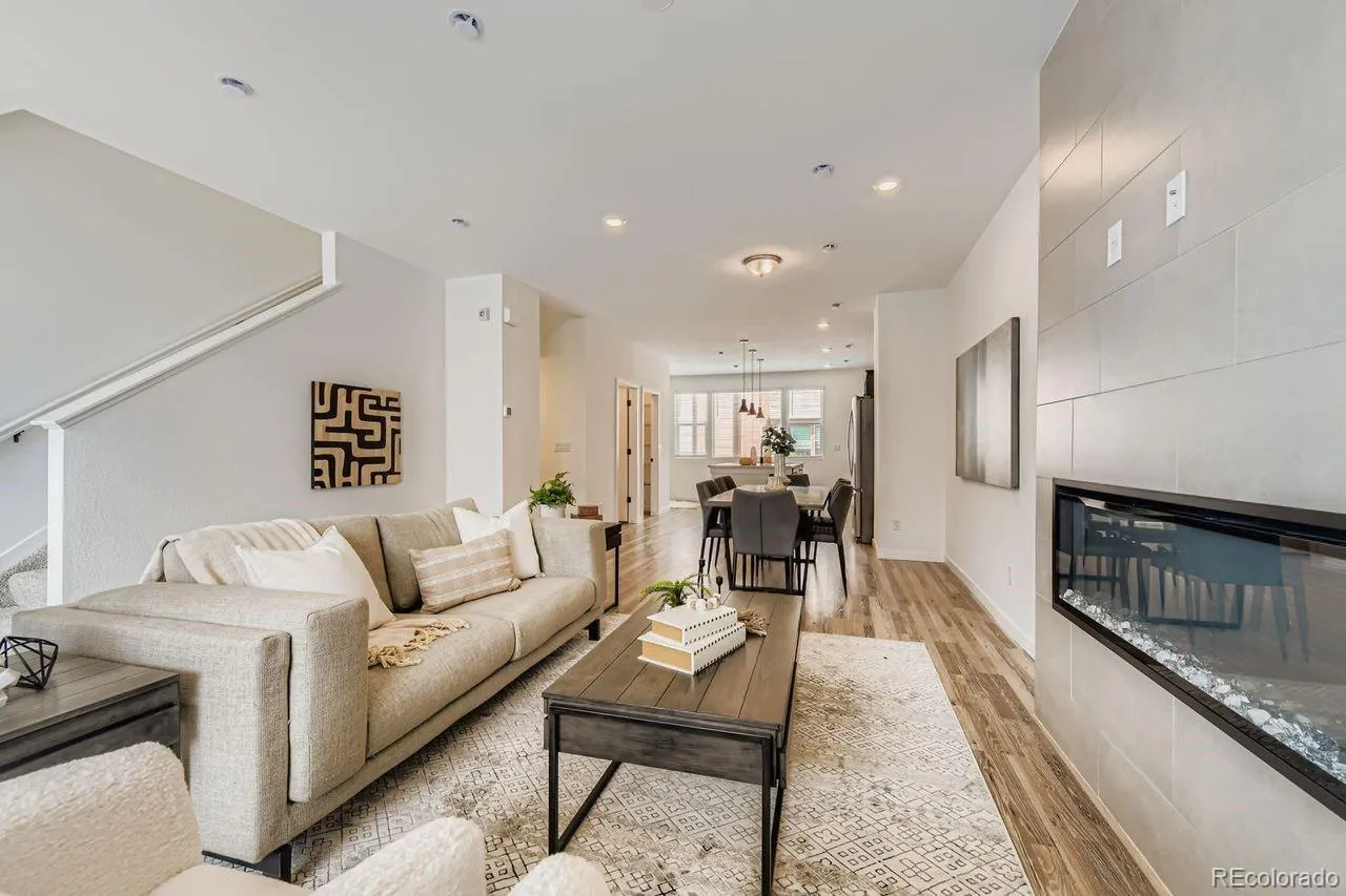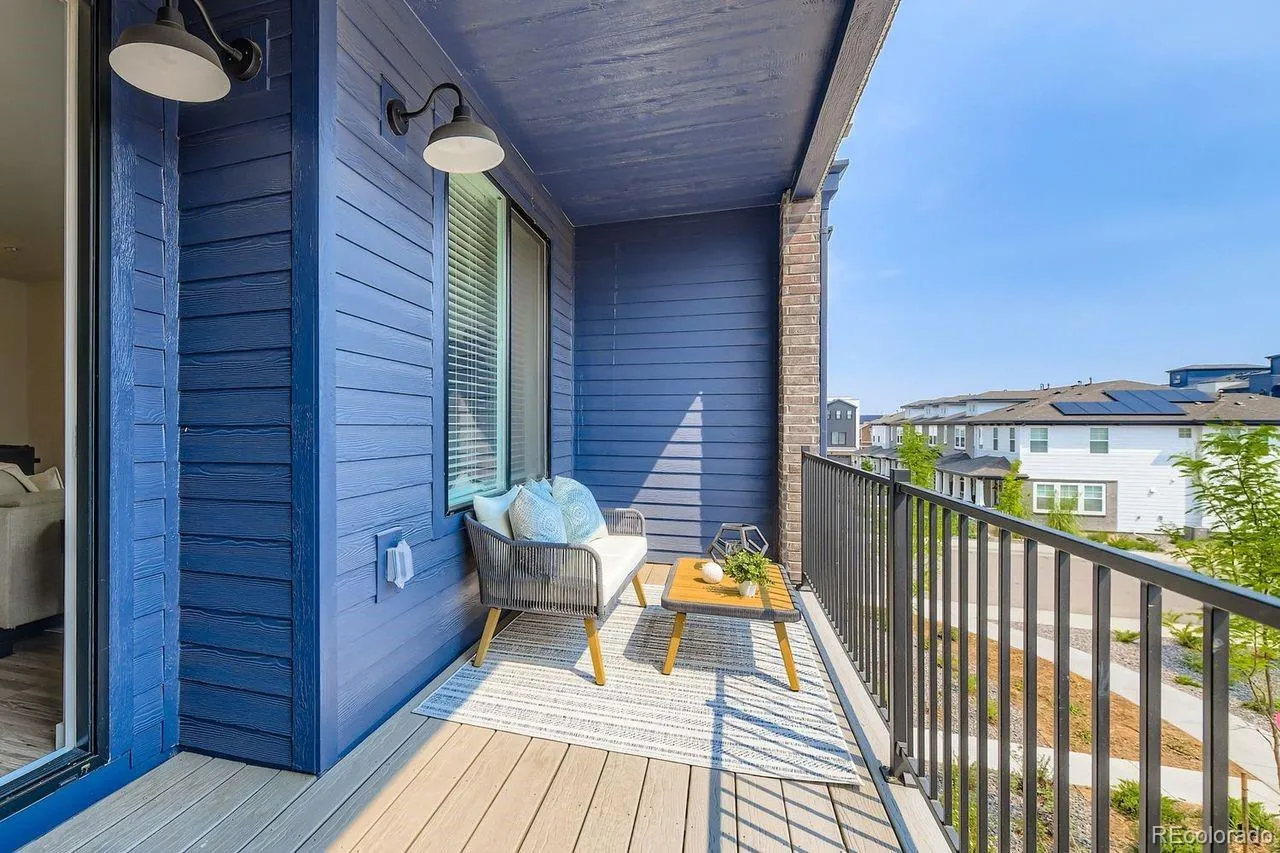 MOVE-IN READY 3-story townhome offers luxurious living in Prospect Village at Sterling Ranch! Enjoy the expansive great room with contemporary electric fireplace and soaring 9’ ceilings on both the main and upper levels creating a bright and airy living space. The stylish chef kitchen features 42″ charcoal gray cabinets, granite countertops, tile backsplash, and premium stainless Whirlpool® appliances including 5-burner gas range, hood, and built-in microwave. Relax in the luxurious owner’s suite featuring an oversized walk-in shower with a bench and a spacious walk-in closet with access to the upper level laundry room. Separate bedroom and full bath on the entry level provide privacy and flexibility for guests or a home office. High-quality finishes and attention to detail are evident throughout the home offering both elegance and functionality. Located in the vibrant Prospect Village at Sterling Ranch, this townhome offers easy access to community amenities, parks, and trails. Experience the best of luxury living in a prime location. Schedule your showing today and make this stunning townhome your own!