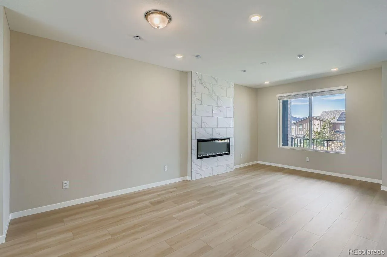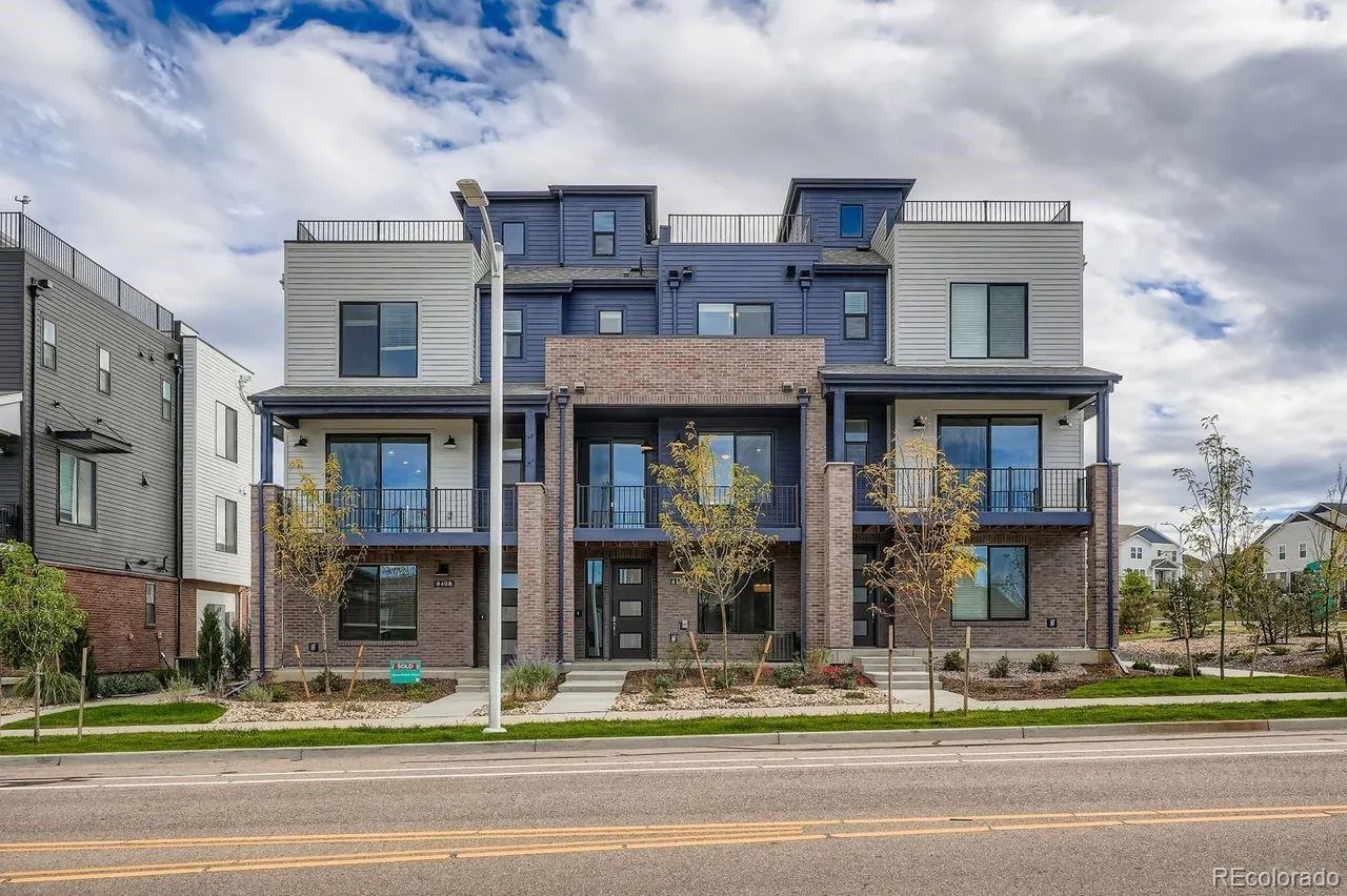 MOVE IN READY NOW!!! BEST VIEWS IN THE ENTIRE NEIGHBORHOOD!! Stunning 3-story townhome with ROOFTOP DECK in Prospect Village at Sterling Ranch offers luxurious living with spectacular mountain views! Enjoy the expansive great room with contemporary electric fireplace and soaring 9’ ceilings on both the main and upper levels creating a bright and airy living space. The stylish luxury kitchen features 42″ white cabinets, quartz countertops, tile backsplash, and premium stainless Whirlpool® appliances including 36″ gas cooktop, hood, and built-in microwave/oven. Relax in the luxurious owner’s suite featuring an oversized walk-in shower with a bench and a spacious walk-in closet with access to the upper level laundry room. Separate bedroom and full bath on the entry level provide privacy and flexibility for guests or a home office. High-quality finishes and attention to detail are evident throughout the home offering both elegance and functionality. Sterling Ranch offers a wealth of amenities, including parks, Pickleball, walking trails, a clubhouse with wine bar and brewery, and a state-of-the-art fitness center to enhance your lifestyle. This exceptional townhome is perfect for those who appreciate modern design, high-end finishes, and breathtaking mountain views. Schedule your showing today and experience unparalleled Colorado living!