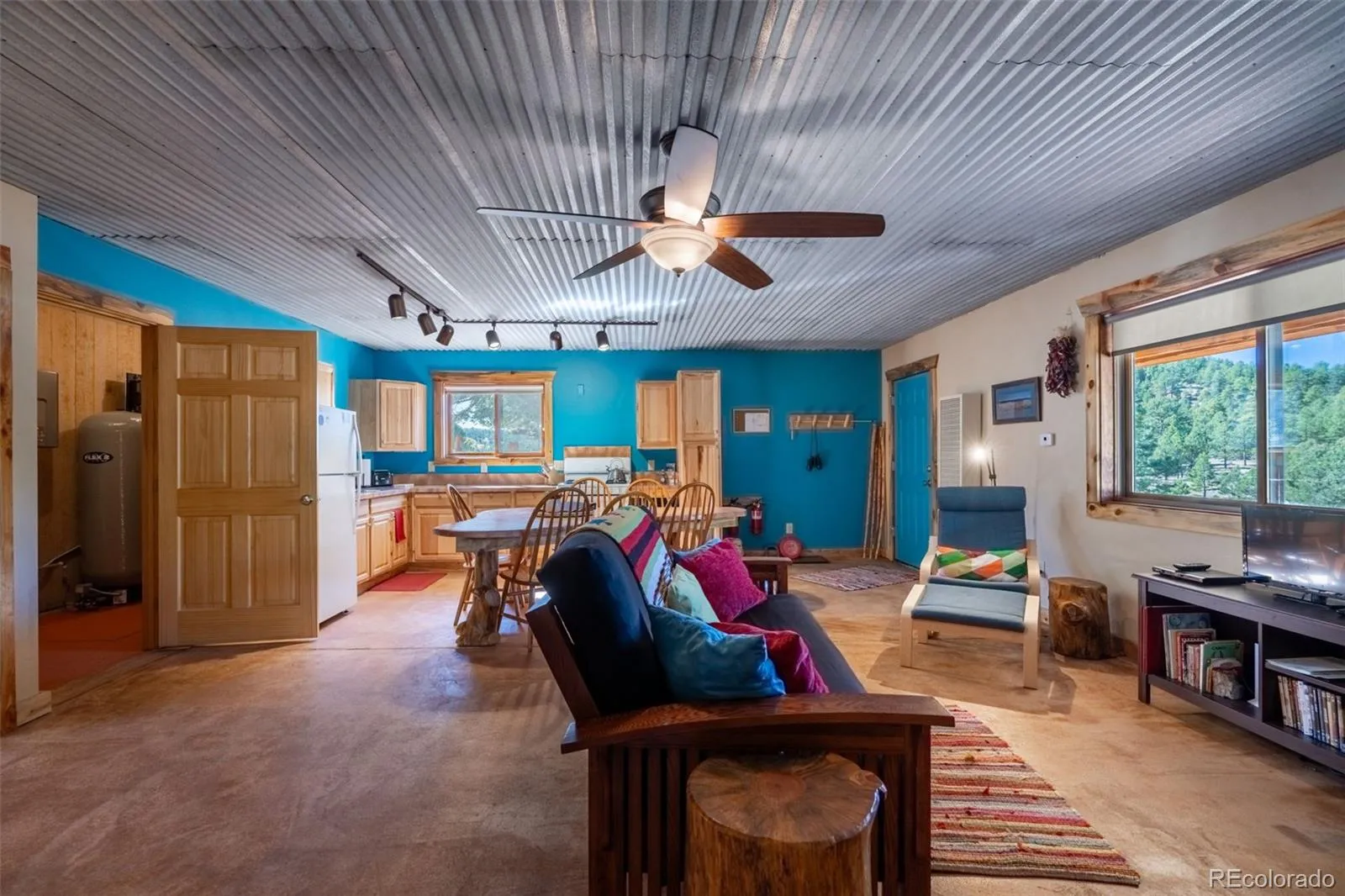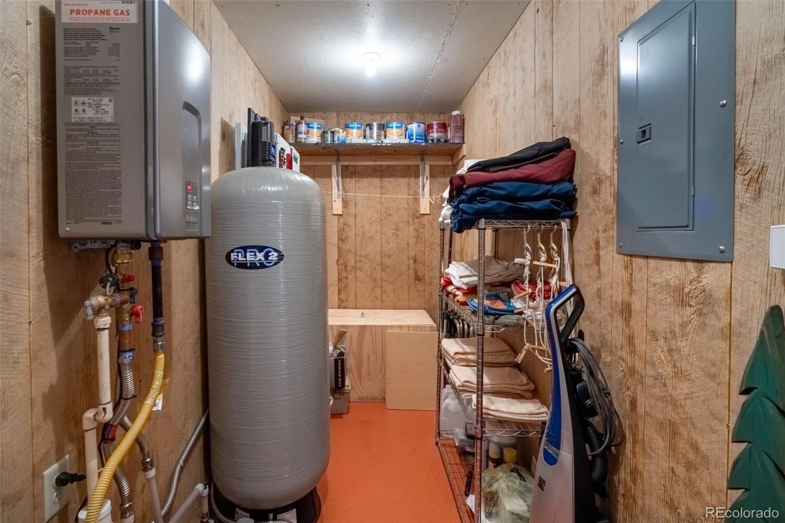 Owner owned solar, new solar batteries, backup propane generator and dual propane tanks are also included. Propane wall heaters, a pellet stove and wall ventilators equally distribute heat to all rooms to keep this cabin warm and cozy on those cold and snowy Colorado nights. This cabin was thoughtfully constructed with views from every room. In the heart of the cabin is a gorgeous and unique hand-made dining table designed specifically to fit in between the kitchen & the main living space. There is room for a stackable washer & dryer or an all-in-one washer/dryer in the mechanical room. Starlink is available & transferable.