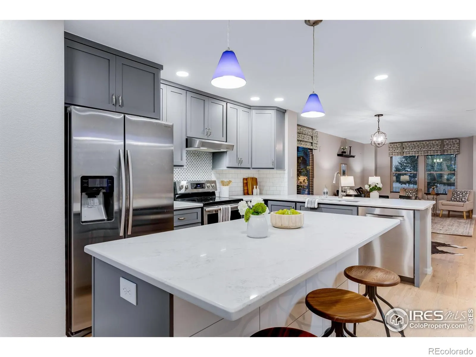 NEW PRICE!! This beautifully updated home is as stunning in person as the photos suggest! Nearly every inch has been thoughtfully remodeled, starting with the 2018 upgrades: hardwood floors throughout the main level, soft-close Tharp cabinetry with pullouts, quartz countertops, a spacious island, stainless steel appliances, and a vented hood. The powder bath and laundry room were also refreshed and shelving and cabinetry added, along with a drop zone. Upstairs, the bedrooms and bathrooms received a stylish update in 2021. The primary already had a massive walk-in closet. The exterior shines with a new roof, windows, trim, paint, and a composite deck with pergola-all completed just two years ago, along with a new garage door and smart opener. Mechanical systems are solid with a newer furnace and AC in 2022. The finished basement just got brand-new carpet and completes the home with a bed/bath, and wet bar in the rec area. The fenced backyard offers mature trees and no neighbors behind.
