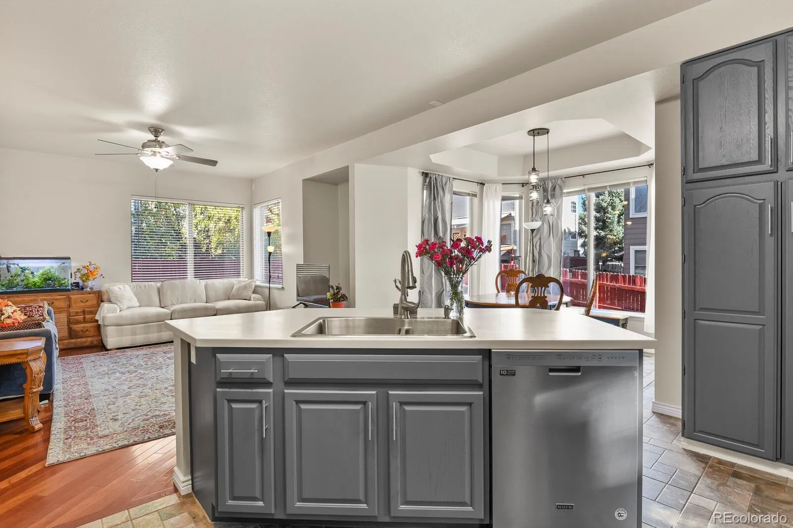 Discover the perfect blend of comfort, functionality, and style in this beautifully maintained home, ideally situated in a quite neighborhood with no HOA. A formal living room welcomes you with soaring vaulted ceilings and oversized windows that bathe the space in sunlight as you enter the home. Designed with a seamless and airy feel, the adjacent formal dining room is the perfect setting for memorable family dinners and celebrations. At the center of it all is a fully remodeled, open-concept kitchen where culinary dreams come to life, featuring high-end finishes and a spacious island. The space spills into the comfortable family room, and a charming breakfast nook completes the space. The main level provides everything you need, including an office, half bath and a functional laundry room that offers easy access to and from the attached 3.5-car garage. Ascend to the second floor to find an impressive primary suite designed for relaxation. It includes a peaceful sitting area with scenic views, a five-piece bath with a jetted tub, and a large walk-in closet. Both the primary bath and the shared Jack-and-Jill bathroom between two other bedrooms offer the added luxury of heated tile flooring. The lowest level of the home awaits your imagination, with an full unfinished basement that can be crafted into extra living space or whatever you can dream up. Perfectly balancing convenience and tranquility, this home is set in a peaceful neighborhood while remaining a short distance from I-25 and the vibrant scene of downtown Castle Rock, with its dining and shopping options. Don’t miss your opportunity to make this exceptional property your new home!
