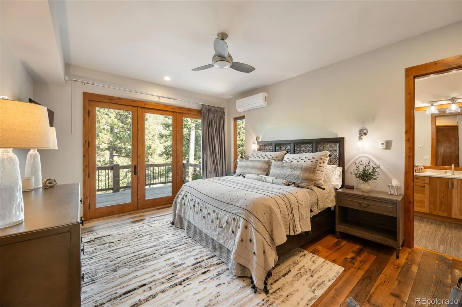 Welcome to majestic Cub Creek Ranch! The feeling of living in the middle of a National Park, surrounded by abundant wildlife and mountain views out of every window. Your search for perfection is over! Step into this custom built turn key ready home. Mountain and modern elegance and natural beauty perched perfectly on 4.68 acres in a private gated community in Evergreen. Entertain in style with a gourmet kitchen equipped with a gas stove top, double ovens, 2 luxury refrigerators 1-Sub Zero and 1-Thermador. Enjoy the spectacular deck that is located right off the kitchen and great room! The main floor features a primary bedroom suite with a steam shower, setting the stage in this tranquil estate. This amazing home also features an additional upper level primary suite plus 2 additional junior suites. Every detail of this home was careful crafted. The mountain modern design is complemented by high-end finishes, high wood beams, two fireplaces (1 wood burning with catalytic converter, 1 gas) and a remarkable whole-house filtration system. The outdoor space is equally impressive, with a saltwater hot tub, fire pit, and patio heaters, creating an inviting ambiance and spectacular views for gatherings. For the car enthusiast, a 4-car garage oversized with an RV spot and a Tesla Charger provides ample space. The property also includes a whole house generator, electric fence, security system and room by room A/C units. Enjoy the convenience of two laundry rooms, a dedicated gym, and a fantastic wrapping station in the main floor laundry room. Multiple wildflower gardens and beautiful natural landscaping throughout the property.