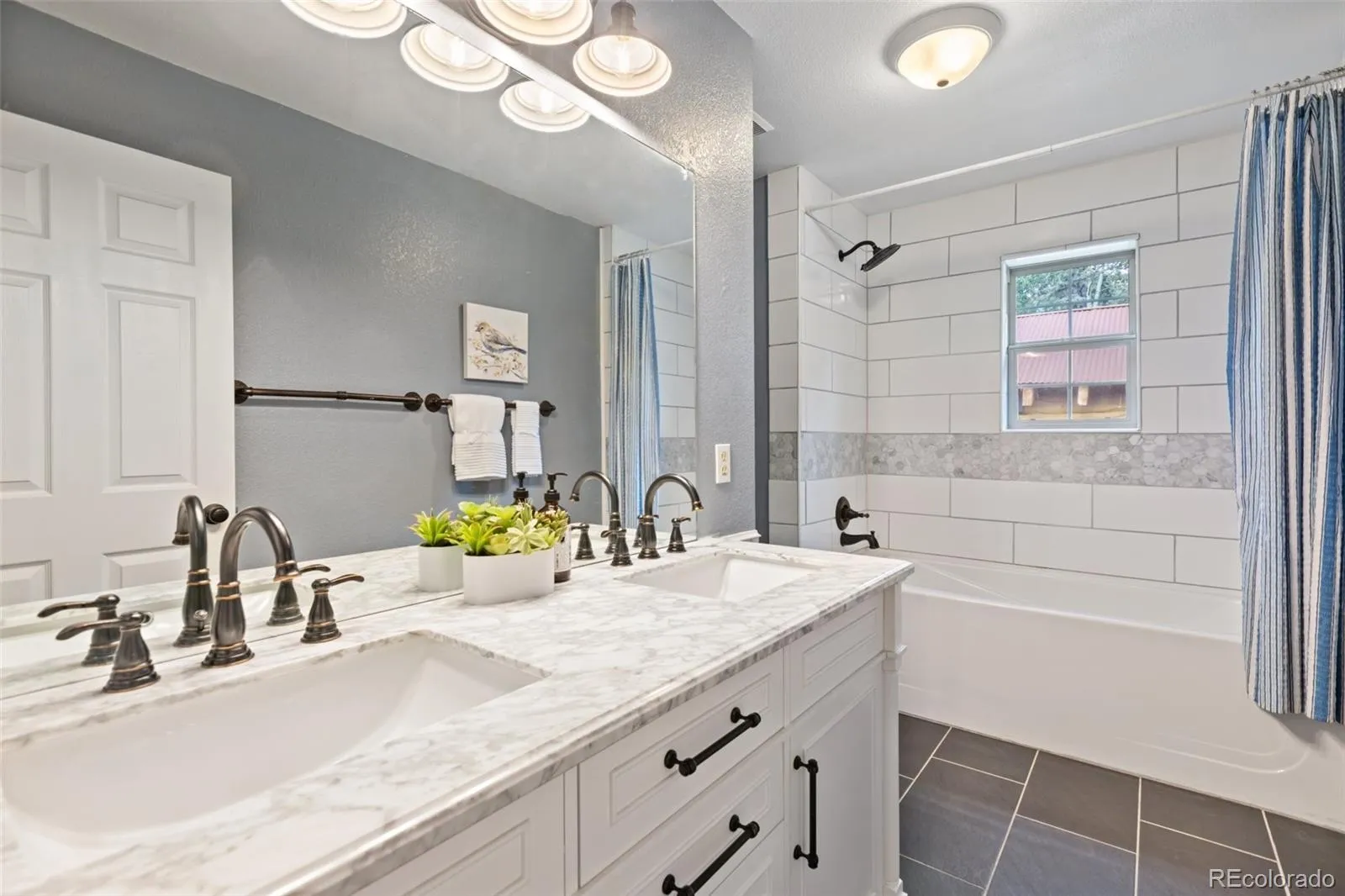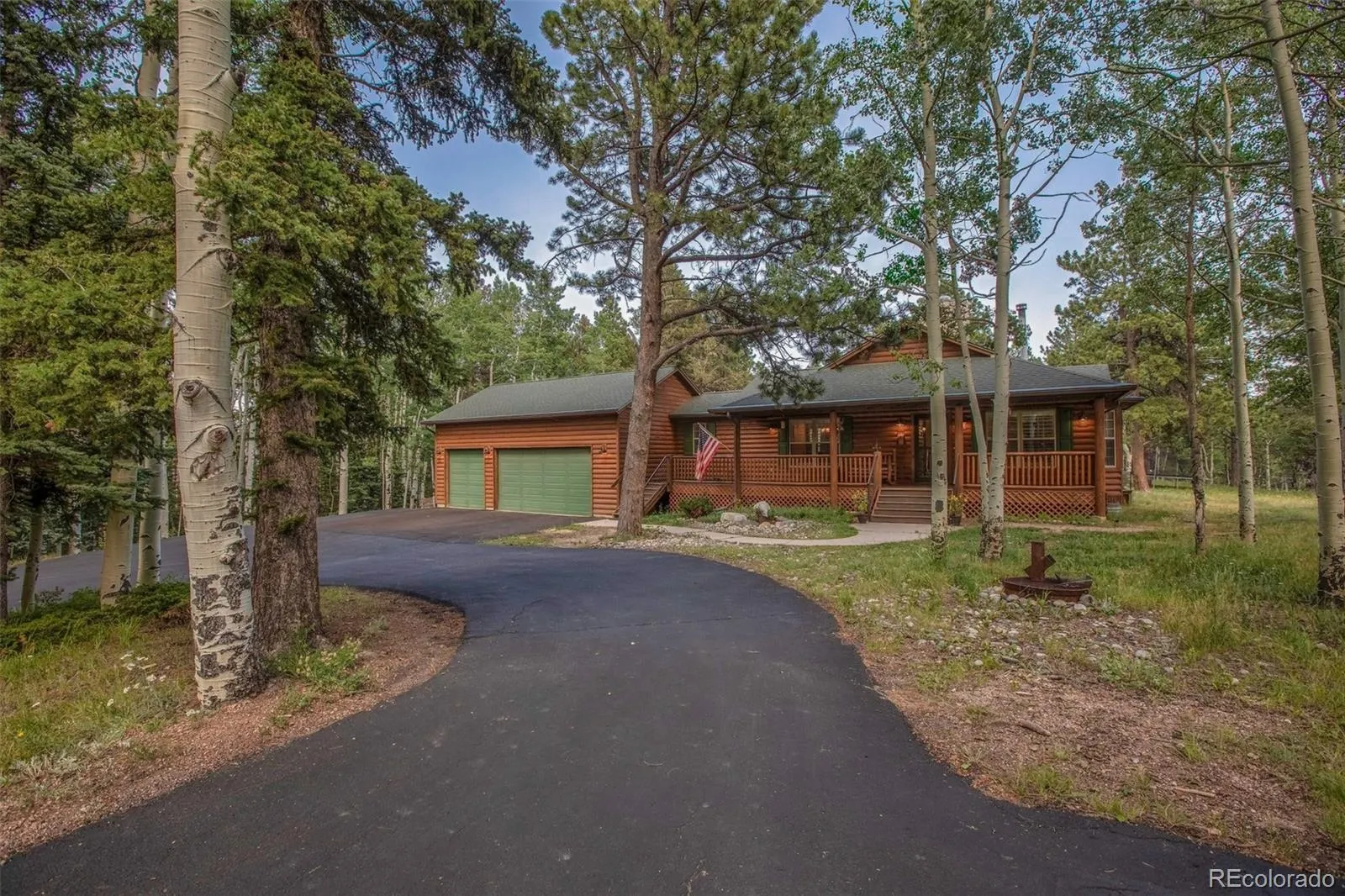 Private 8.5 acre mountain preserve on an idyllic setting of aspen trees, views of Pikes Peak, usable acreage with a blacktop driveway! Rustic mountain home completely remodeled including covered front deck, with new features including: Hickory hardwood flooring on the main level; custom plantation blinds throughout; new Hickory cabinetry and granite countertops + butcher block island, farm sink and new stainless steel appliances. Living area features a Jotul wood-burning stove, views overlooking Pikes Peak to the Southeast; main level laundry along w/ a Butler pantry; dog shower and a large doggie door; Main level owners suite also includes Hickory flooring, adjacent the remodeled primary bathroom with double vanity, jetted tub, a walk-in steam shower with dual shower heads, + a walk-in closet. 3 additional main level bedrooms w/ newer carpeting, in addition to a remodeled full bath. The lower level includes 9 ft. ceilings, a comfortable family room includes a corner gas fireplace, an adjacent office space, in addition to a non-conforming bedroom. Wonderful unfinished storage area/exercise room also equipped with a “safe” room or possible wine cellar. There is an expansive back yard deck, great for entertaining, and freshly stained; additionally, a custom-built pavilion on a concrete pad w/ a freestanding fireplace and 6 person hot tub. Fenced in yard for pets too! Mechanical updates include a new furnace in 2023, all natural gas appliances. Wander the trail system on the property to find an insulated treehouse and riding track for the kids! Parcel has no covenants or HOA, and includes an excellent 4 gpm well!