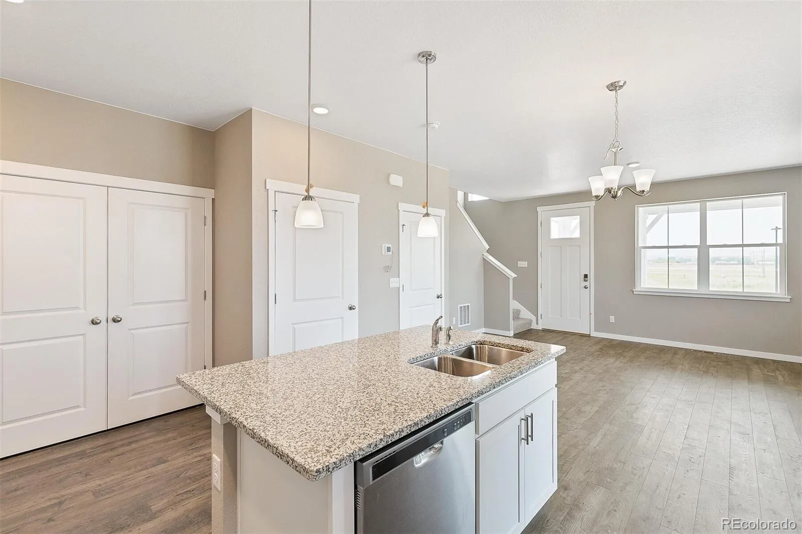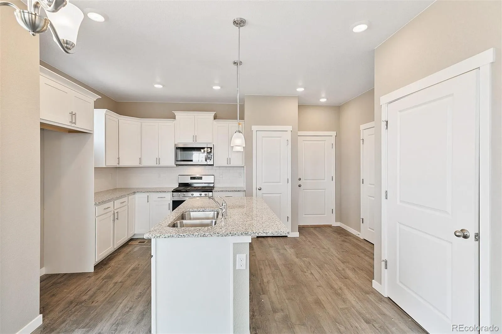 This thoughtfully designed 3-bedroom, 2.5-bath home offers 1,503 square feet of comfortable living space with an oversized two-car garage for added storage. As you enter from the spacious covered front porch, you’re welcomed into a bright, open-concept main level. The living area flows into a dining nook near the kitchen, which features a center island with sink, pantry access from the garage entry, and a conveniently placed mechanical room. A main-level powder bath and coat closet add everyday functionality. Upstairs, you’ll find a dedicated laundry room, a linen closet, and two generously sized secondary bedrooms, both with walk-in closets. These bedrooms share a full bath with a relaxing soaker tub. The private en-suite primary bedroom includes dual vanity sinks, a stand-up shower, and a spacious walk-in closet. This home comes fully loaded with modern and energy-efficient features: a tankless water heater, radon mitigation system, perimeter sump pump, central air conditioning, and an EV charging station in the garage. Includes our Smart Home package featuring a video doorbell, smart thermostat, keyless smart locks, smart light switches, and hands-free front door entry. Located in Settlers Crossing, this community offers walking trails, a neighborhood park, planned community events, and convenient access to Denver International Airport, shopping, and dining. ***Estimated Delivery Date:January. Photos are representative and not of actual property***