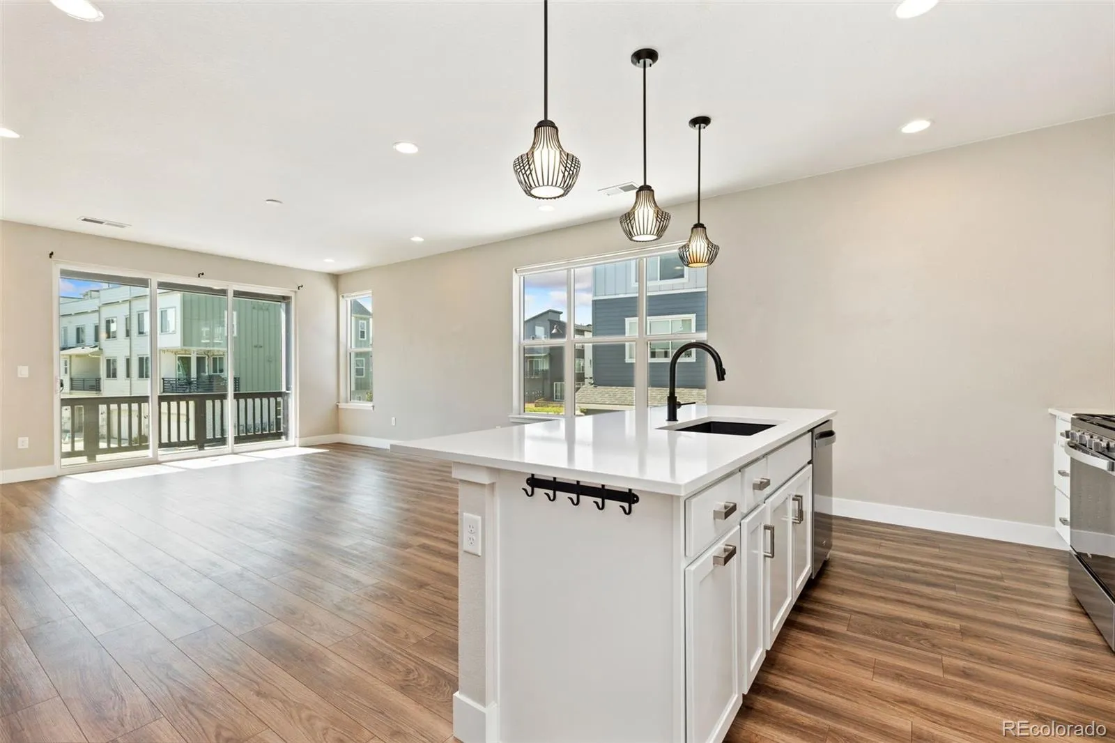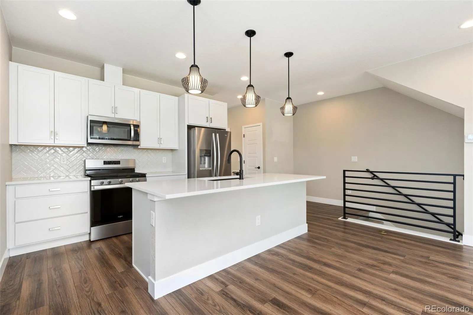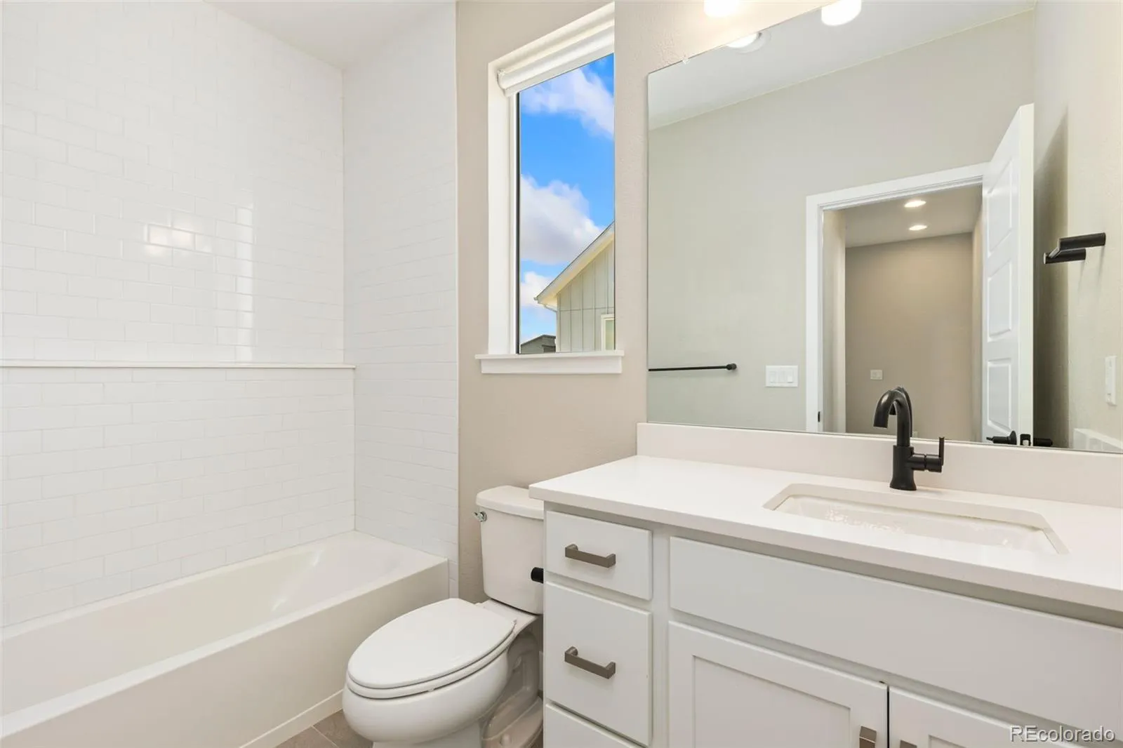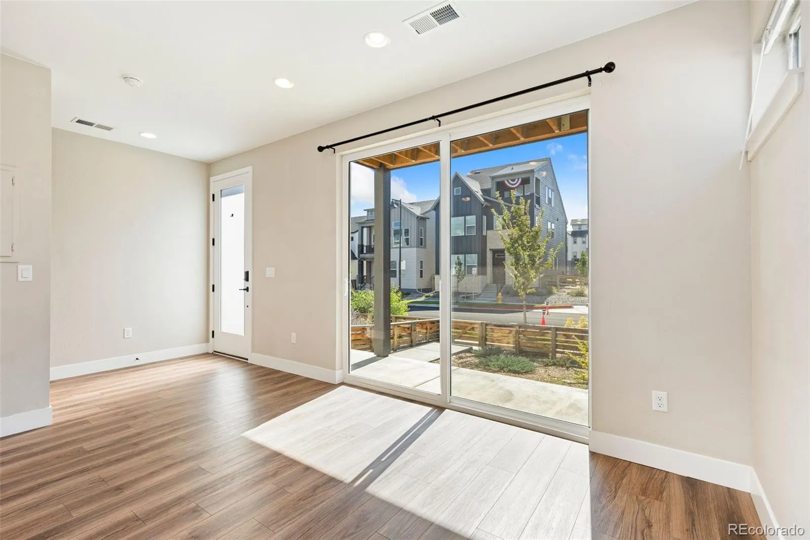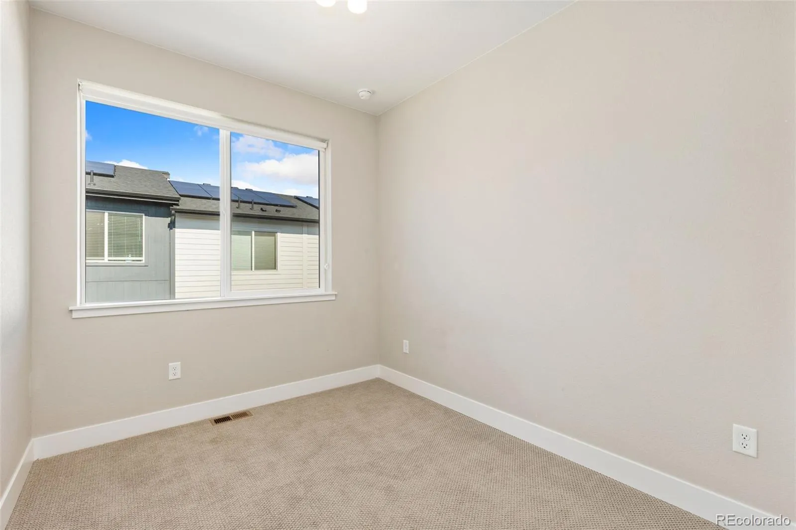 The main living area features a bright, open-concept design where the kitchen, dining, and living spaces flow effortlessly together—perfect for entertaining or casual everyday living. The kitchen includes a spacious island and high-end finishes, while the living room opens to a private balcony, offering the ideal spot to soak in Colorado’s beautiful weather. Upstairs, you’ll find the primary bedroom with attached bathroom and walk-in closet. The two additional bedrooms and a shared bathroom completes the upper floor providing both comfort. A conveniently located laundry area adds extra functionality. The solar panels boosts energy efficiency and reducing utility costs.