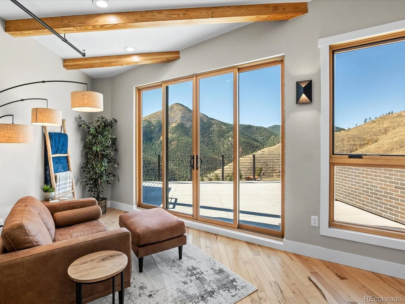 This architectural masterpiece offers a private, modern retreat that feels a world away, yet is just minutes from town. Built into the landscape, the home commands breathtaking and panoramic views from every window as well as two expansive outdoor living spaces. Inside, this fully furnished property is a sanctuary of luxury, featuring custom European cabinetry, upscale stainless steel appliances, quartz countertops and open floorplan. Serene living anchored by a heart of the house kitchen and sweeping views from the floor to ceiling windows. It truly feels like you are outside even while cooking dinner or enjoying morning coffee. Tastefully designed to showcase the stunning views in every single room. The main floor primary suite provides a personal escape with a large walk in closet, stunning 5 pc bath with freestanding tub, spa like shower and custom tile accents. Expansive wide plank hickory wood floors throughout and a grand staircase that leads you to a phenomenal upper level featuring two additional bedrooms, an office area and upper level family room with a wet bar designed to soak up the views. Gorgeous rooftop deck providing unbelievable picture perfect livable art of Four Mile Canyon and Sugar Loaf Mountain. Set on 2.46 acres this property is private, has stunning views, is close to Downtown Boulder and provides ample opportunity for hiking, biking and simple yet pure enjoyment of Colorado Mountain living. This is more than a home—it’s an unparalleled lifestyle opportunity. Work from home? No problem…fast internet speeds and wonderful work areas will make working from home a dream come true. Commute to Boulder? No problem…..a quick 11 mile drive to the heart of Boulder. Looking for a second home?…Close proximity to the metro area yet close proximity to Boulder activities make this the perfect option for an escape from reality. Steps from hiking trails and close to Four Mile Creek, Just one mile up from scenic Four Mile Canyon Drive.