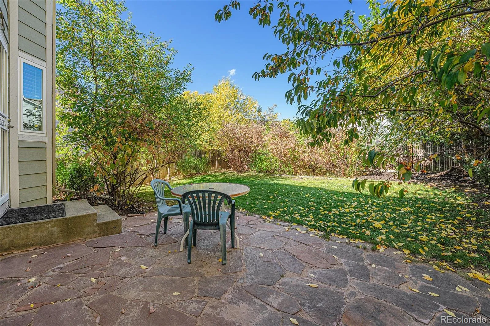 Charming cozy mature landscaping is welcoming you to have a glass of wine outside and enjoy the Colorado weather.