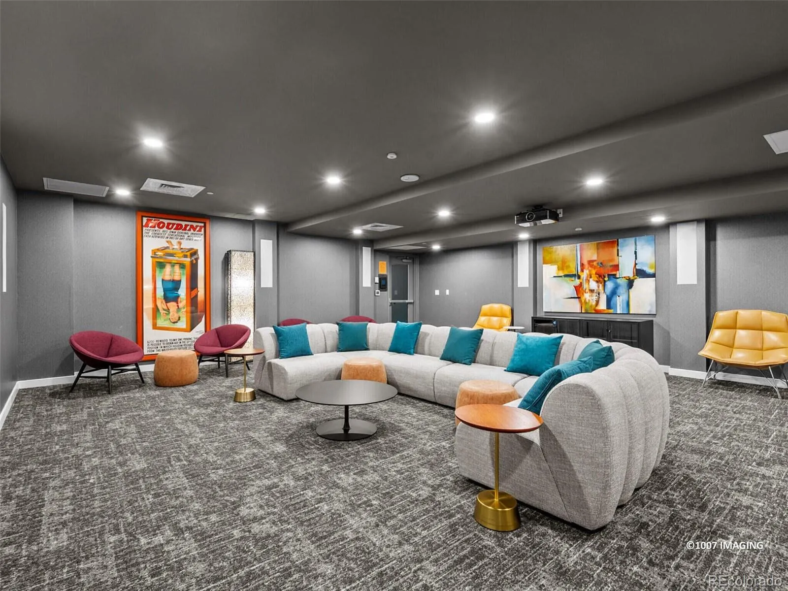 SPIRE CORNER RESIDENCE WITH SPECTACULAR VIEWS! Come home to this contemporary condo perched 17 stories above Downtown Denver and be greeted by floor-to-ceiling windows that wrap around the residence and frame jaw-dropping views of the majestic Rocky Mountains, Mile High Stadium, the Downtown Denver skyline, Elitch Gardens, and beyond! Those floor-to-ceiling windows drench this home in natural light and shine onto newly-replaced hardwood flooring! The loft-style wide-open floor plan includes 1,639 square feet of living area with 2 bedrooms, each with its own ensuite bathroom, newer cozy carpeting & motorized shades throughout. Primary bedroom features a custom closet system. The 2nd bedroom has a built-in Murphy Bed–great to also serve as a quiet workspace. The chef’s kitchen boasts granite countertops, stainless steel appliances, and a large island. Adjacent to the kitchen is a bonus room that works well as a media room, dining room, den, or a work-from-home space. After a long day, unwind with a glass of prosecco on your private balcony and take advantage of our Colorado climate as the sun sets behind the Rocky Mountains and the weather moves in from the West. View this home again at night to appreciate the views! Also included: 2 parking spaces & 1 storage space in the attached garage. Immerse yourself in the vibrant SPIRE community, complete with LEED certification, a pool, hot tub, health club, multimedia lounge, and theater. Your dog will love the dedicated dog park, and the grilling area is perfect for entertaining. Benefit from 24-hour courtesy desk service, guest suites, and a modern access control system. SPIRE has super-fast internet-1 gig dedicated to each condo, along with DirecTV HD-DVR with HBO, Showtime + Cinemax. Very well-maintained building. SPIRE is in the heart of downtown, surrounded by the very best restaurants and a mere stroll to the performance venues and sports arenas. Embrace the downtown lifestyle and make this SPIRE residence your own.