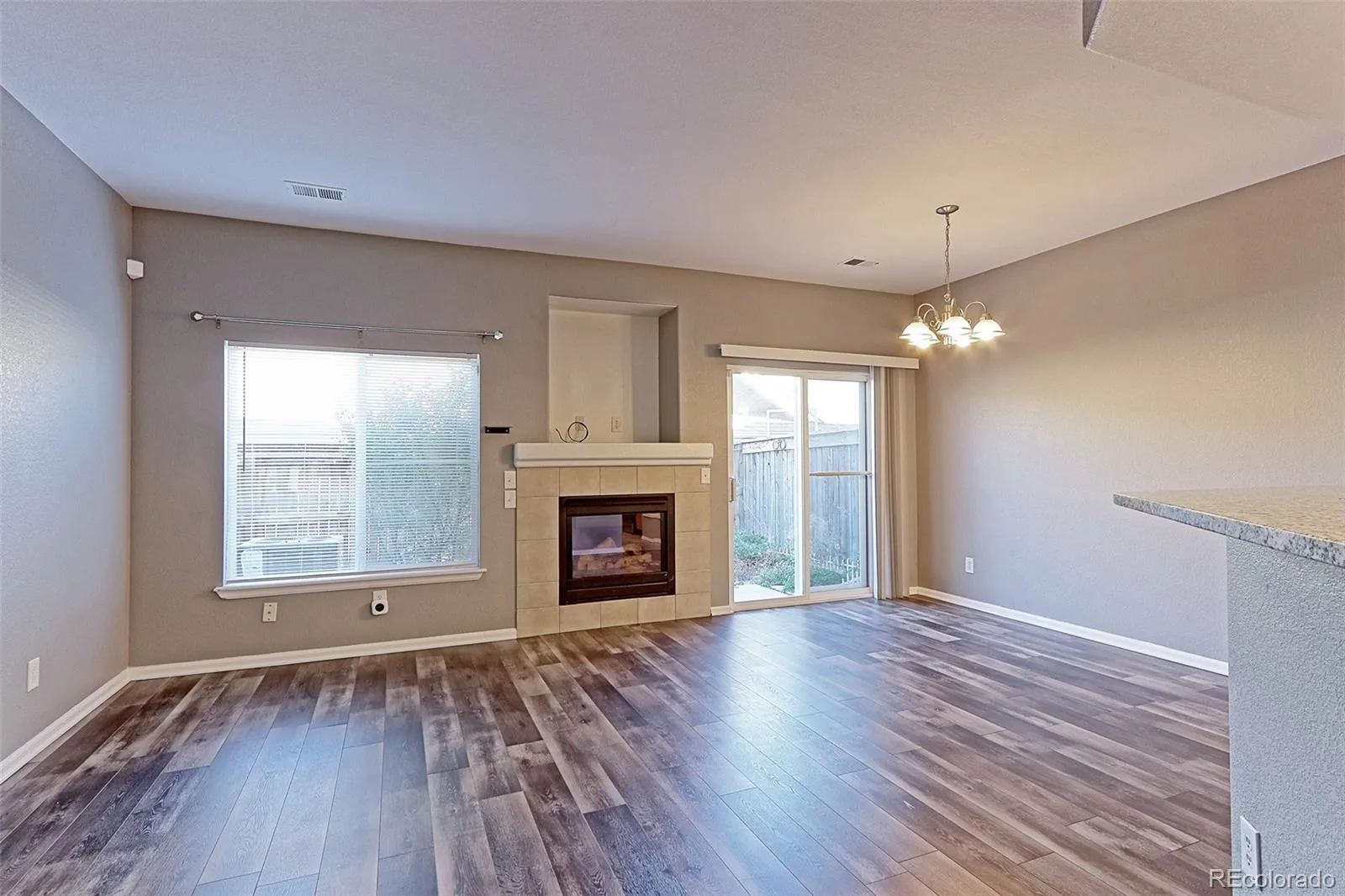 This 3-bedroom, 2.5-bath townhome overlooks a massive park, offering open views and easy access to green space right outside your front door! The kitchen features granite countertops, tile flooring, a pantry, and stainless steel appliances including a refrigerator, range, microwave, and dishwasher. Granite continues in all bathrooms, with tile flooring in the guest bath. Laminate flooring runs through the entry, dining, and living areas, where a gas fireplace adds comfort. The home also includes an enclosed backyard, a covered front porch, and one reserved parking spot. Conveniently located near shopping, restaurants, and with easy access to DIA, Denver, and E-470, this townhome combines everyday convenience with a rare park-side setting.
