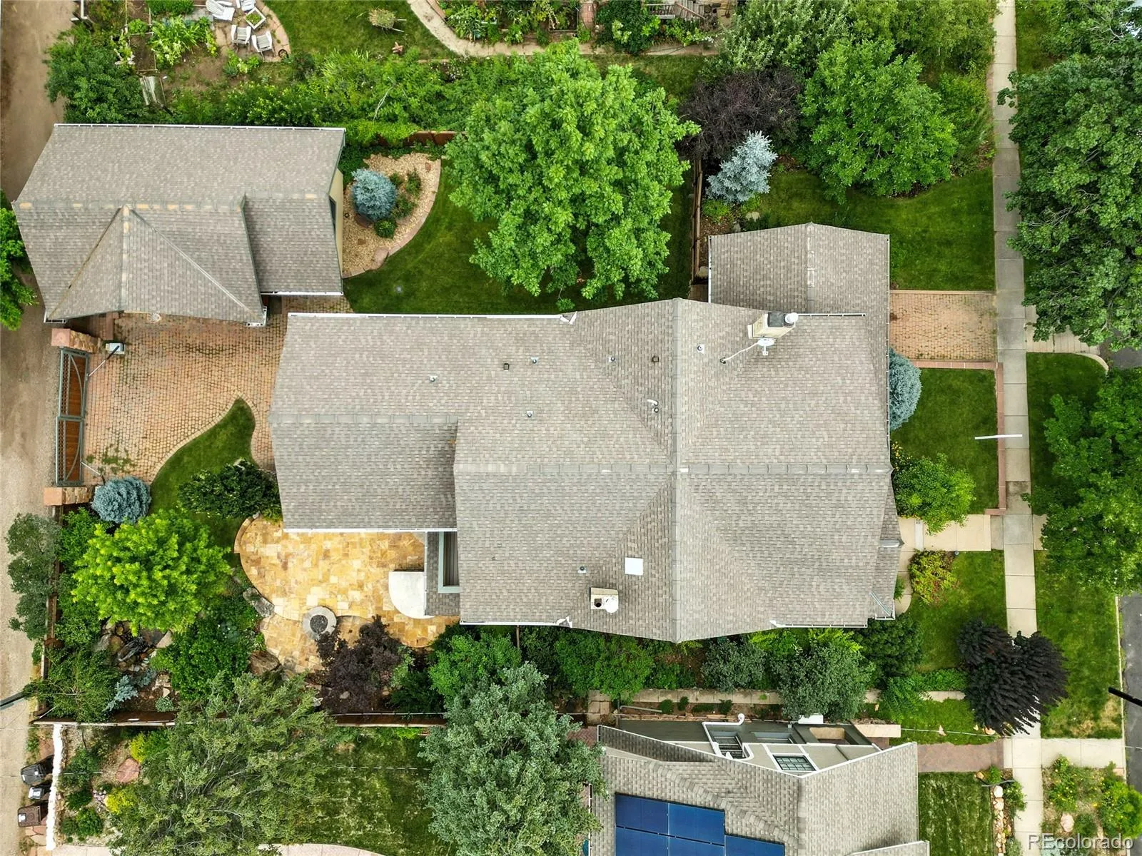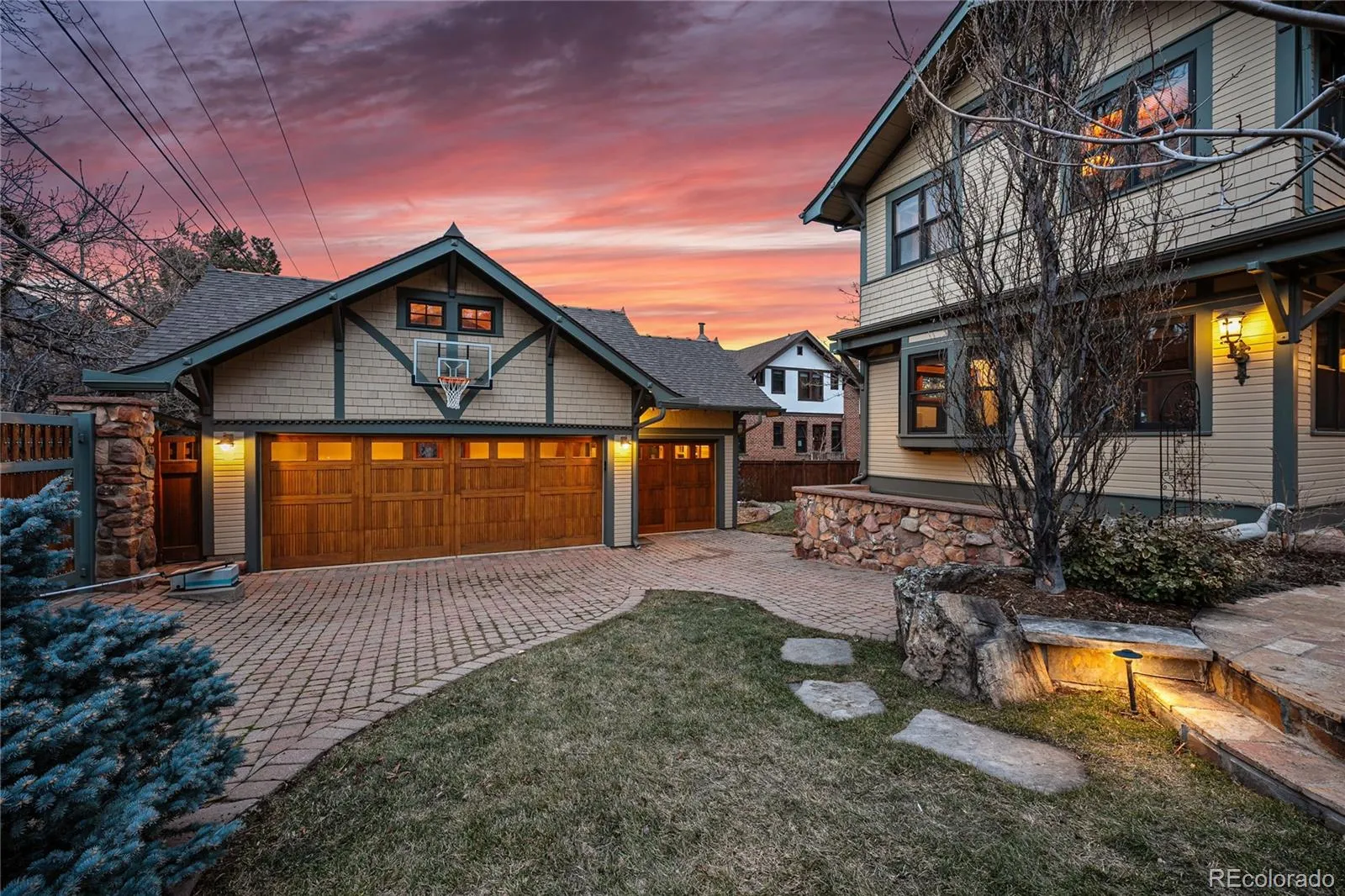 Set on a spacious triple lot with stunning Flatiron views, this 5,053 SF home perfectly blends historic architecture with sophisticated modern upgrades-offering the best of both worlds in one of Boulder’s most walkable, scenic locations.Inside, original details like beamed ceilings, bay windows, hardwood floors, and a wood-burning fireplace pair effortlessly with updated kitchens and bathrooms for contemporary comfort. The heart of the home is the spacious living room, which opens directly to a west-facing backyard oasis-ideal for entertaining-with a built-in gas grill, outdoor bar, fire pit, and stone patio.The chef’s kitchen features a breakfast nook, a butler’s pantry, and seamless flow to the main living areas. Upstairs, find four light-filled bedrooms, including a private primary suite with in-room laundry. The finished attic offers flexible space with a cedar closet, built-ins, and a partially finished craft area. On the lower level, a separate guest retreat includes a bedroom, full bath, kitchenette, and gas fireplace-plus a speakeasy-style media room with exposed stone and a private entrance. Step outside to enjoy a beautifully landscaped backyard with mature trees, a water feature, basketball court, and multiple entertaining zones. The gated courtyard leads to a detached three-car garage with potential for flex space above, plus a porte-cochere and additional off-street parking. The electric gate for garage access from back alley, off street parking in front. Convenient location just minutes from CU Boulder, Chautauqua Park, downtown restaurants, and future Sundance Film Festival venues. Easy access to US-36, Hwy 93, and Denver International Airport. Blueprints and surveys from the 2000 renovation available upon request. Additional seasonal photos and more interiors available in Media.