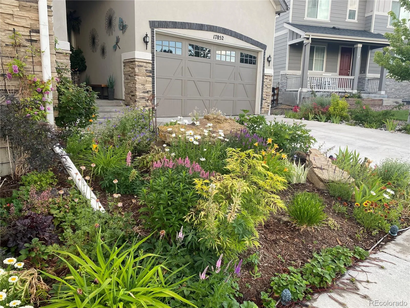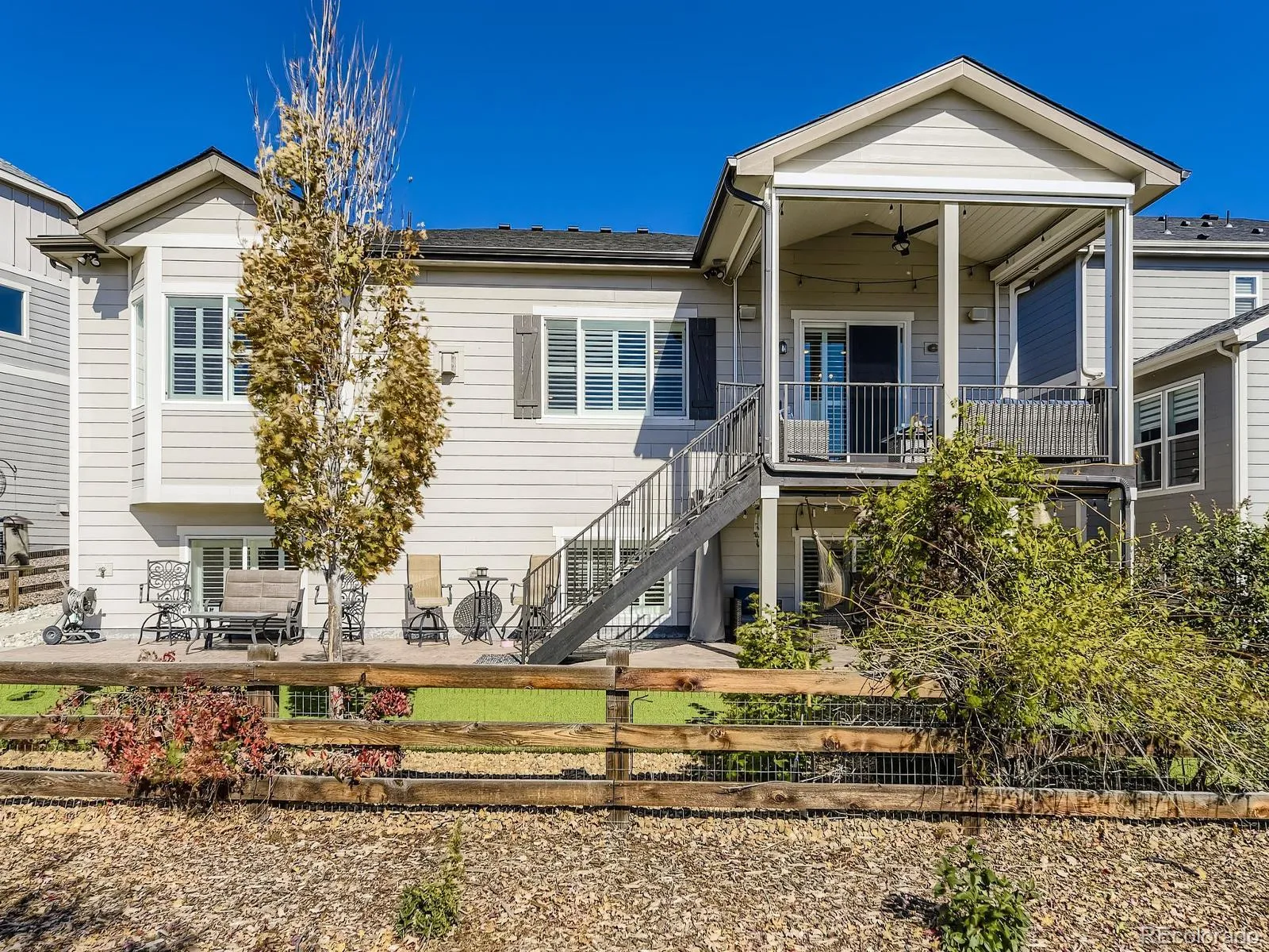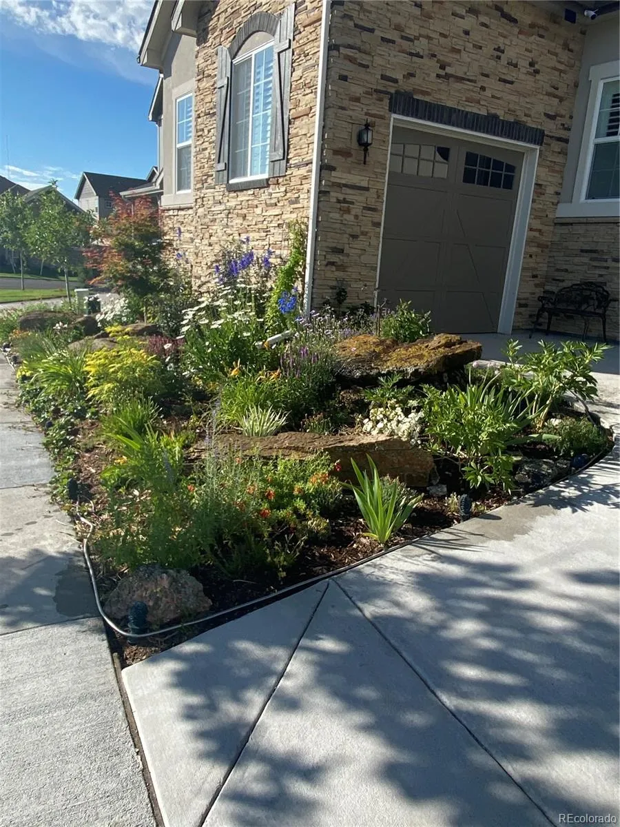 This captivating ranch-style home is located in Overlook at Cherry Creek with over 3600 sf finished. The upgrades in this home are unbelievable. As you enter the home the high ceilings and neutral paint make for a grand entrance to the large great room. Gas Fireplace, tiled floors, plantation shutters throughout home including garages. Tons of cabinetry, granite counter tops. SS appliances, gas stove, large walk-in pantry. Also, a tech area with lots of cabinetry and Corian countertops. Audio system throughout the home. The primary bedroom is large with built in dresser/cabinets. Large 5-piece master bathroom with a huge walk-in closet. The study has French doors with a wall of built in shelves. Two more large bedrooms, full bathroom and large laundry room (washer/dryer included). The Basement, WOW, over 1300 sf finished. A must see this incredible custom Bar with floating LED shelves, LED under bar and in ceiling, double drawer dishwasher, oven, 3 tap kegerator, ice maker, 2 under counter fridges, custom lighting over the bar. Large workout room equipment will stay. Dart board area. Shuffleboard included. mounted TV. The wine cellar, WOW, custom 547+ wine rack, all furniture stays in wine room. Custom angled track and swivel barn door heading to upper level. One more large bedroom and full bathroom in garden level basement. Over 1000 unfinished area in basement. Two car garage with custom floor coating, plantation shutters and third car garage with custom floor coating and plantation shutters. You must see the outdoor back custom covered deck with Trex flooring, with custom electric 3-sided blinds floor to ceiling, dry below deck so you can sit below, back yard is turf dog friendly. Front yard is xeriscape. Culligan water softener, Radon installed. New roof 2022 when deck was done. Super close to all that Downtown Parker has to offer. Great location to view 4th of July fireworks. Closet access to I25/470.