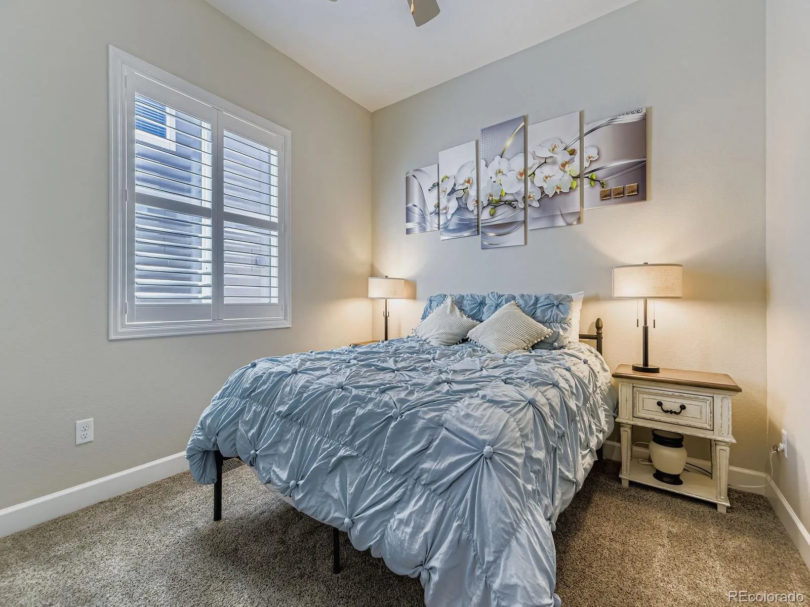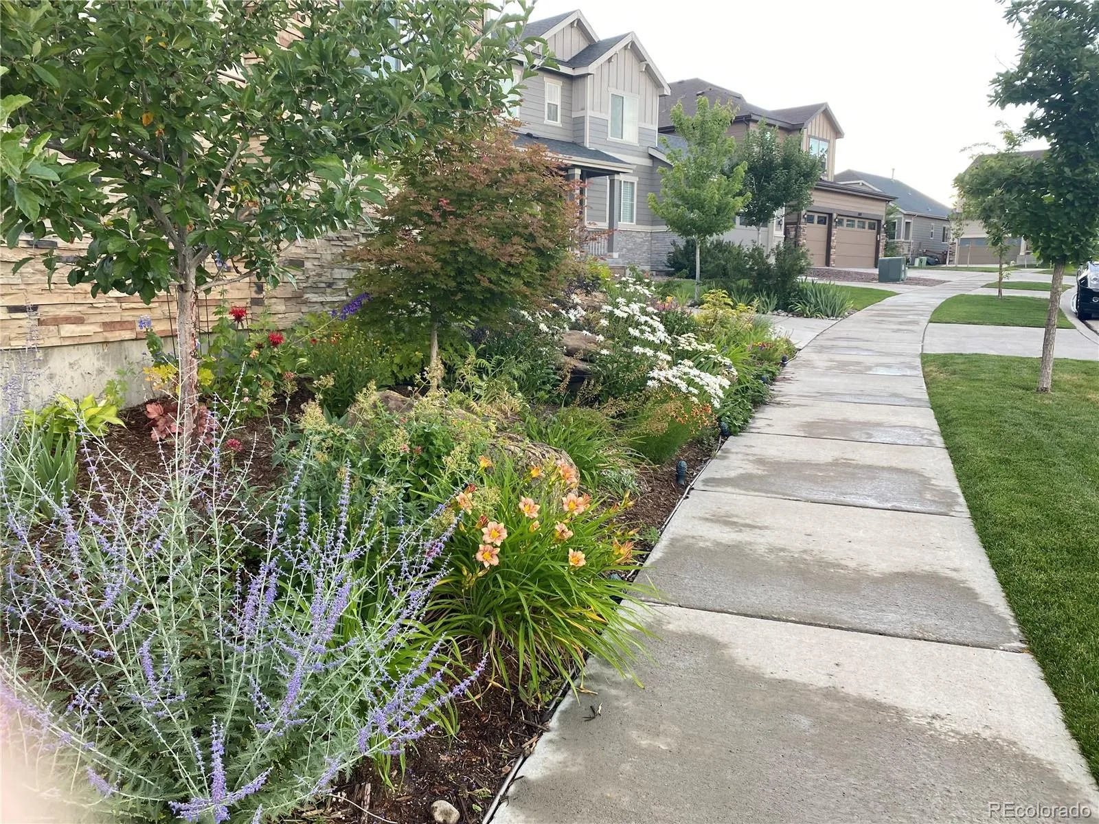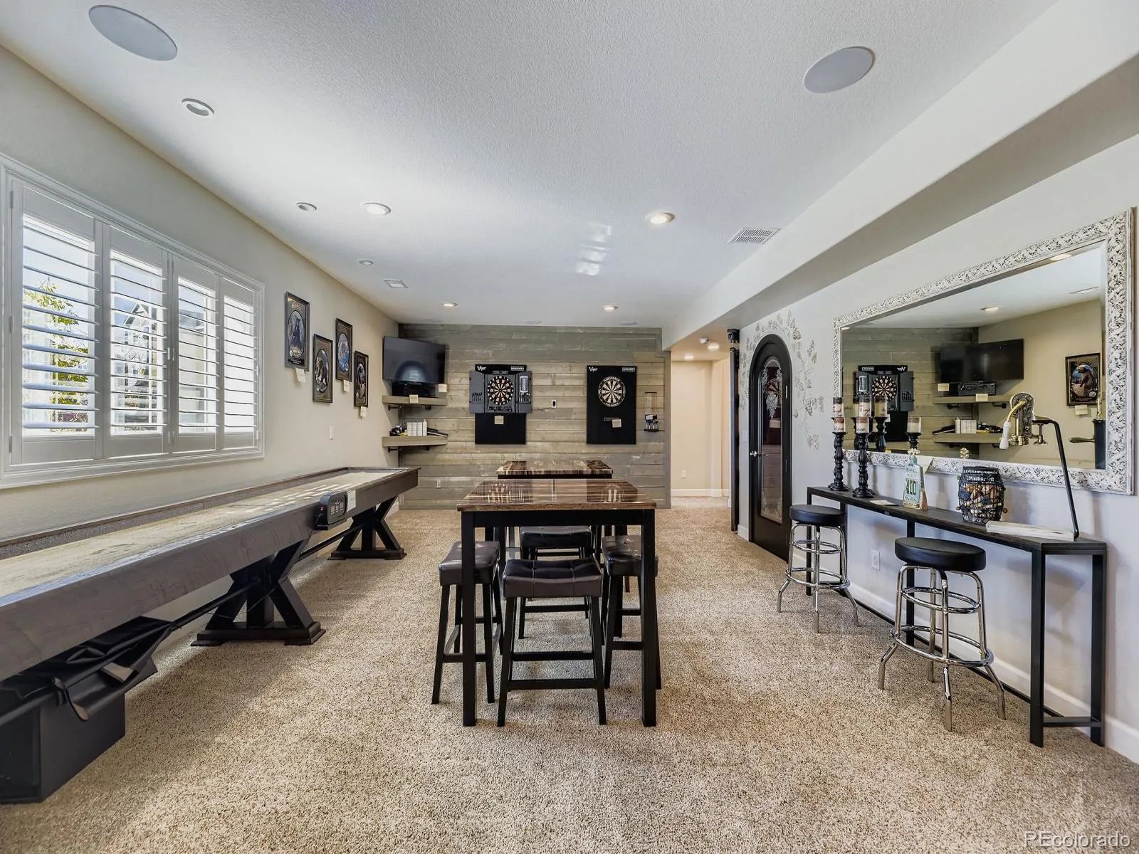 This captivating ranch-style home is located in Overlook at Cherry Creek with over 3600 sf finished. The upgrades in this home are unbelievable. As you enter the home the high ceilings and neutral paint make for a grand entrance to the large great room. Gas Fireplace, tiled floors, plantation shutters throughout home including garages. Tons of cabinetry, granite counter tops. SS appliances, gas stove, large walk-in pantry. Also, a tech area with lots of cabinetry and Corian countertops. Audio system throughout the home. The primary bedroom is large with built in dresser/cabinets. Large 5-piece master bathroom with a huge walk-in closet. The study has French doors with a wall of built in shelves. Two more large bedrooms, full bathroom and large laundry room (washer/dryer included). The Basement, WOW, over 1300 sf finished. A must see this incredible custom Bar with floating LED shelves, LED under bar and in ceiling, double drawer dishwasher, oven, 3 tap kegerator, ice maker, 2 under counter fridges, custom lighting over the bar. Large workout room equipment will stay. Dart board area. Shuffleboard included. mounted TV. The wine cellar, WOW, custom 547+ wine rack, all furniture stays in wine room. Custom angled track and swivel barn door heading to upper level. One more large bedroom and full bathroom in garden level basement. Over 1000 unfinished area in basement. Two car garage with custom floor coating, plantation shutters and third car garage with custom floor coating and plantation shutters. You must see the outdoor back custom covered deck with Trex flooring, with custom electric 3-sided blinds floor to ceiling, dry below deck so you can sit below, back yard is turf dog friendly. Front yard is xeriscape. Culligan water softener, Radon installed. New roof 2022 when deck was done. Super close to all that Downtown Parker has to offer. Great location to view 4th of July fireworks. Closet access to I25/470.