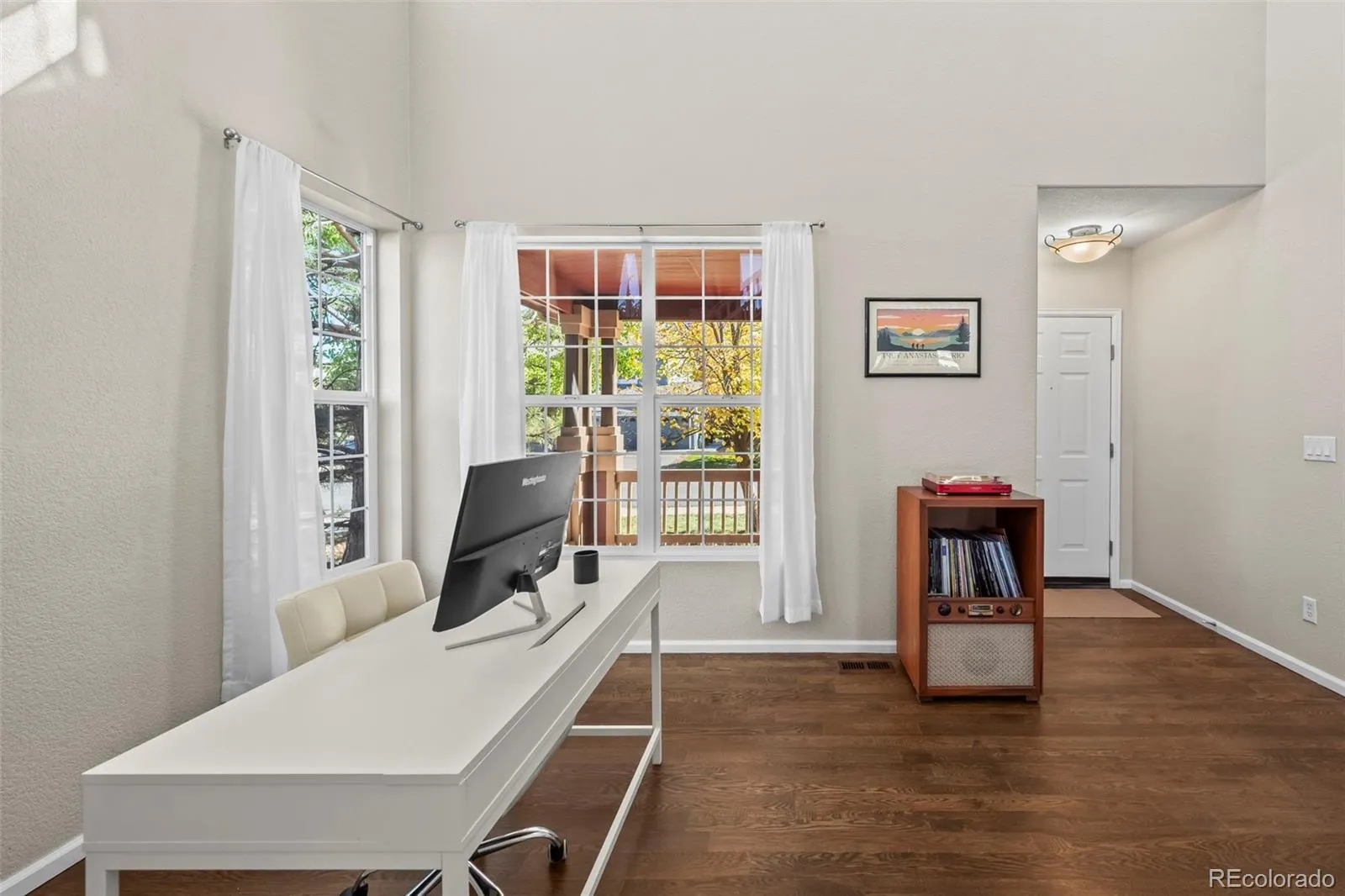 Enjoy breathtaking, unobstructed MOUNTAIN VIEWS from this beautifully updated home in Roxborough Village. Soaring vaulted ceilings, tall windows, and an open floor plan fill the home with natural light and frame the incredible backdrop of Colorado’s Front Range. The main-level living room features a gas fireplace, custom built-ins, and expansive windows showcasing the mountain views, seamlessly connecting to the updated kitchen with newer stainless steel appliances, a kitchen island, and ample counter and storage space, including a large pantry. From the kitchen, step out to the spacious west-facing deck to take in the sunset over the mountains and enjoy true indoor/outdoor living. The front room—currently used as an office—offers flexible space and would make an ideal formal dining room. The main level also includes a powder bath, a large laundry room, and an attached two-car garage. Upstairs, the primary suite captures stunning mountain views and features a en suite bath and large walk-in closet. Two additional bedrooms and a full bath complete the upper level. Ideally located near open space and scenic trails, including Crystal Lake, Roxborough State Park, and the Arrowhead Golf Course, this home offers the best of Colorado living. Shops, restaurants, and groceries are all within walking distance. Don’t miss this opportunity to own a home with unbeatable views and an incredible lifestyle!