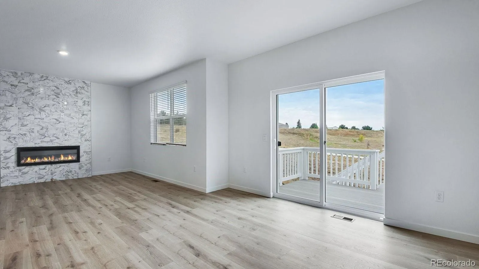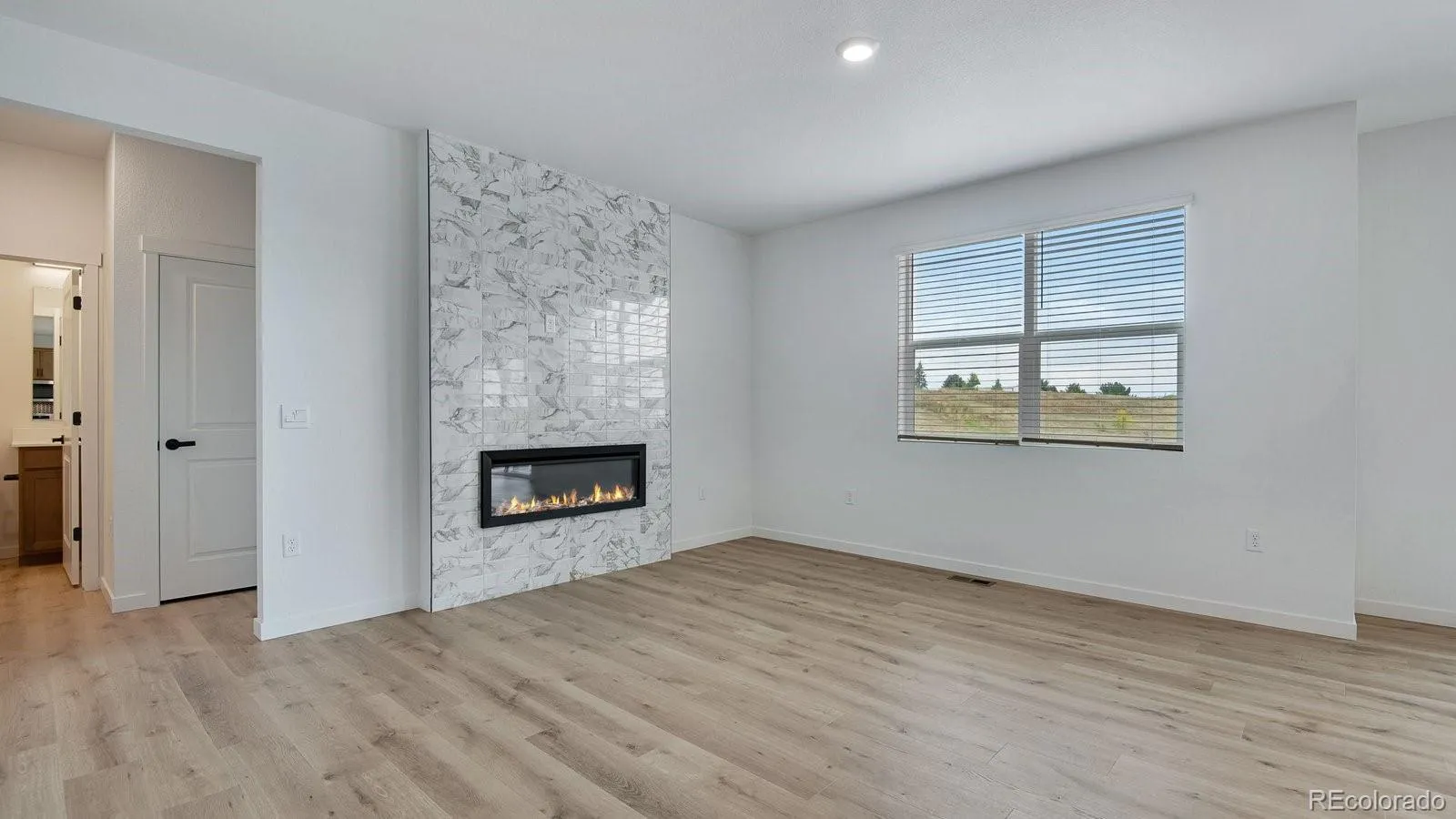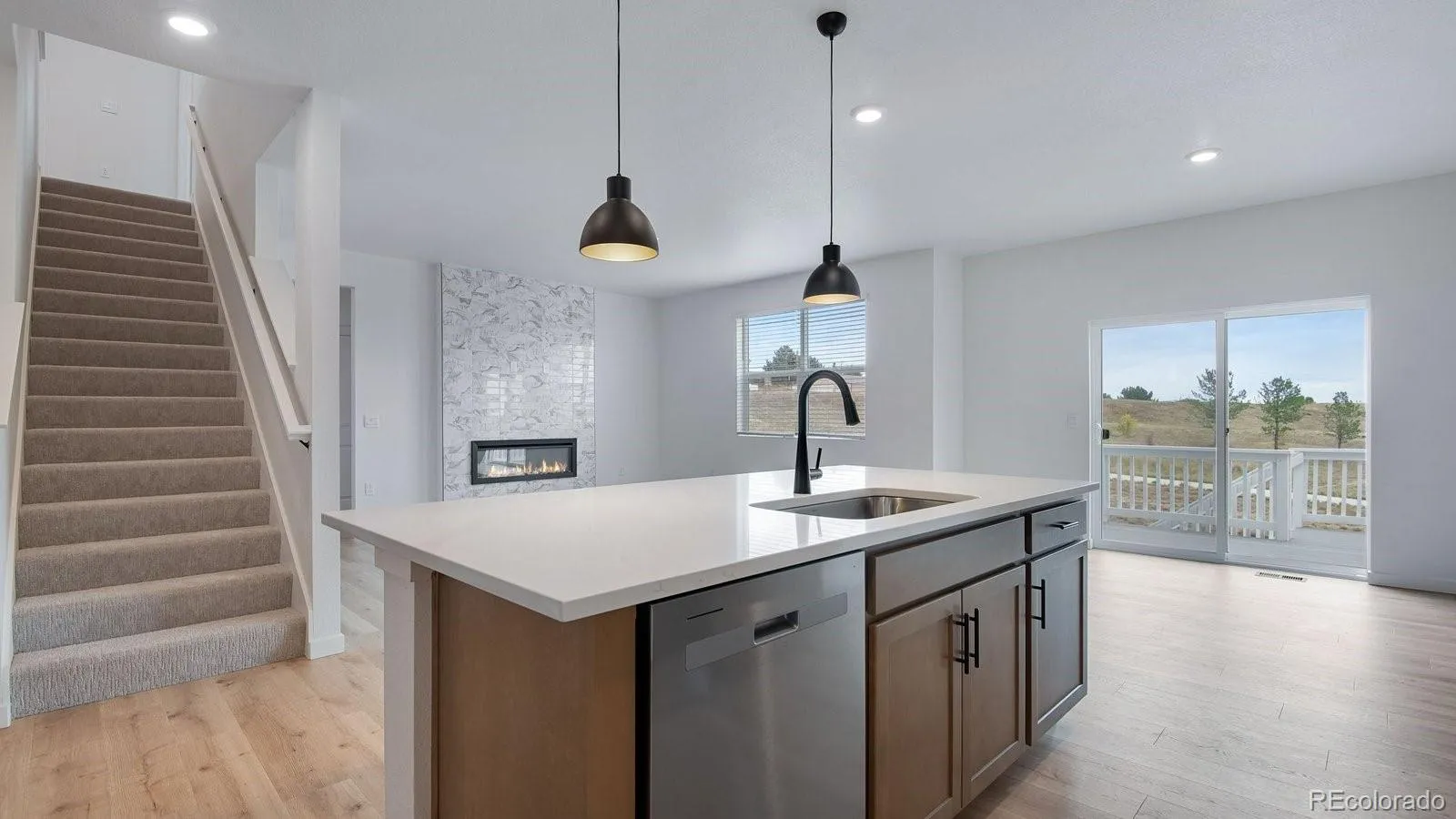 Welcome to this stunning two-story home, ideally situated on a corner home-site. This open layout provides a seamless flow throughout the main floor, starting with a covered front porch welcoming you in with a den or flex space. The spacious main level features a bedroom, perfect for guests or multi-generational living. Beautiful designer finishes throughout the home create an inviting, modern atmosphere, including laminate flooring that flows throughout most of the main floor. The functional kitchen is a true highlight, featuring white cabinetry with sleek hardware, stunning quartz counter tops, and a large kitchen island – perfect for meal prep or casual dining. The adjacent walk-in pantry offers plenty of storage space. The great room, with its contemporary fireplace and impressive floor-to-ceiling tile, creates a perfect spot to relax or entertain. On the upper level, you will find the luxurious primary suite, complete with an attached bath that includes a raised vanity and quartz counter tops. Spacious secondary bedrooms offer ample closet space, while the loft provides additional room for relaxation or activities. The upper-level laundry is both convenient and functional. Enjoy outdoor living with a covered front and rear porch – ideal for relaxing or hosting guests. This home is within walking distance to community amenities such as a pool, tennis and pickle ball courts, a playground, a basketball court, disc golf, and a recreation field. The home is also equipped with a smart home package, ensuring convenience and connectivity. Don’t miss the opportunity to own this exceptional home! Estimated delivery January 2026 **photos are not of actual home**