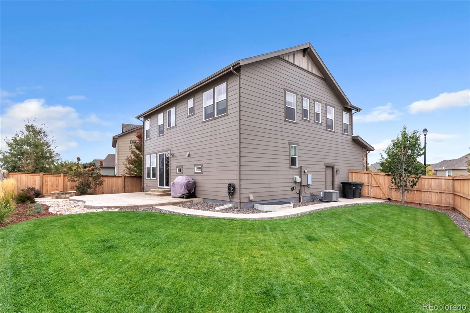 Gorgeous 2018 build in Cundall Farms, blending open floor plan ease with thoughtful upgrades. Inside, 9′ ceilings frame an inviting living room with cozy fireplace and dining area, as well as a main-level office with French doors and a powder bath. The gourmet kitchen is the heart of the home with an oversized island, farm sink, quartz countertops, stainless appliances including double ovens and a gas cooktop, upgraded soft-close cabinetry with pullouts and a massive walk-in pantry. Upstairs, a versatile loft features a second living area, office or playroom. The spacious primary suite features a five-piece bath with soaking tub, plus two additional bedrooms served by a full hall bath. A convenient upstairs laundry (washer/dryer included) rounds out the upper level. An oversized 2-car garage with 8′ door opens to a custom interior mudroom. Outside, the large private yard has a great grassy area and a beautiful stamped-concrete patio and built-in fire pit. The home features smart, efficient systems including a smart thermostat, high-efficiency furnace, CAT 6 ethernet wiring throughout, A/C, and a 50-gallon water heater. Additionally, roof was replaced in 2022. Love where you live and stroll to nearby parks, playgrounds, and trails.