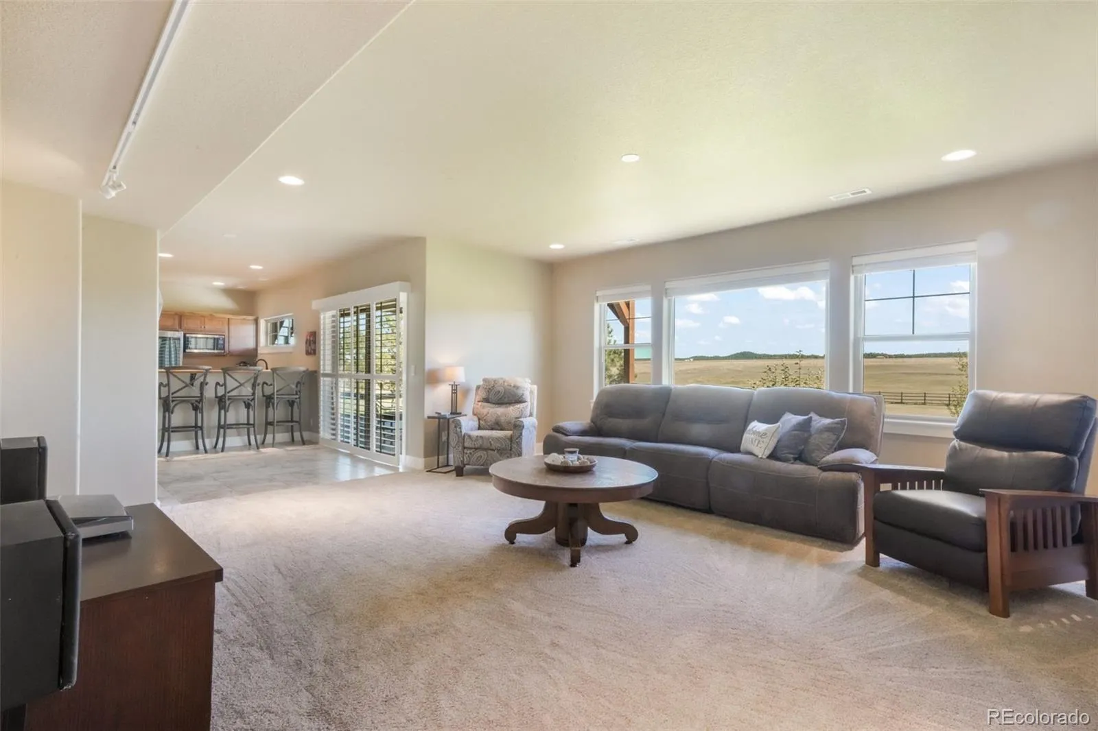 Beautifully Maintained Custom Home in Cherry Springs Ranch on Just Over 2.5 Acres! This exceptional ranch-style home offers over 4,000 sq. ft. of living space with 5 beds and 4.5 baths, perfectly designed for multigenerational living. Nestled on a picturesque 2.5-acre lot backing to private grazing land, the property captures the peaceful charm of country life — friendly cows often wander up to the back fence, adding to the tranquil setting. The stucco and stone exterior with covered front entry and double wood doors opens to a bright, open layout featuring hardwood floors throughout the main level. The gourmet kitchen boasts knotty alder cabinetry, granite countertops, stainless steel appliances, gas cooktop, vent hood, tile backsplash, and large island overlooking the backyard. A spacious walk-in pantry and mudroom with sink, window, and built-ins offer added convenience. The living room centers around a stunning stone gas fireplace with wood mantle. The luxurious primary suite features abundant natural light, a spa-like bath with soaking tub, walk-in tile shower, dual granite vanities, and a custom closet. A secondary main-level bedroom with walk-in closet and private bath provides flexibility for guests or extended family. The finished walkout basement expands the living space with a large rec room, full bar/kitchenette with sink and pantry, two generous bedrooms with shared double-vanity bath, and an additional en-suite bedroom. Additional highlights include a half bath, large storage room, dual water heaters, AC, humidifier, paid off solar panels and oversized finished garage with natural light and storage. Outdoor living shines on the composite, partially covered deck overlooking the manicured backyard. Blending craftsmanship, comfort, and modern amenities in a peaceful open-space setting, this home offers the perfect balance of serenity and accessibility — just minutes from downtown Monument and Highway 83, with easy access to Denver and Colorado Springs.