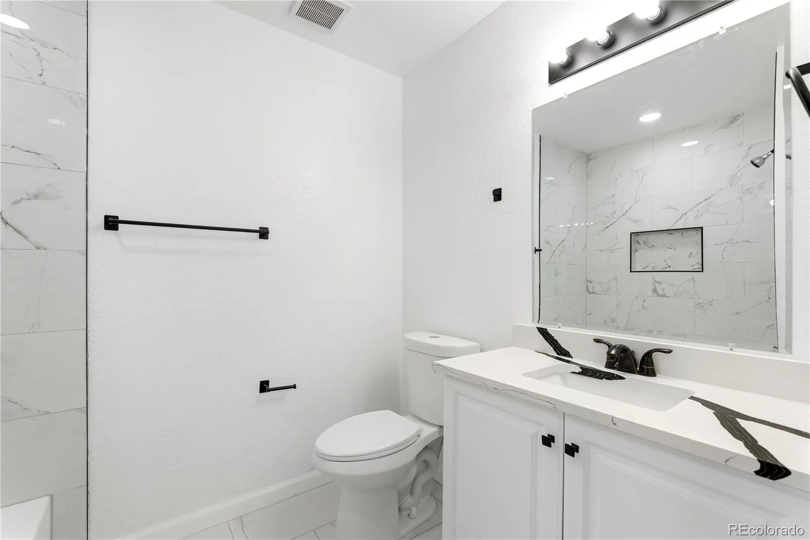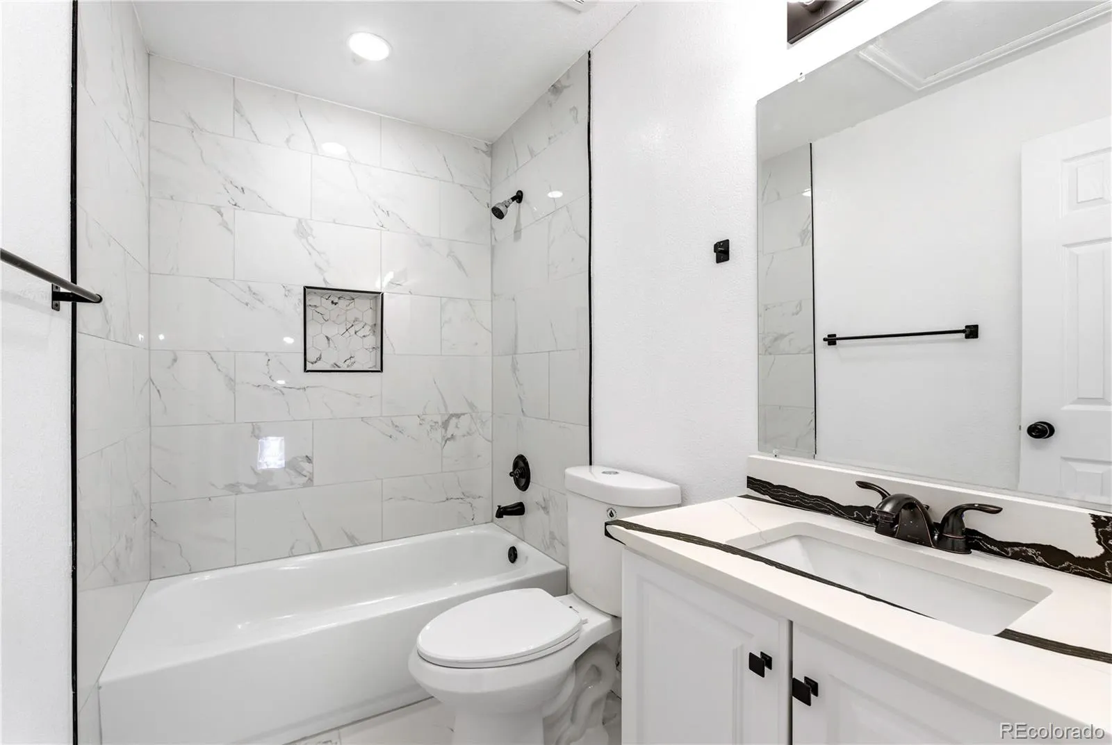 Remodeled & Move-In Ready — Just in Time for the Holidays. This beautifully updated home offers 4 bedrooms, 3 elegant bathrooms, and a 2-car attached garage, plus a cozy fireplace, fresh interior and exterior paint, and an inviting entrance with vaulted ceilings. The brand-new kitchen with gas stove features white cabinetry, quartz countertops, modern finishes, and excellent flow for cooking and gathering. Special walnut hardwood floors grace the main level, complemented by plush new carpet throughout. The main-floor primary suite includes vaulted ceilings for a bright, airy retreat. Upstairs are 2 large bedrooms and a full bathroom. The finished basement adds an additional bedroom with full bath and a huge family room with a bar — perfect for entertaining. All bathrooms were fully renovated with stylish finishes. Outdoor living shines with an expansive, flat backyard and a cement patio for gatherings and play. A brand-new Summer Harvest roof provides peace of mind and lasting value. Prime location near schools and parks. Every detail has been refreshed, making this home truly turnkey and ready for holiday celebrations and lasting memories. “Seller is a licensed real estate agent in the State of Colorado. All information provided is deemed reliable but not guaranteed. Buyers and their agents are encouraged to independently verify HOA, taxes, schools, square footage, and any other material facts to their satisfaction.”