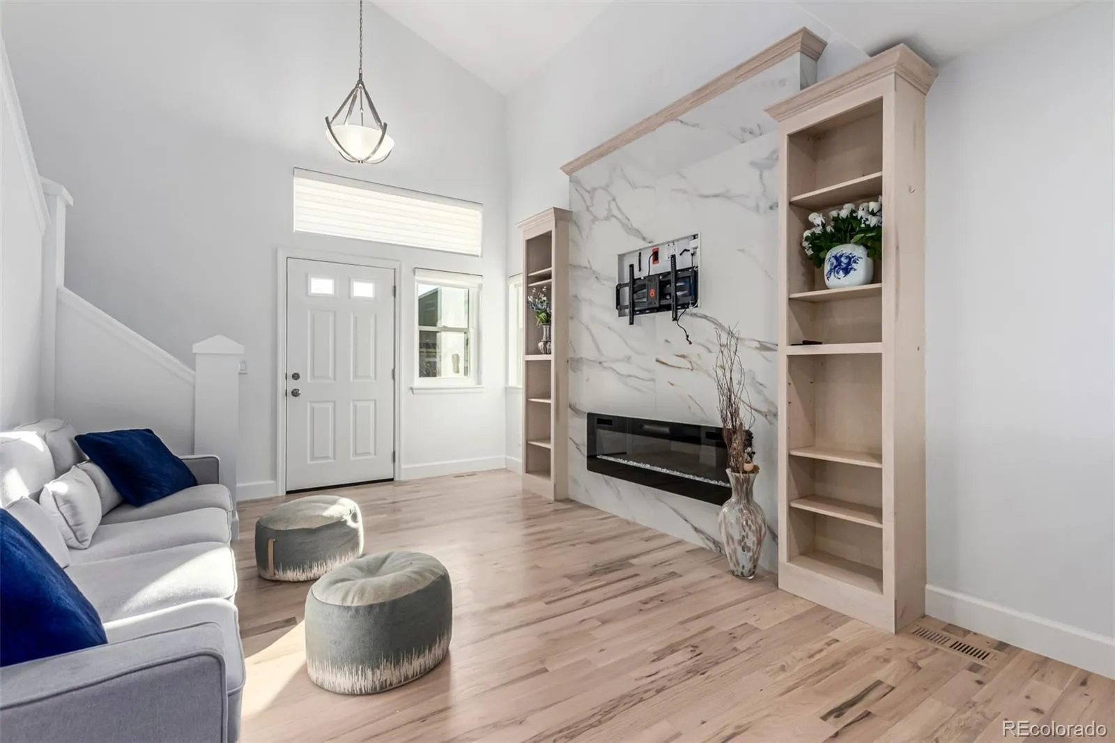 Welcome to 2277 Hyacinth – a stunningly upgraded home that blends modern luxury with design. Step inside to find real hardwood floors throughout the main level, complemented by a new ceiling fan, blinds, and custom built-ins. The open floor plan features a brand-new electric fireplace set against a ceramic fireplace wall, a built-in mudroom, and a convenient main-level laundry room with a sliding barn door and new butcher block folding countertop. The kitchen is a chef’s dream, completely remodeled with quartz countertops & glass backsplash, spacious island, farmhouse sink, and all-new stainless steel appliances, including a built-in coffee station and wine fridge. Pull out drawers in the cabinets, a stainless hood for the gas range, and secondary hood over the island. Plentiful bar-top seating, elegant pendant lighting, & a pantry complete this inviting space. Upstairs, a loft with new recessed lighting and built-ins provides additional space for a home office or play area. Two bedrooms share a beautifully remodeled Jack and Jill bathroom with a rainfall shower head, double vanity, and luxury vinyl plank flooring. The oversized master suite is an oasis with a new electric fireplace, built-in entertainment station, skylight, steam sauna, heated bathroom floors, fully updated bath with dual shower heads, quartz benches & beautiful tile. Walk-in closet with whole closet system. The finished basement includes 2 conforming bedrooms, home gym area, & rec space with built-in storage. Outside, enjoy a fully fenced yard with paver patio, hot tub included, terraced gardens & remote-controlled awning over new expansive trex deck with stubbed gas line. Loaded with mechanical upgrades: new electrical panel, new siding and windows, tankless water heater, solar panels, new furnace and A/C, UV air filter, Halo 5 whole home filtration & more. The fully insulated 3 car garage has epoxy floors, EV charger, & 2 Tesla whole-house batteries. A true turnkey property to welcome you home!