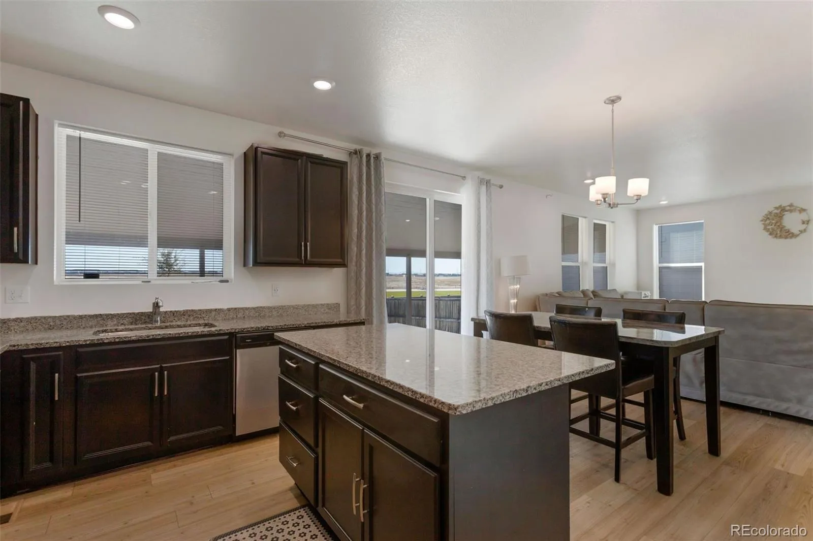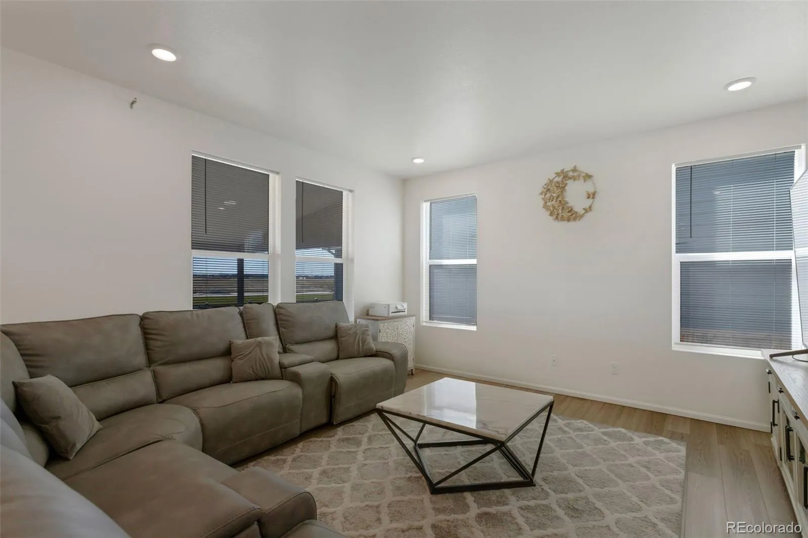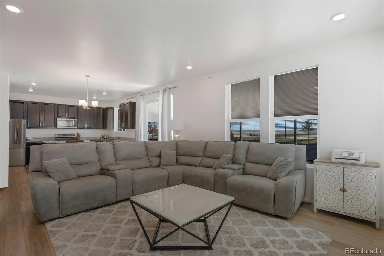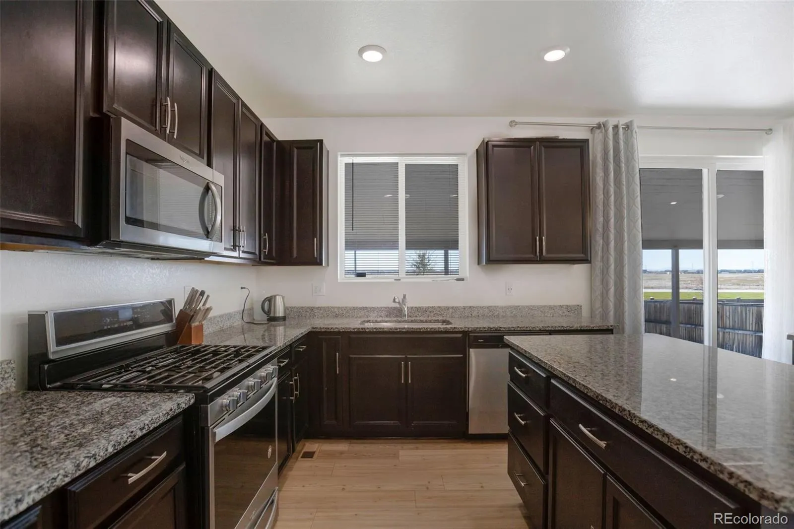 Welcome to this beautiful 3-bedroom, 3-bath home located in the highly sought-after Sky Ranch community. This home features a bright and open floor plan with luxury vinyl plank flooring throughout the main living areas. The gourmet kitchen is equipped with an extended island, generous cabinetry, and pantry—perfect for everyday living and entertaining. Upstairs, you’ll find a spacious loft ideal for a home office, media space, or play area, along with a convenient laundry room and a luxurious primary suite with a 5-piece bath. Step outside to enjoy the large covered patio and fully fenced backyard—great for relaxing or entertaining. Situated on a premium corner lot, this home offers added privacy and plenty of outdoor space. With easy access to I-70, E-470, DIA, and downtown Denver, this move-in ready home offers comfort, convenience, and style in a growing community.