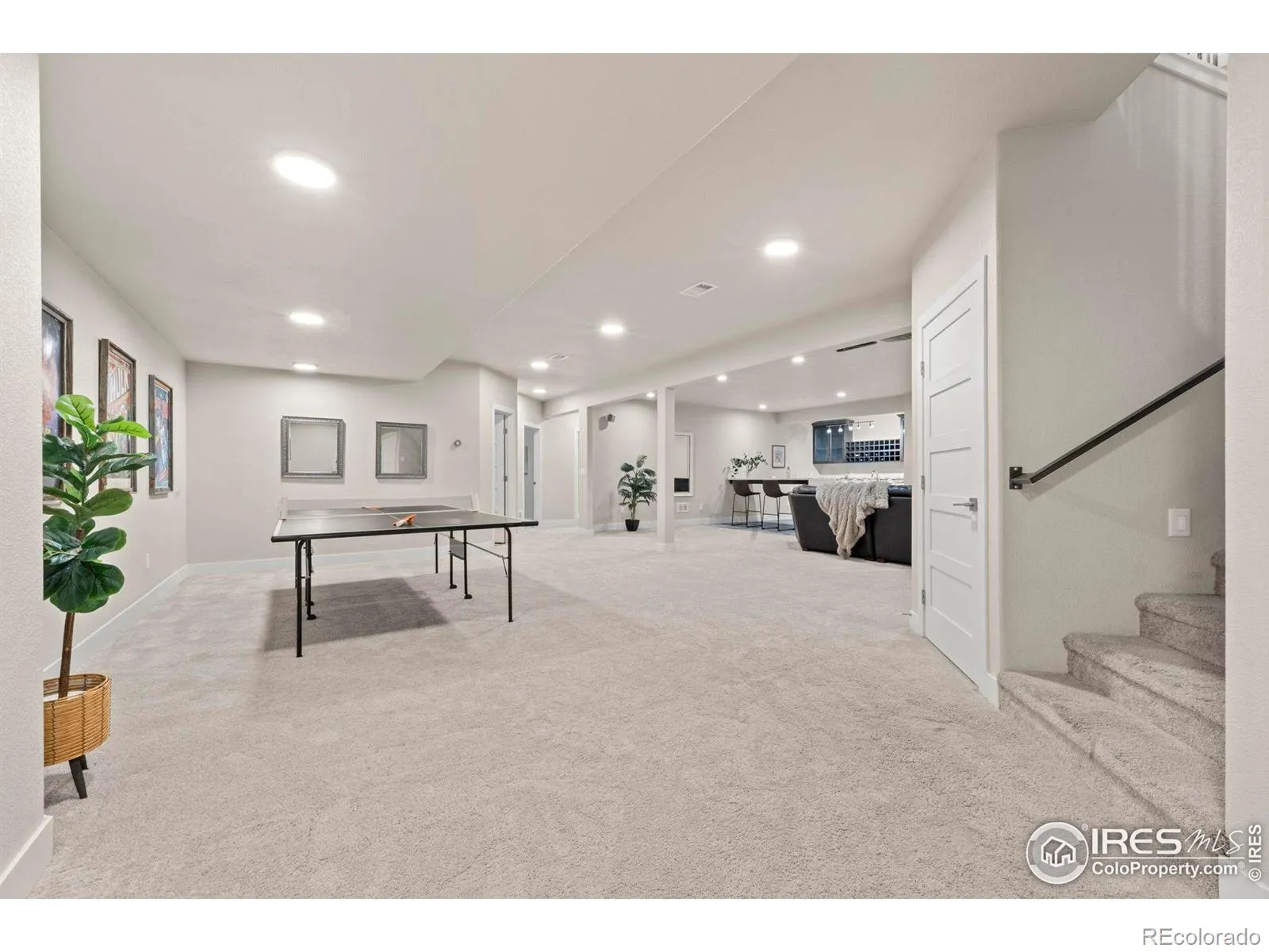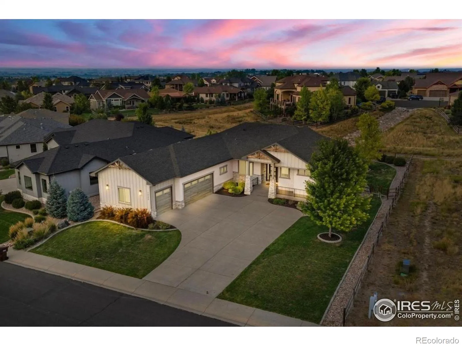 Experience luxury living at its finest in this stunning custom ranch-style home backing to greenbelts on two sides and with peek-through mountain views located in the highly sought-after HighPointe Estates community in Windsor, Colorado. Thoughtfully designed for elegance and functionality, this exceptional residence offers an open-concept floor plan with soaring vaulted ceilings, beautiful engineered hardwood floors, and designer lighting throughout. The gourmet kitchen features premium JennAir appliances, sleek cabinetry, and a large island perfect for entertaining. Enjoy seamless indoor-outdoor living with a covered deck complete with a double-sided fireplace overlooking the landscaped backyard and peaceful greenbelt walking path. Retreat to the spacious primary suite featuring a spa-inspired ensuite bathroom with a soaking tub, dual vanities, oversized walk-in shower, private laundry, and a light-filled walk-in closet. The finished basement is perfect for hosting guests or movie nights with a projector and Sonos surround sound, while the custom metal railings add a touch of modern craftsmanship. The oversized three-plus-car garage includes epoxy-coated floors and abundant storage for both vehicles and recreation. Located within walking distance of the private community pool, tennis courts, clubhouse, and playground, this home perfectly blends luxury, comfort, and Colorado lifestyle. Don’t miss your chance to own this exquisite home and experience the best of Windsor living.
