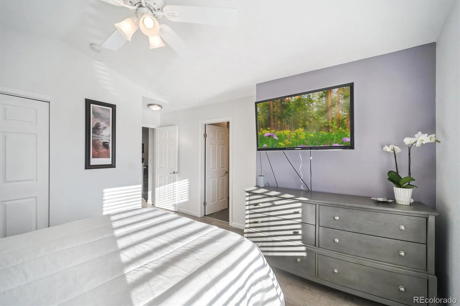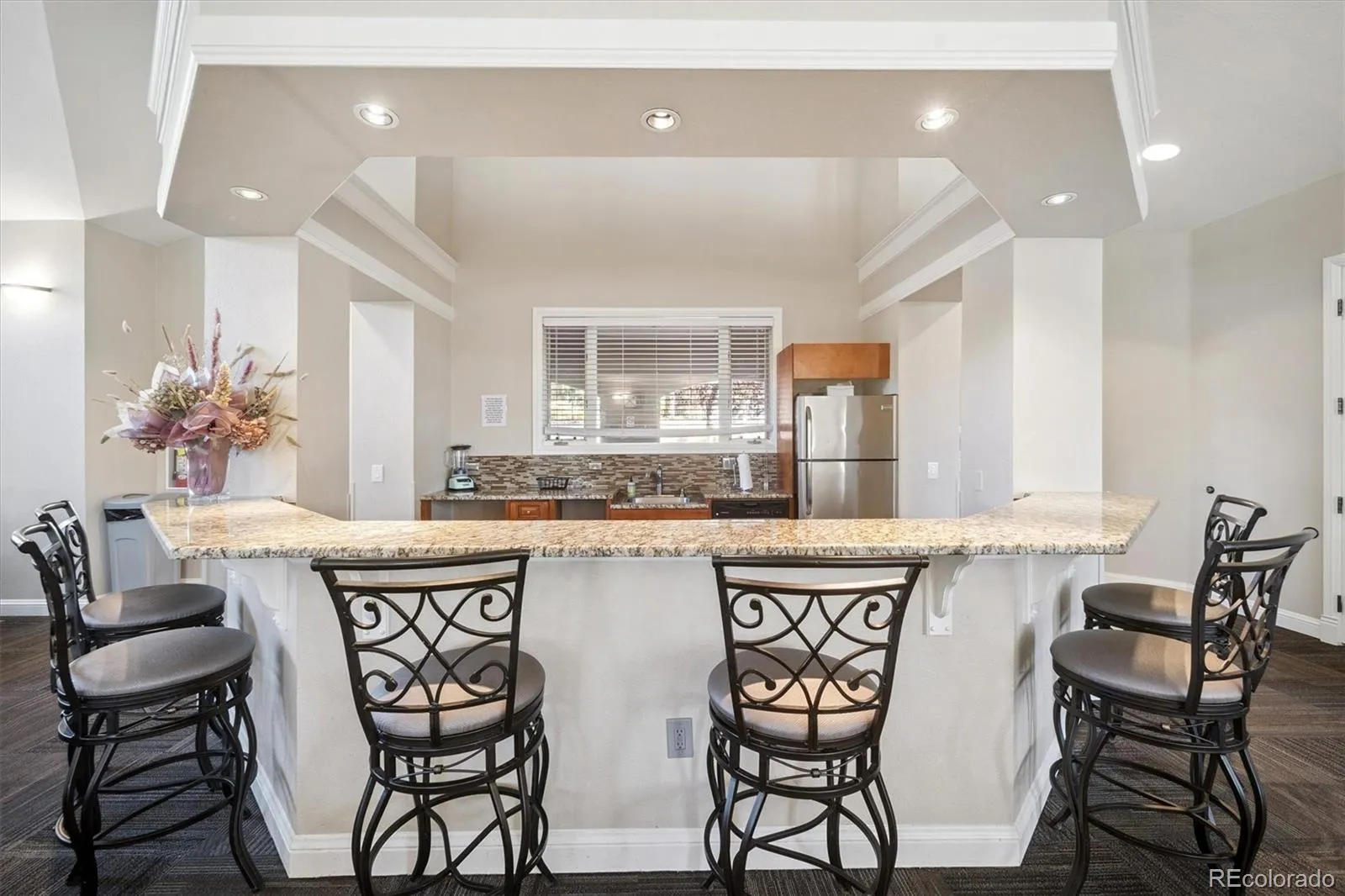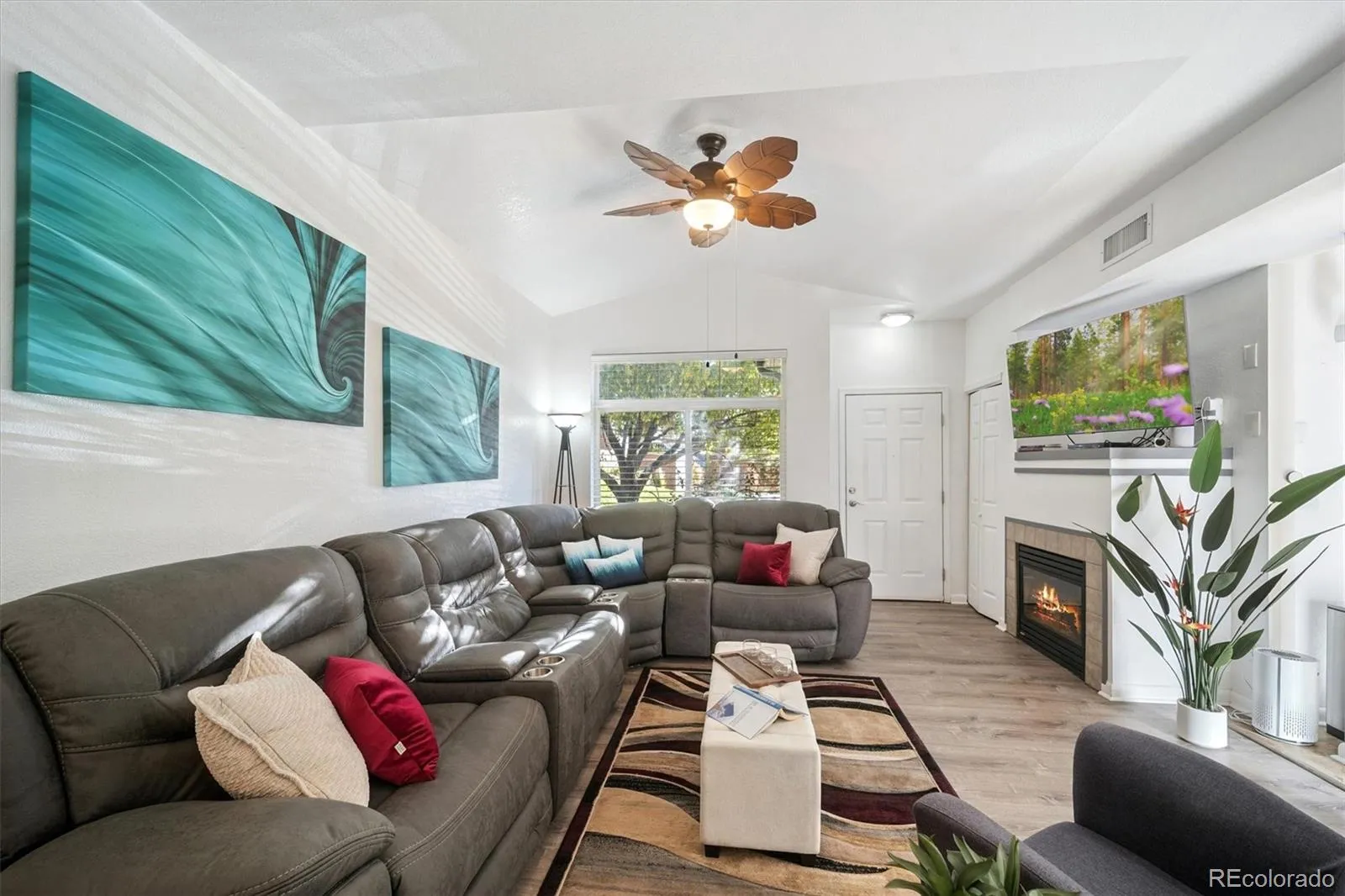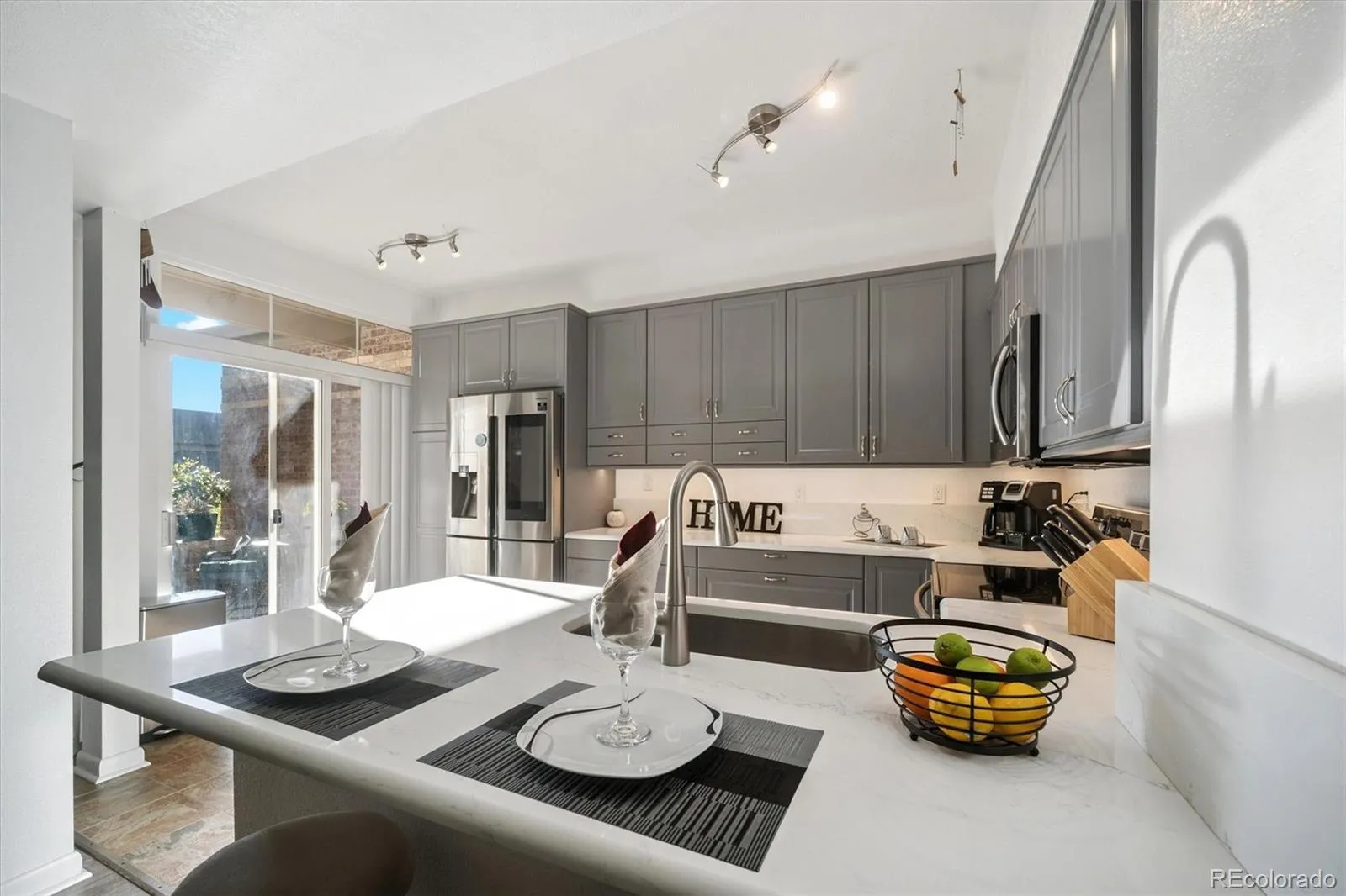 Welcome home! This beautifully remodeled 2-bedroom, 2.5-bath town home with an added loft in the exclusive, gated Palomino Park community is one of the rare units with walk-in entry from the oversized garage – unloading groceries and packages is a breeze. The gourmet kitchen features soft-close cabinets, under-cabinet dimmable lighting, quartz countertops, a sleek stainless-steel sink with hands-free faucet, and a high-end 4-door Flex Family Hub™ refrigerator. The open-concept living area has been expanded around the fireplace, and the main-level half bath now offers a modern vanity. A custom lighted display cabinet near the garage adds elegance and function. Step outside to a private patio off the kitchen with a dedicated area for grilling, and a flowering cherry tree. Upstairs, a versatile loft provides space for a home office or studio. The primary suite boasts mountain views and a remodeled ensuite bath with dual rain shower, marble-topped dual vanity, and spacious linen closet. The other bedroom/flex room has easy access to another full bath. Major upgrades include a new furnace with humidifier, water heater, and A/C unit. Additional features include: QuietCool whole-house fan, ceiling fans throughout, LifeProof luxury vinyl flooring, professionally cleaned ductwork, and garage storage with repurposed cabinets. This pristine home has had just two owners and no pets. Community amenities include a large pool, clubhouse, tennis, pickleball, and basketball courts, as well as baseball and soccer fields, frisbee golf, walking trails, green spaces and a playground—all set on beautifully landscaped grounds. The location is ideal with quick access to C-470, I-25, and the light rail, plus shopping, dining, and miles of trails nearby. Don’t miss your chance to call Silver Mesa in Palomino Park home—schedule a private showing today!