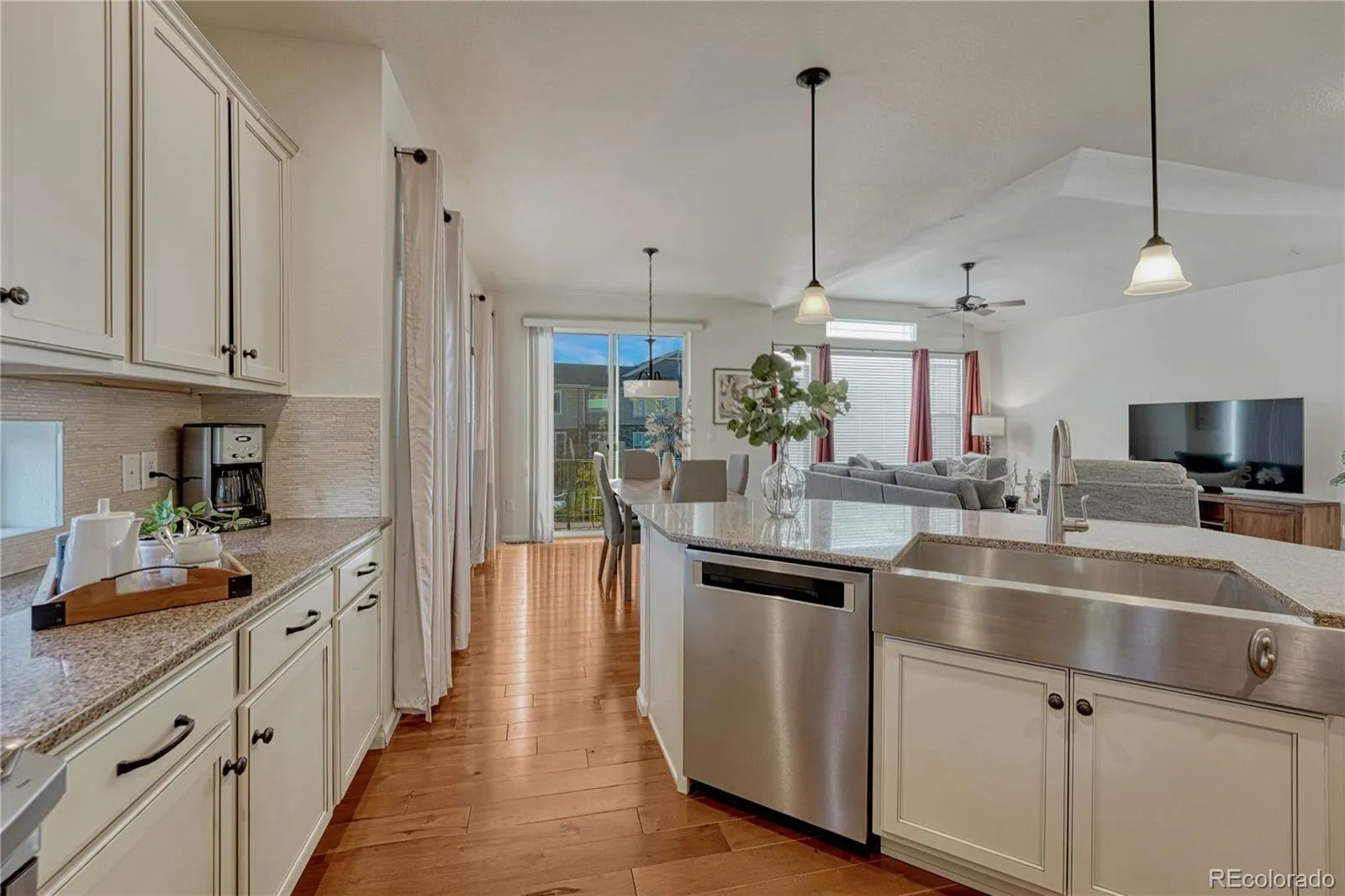 One-of-a-kind Luxury Garden Level Townhome Ranch!! The 411 Ranch Plan does not come up for sale very often, but here is your chance!! The Floorplan boasts a light and bright living, dining, and kitchen open concept space which is great for entertaining family and friends. One of the Great features is the Oversized kitchen offering a Gas Cooktop and Oven, Stainless Hood Microwave, Stainless Refrigerator & Granite countertops with large Island, tons of cabinet and pantry space Featuring 42″ Flat Maple White Glazed Cabinets throughout the home. Step out to the back Deck with ample room for seating and one of the unique qualities is the location as it is an end unit but also sits on a large green belt Space and across the street is the Pool. This Ranch also features a large primary bedroom with walk-in closet. The primary bathroom features double sinks, Granite counters, and a large step-in shower. A good sized second bedroom has lots of light and ceiling fan. The additional full bathroom is spacious with a soaking tub. Also on the main level is a quiet, private office/den, great for working at home or as another TV space, craft room, library and more. The convenient, good sized laundry room with sink and extra storage is also on the main level. Truly one floor living capability! Want to expand your finished living space? This home has a full unfinished basement with roughed in plumbing. Let your imagination run wild! Additional features of the home include interior door openings that accommodate wheelchair use, and an oversized garage! Pioneer Hills is a fantastic community, with Community sponsored events offers at no cost to its resident. The Overall location is amazing with Shopping and Dining right at your fingertips!! This is definitely a place you could call home!!