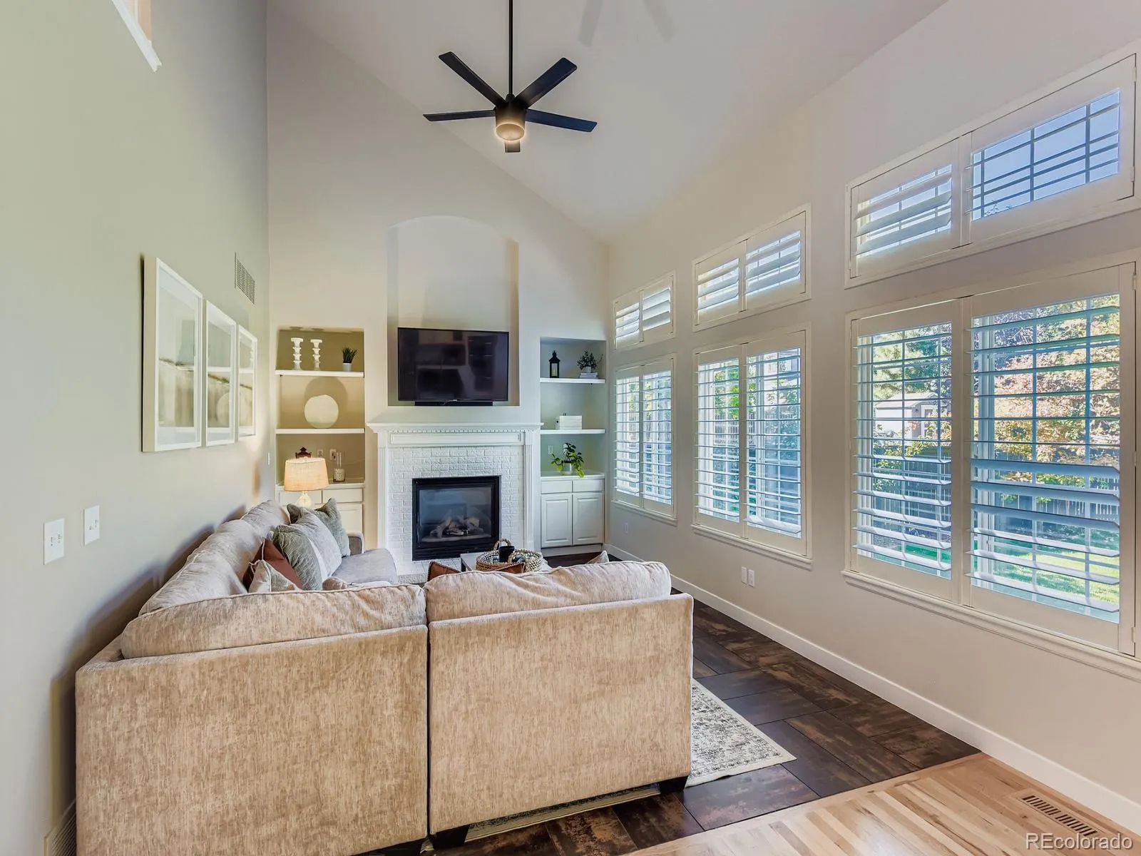 Beautifully updated 5-bedroom, 4-bathroom home in the highly sought-after Westridge community of Highlands Ranch. This move-in ready home shows like a model with designer finishes, hardwood floors, and true pride of ownership throughout. Enjoy charming curb appeal with a welcoming front porch, perfect for morning coffee or evening relaxation. The open layout includes formal living and dining rooms, and a stylish eat-in kitchen with granite countertops, white cabinetry, gas cooktop, stainless steel appliances, wine refrigerator, and a warming drawer. The vaulted great room offers a cozy gas fireplace, custom built-ins, oversized windows, and beautiful tile flooring that adds warmth and natural light. On the main floor, you’ll also find a versatile home office or fifth bedroom with a walk-in closet, a powder room, and a convenient laundry room with a new washer and dryer included. Upstairs, the spacious primary suite offers a walk-in closet, jetted tub, and a beautifully updated ensuite bath. Two additional bedrooms share a full hall bath. The professionally finished basement provides a large family room, guest bedroom with walk-in closet, a modern three-quarter bath, and a wet bar, making it ideal for entertaining or guests. Additional highlights include radiant in-floor heating in two bathrooms, a tankless water heater, radon mitigation system, Ring doorbell, new fiber optic internet, and a two-car garage with a 220V 50-amp EV charger. The fully fenced backyard offers mature landscaping, a spacious patio, and a charming gazebo. Conveniently located near top-rated schools, Redstone Park, Westridge Rec Center, trails, shopping, dining, and just minutes from C-470 and Santa Fe. Located on a quiet street, this home checks every box.